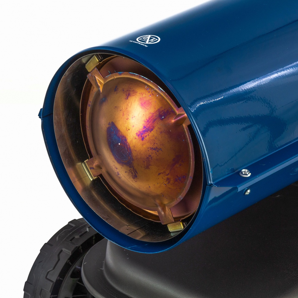 - Эффективная работа — система прямого нагрева обеспечивает максимальную теплоотдачу, а теплоотражающий экран сдерживает открытое пламя, что обеспечивает равномерный прогрев помещения или поверхности.