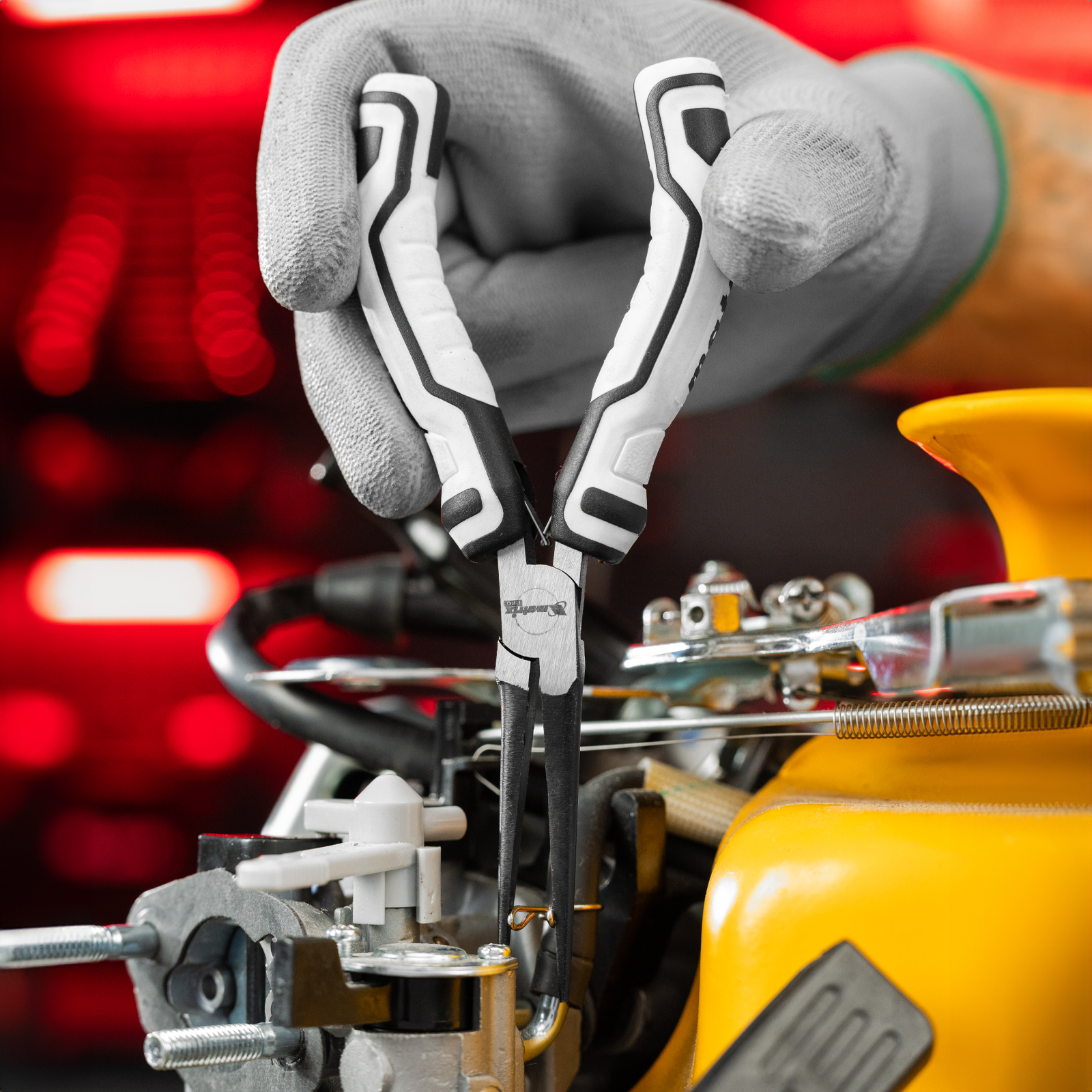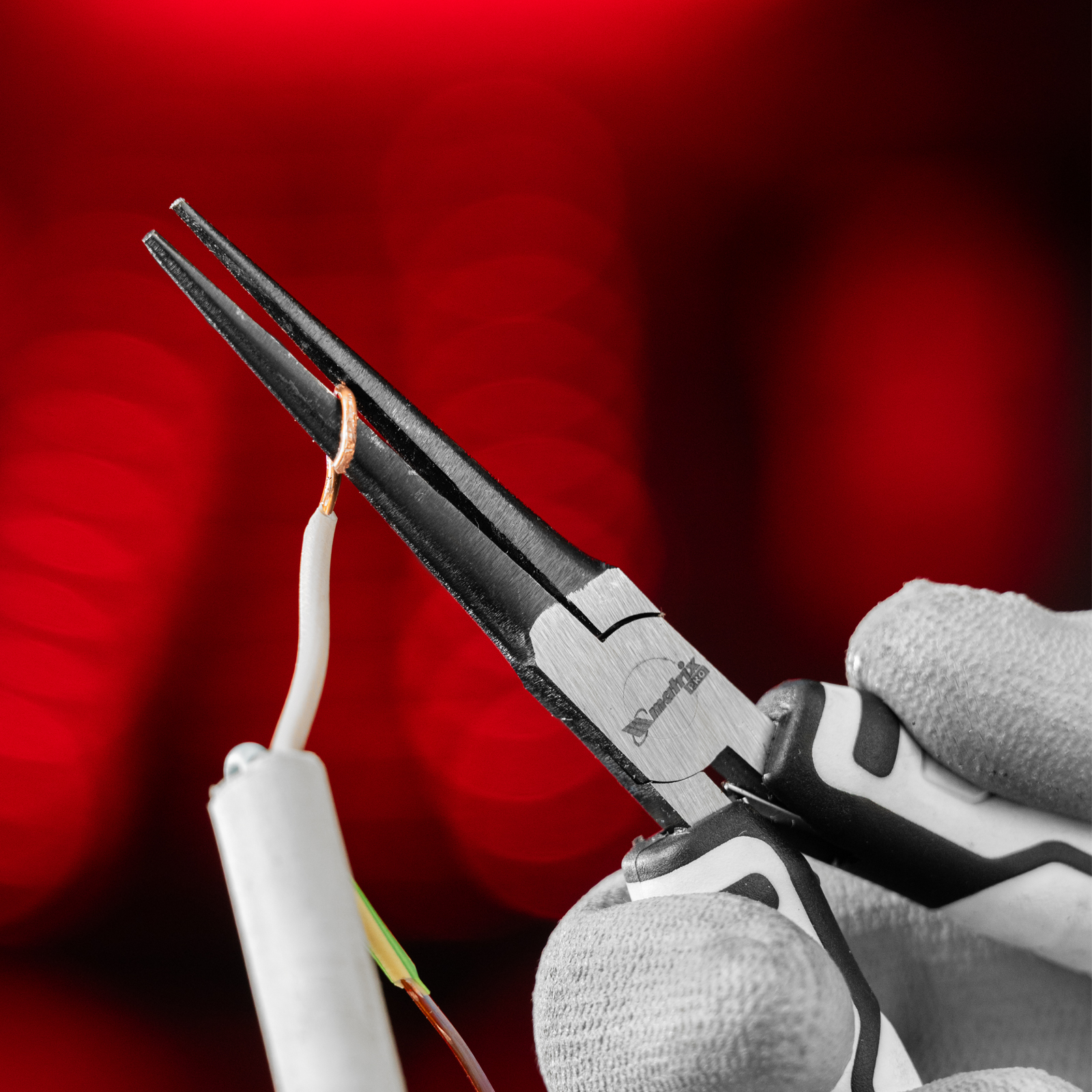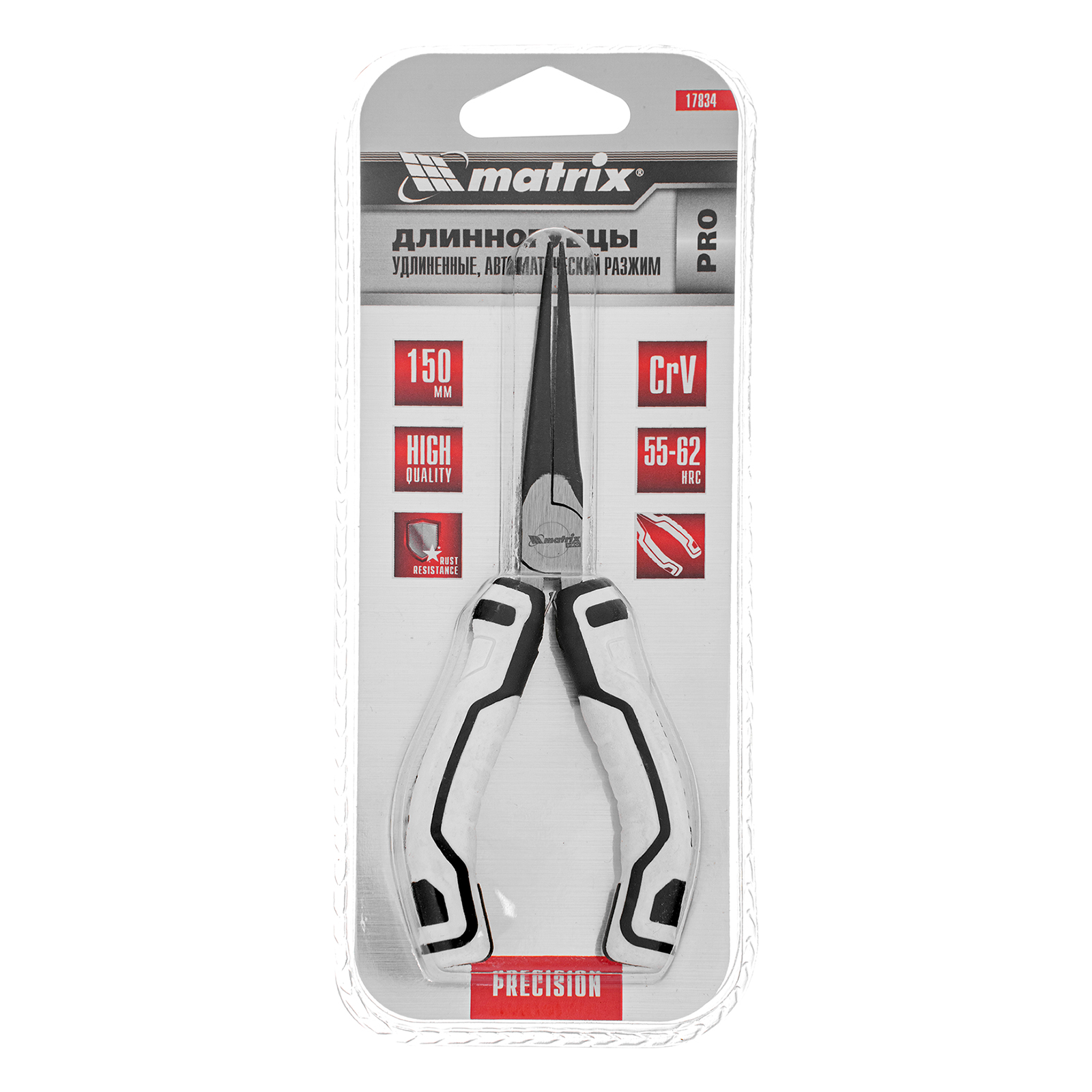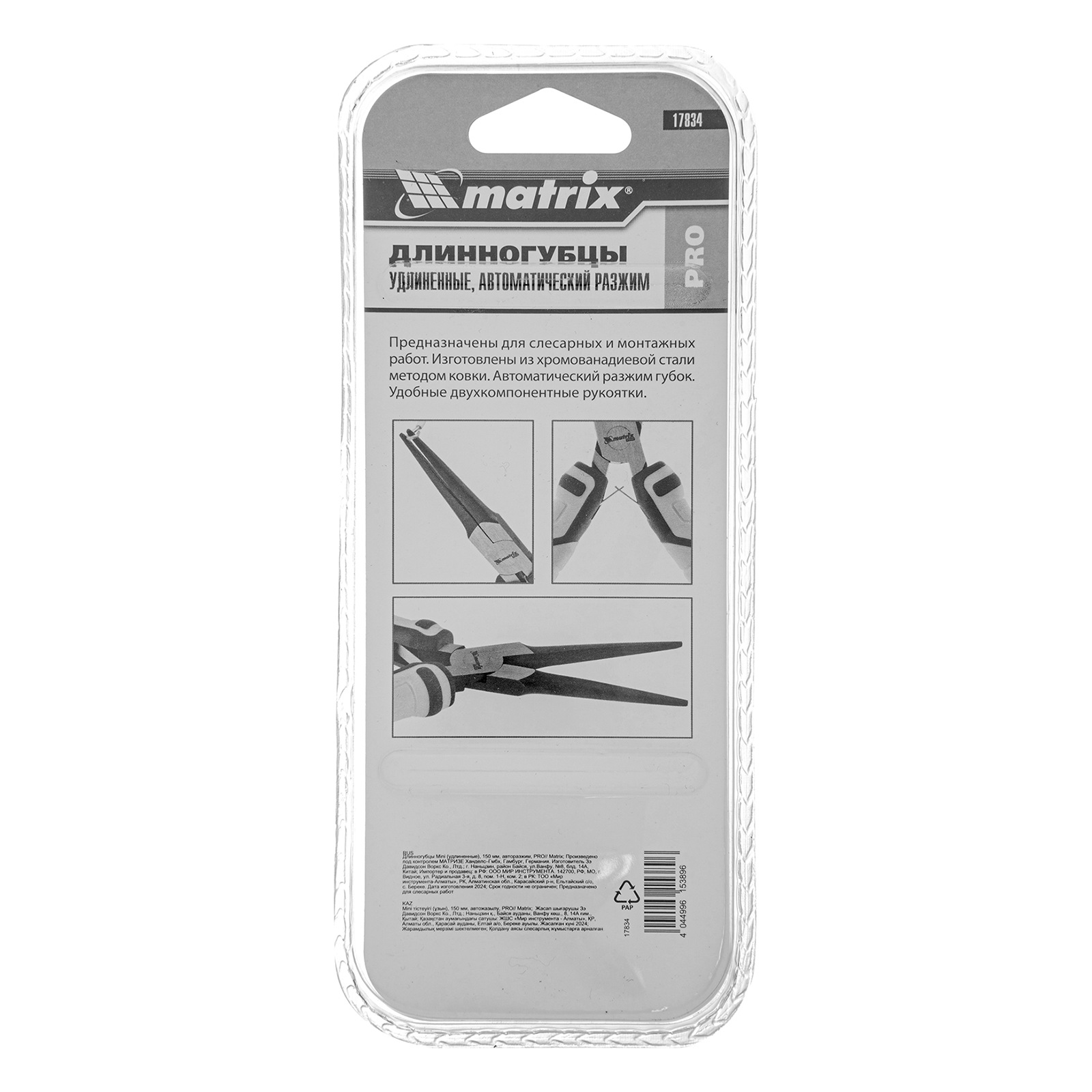 Удлиненные (150 мм) длинногубцы Matrix PRO Mini 17834 с авторазжимом пригодятся во время монтажных/демонтажных и ремонтных работ, например, починки бытовой техники. С их помощью удобно захватывать и удерживать мелкие детали, проволоку и провода. Мини-длинногубцы позволяют выполнять операции, требующие высокой точности и аккуратности.