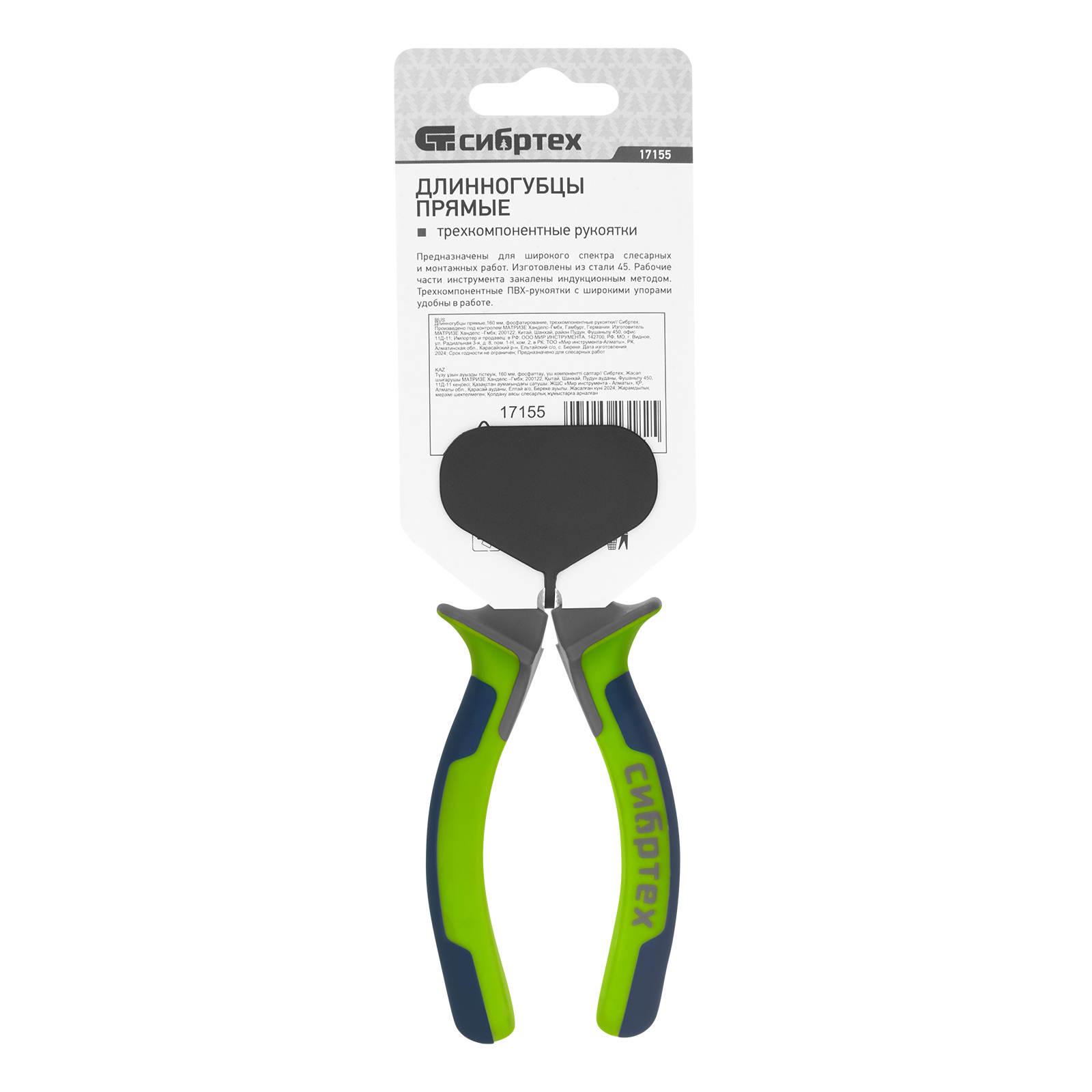 <p>Прямые длинногубцы Сибртех 17155 длиной 160 мм, с фосфатированными губками и трехкомпонентными рукоятками, позволяют удерживать мелкие детали, крепеж, проводки, а также перекусывать проволоку при помощи режущих кромок. Инструмент облегчает работу в труднодоступных местах. Длинногубцы будут полезны слесарю, электрику, сборщику мебели, мастеру по ремонту техники, радиолюбителю, а также подойдут для использования в быту.</p><h2>Преимущества</h2><ul><li>Прочность и износостойкость — инструмент изготовлен из стали 45, прошедшей закалку в масле.</li><li>Безопасная эксплуатация — упоры на рукоятках не допускают соскальзывания пальцев на рабочую часть.</li><li>Комфортная работа — трехкомпонентные рукоятки не выскальзывают из ладони.</li></ul>