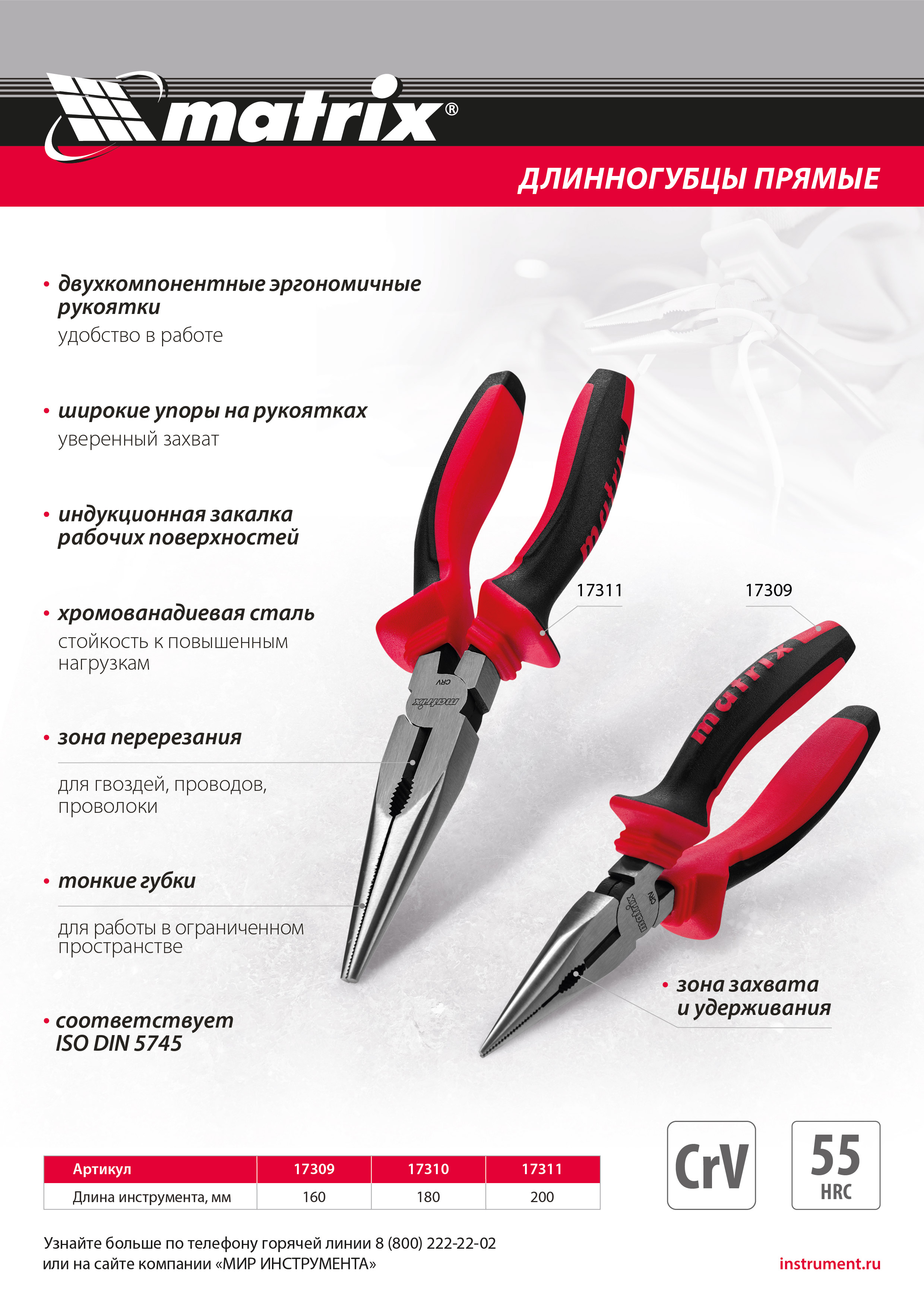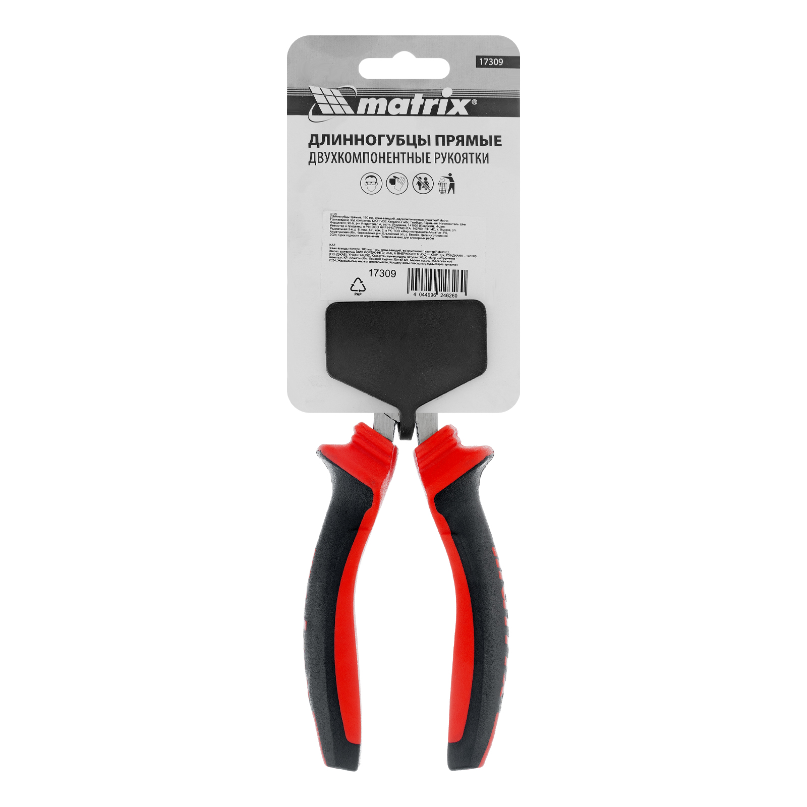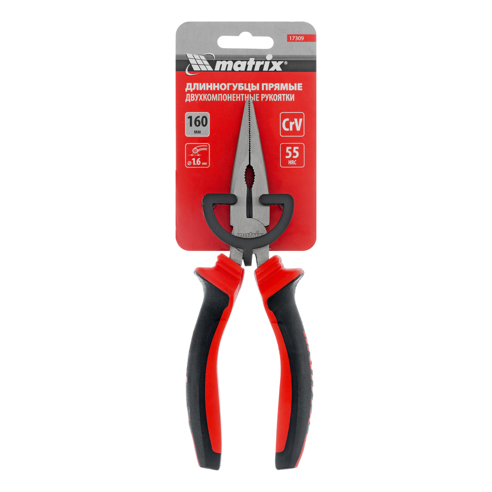Прямые длинногубцы Matrix 17309 длиной 160 мм, из хромованадиевой стали, с двухкомпонентными рукоятками, предназначены для выполнения слесарно-монтажных работ в труднодоступных местах. Позволяют удерживать гайки, гвозди и другие мелкие детали, а также перерезать провода и стальную проволоку диаметром до 1,6 мм. Длинногубцы используются для монтажа и демонтажа оборудования, ремонта электроники, техники и транспортных средств. Пригодятся на стройплощадке, дома или в гараже.