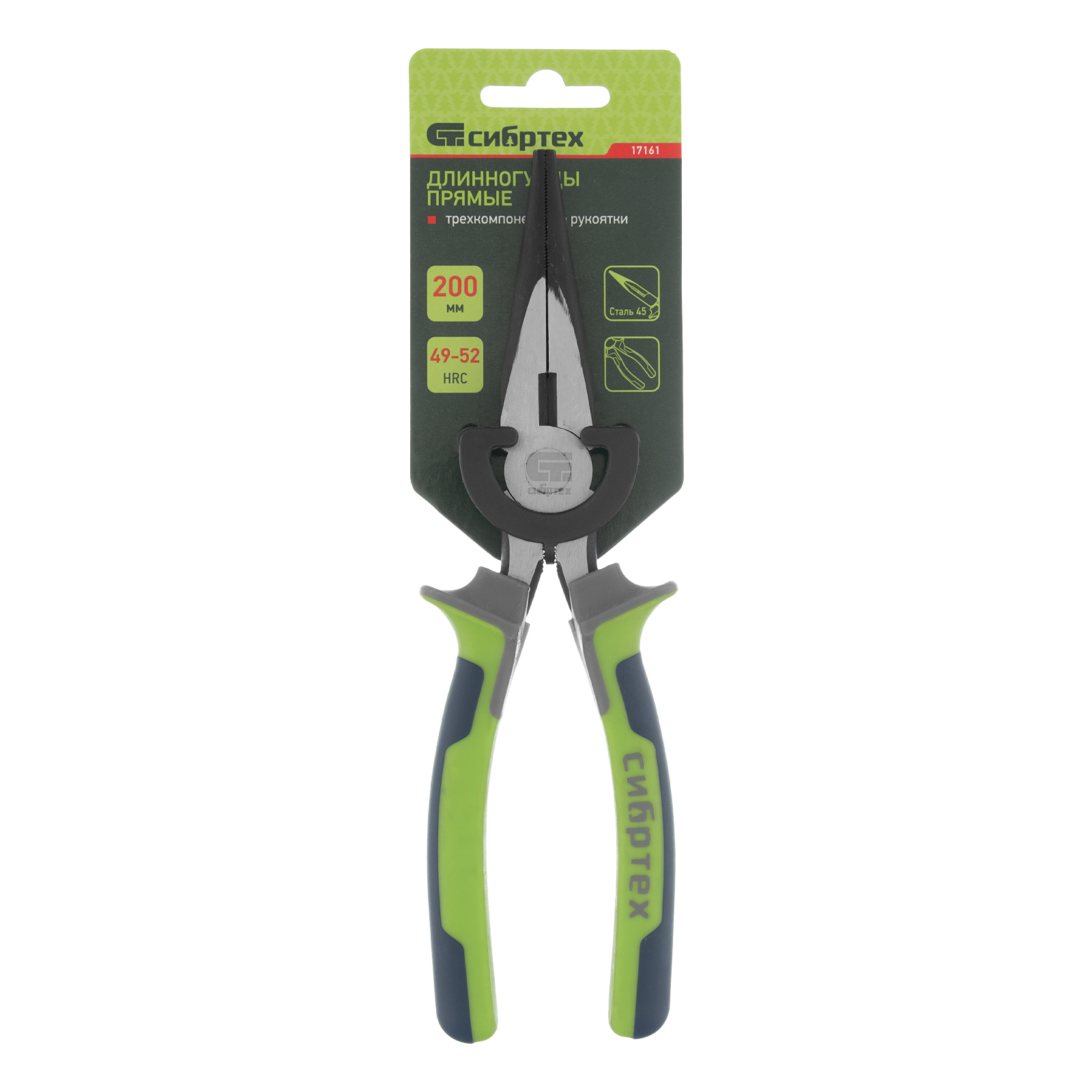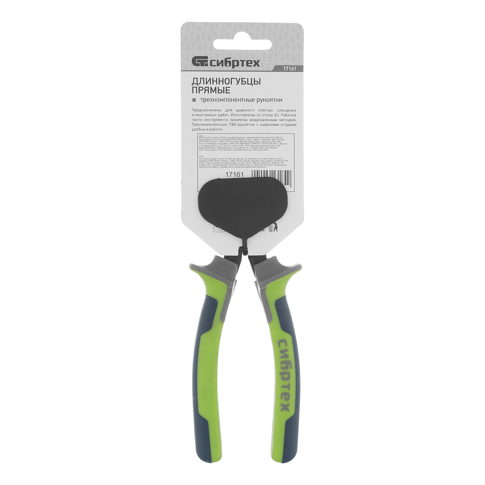 <p>Прямые длинногубцы Сибртех 17161 длиной 200 мм, с фосфатированными губками и трехкомпонентными рукоятками, позволяют удерживать мелкие детали, крепеж, проводки, а также перекусывать проволоку при помощи режущих кромок. Инструмент облегчает работу в труднодоступных местах. Длинногубцы будут полезны слесарю, электрику, сборщику мебели, мастеру по ремонту техники, радиолюбителю, а также подойдут для использования в быту.</p><h2>Преимущества</h2><ul><li>Прочность и износостойкость — инструмент изготовлен из стали 45, прошедшей закалку в масле.</li><li>Безопасная эксплуатация — упоры на рукоятках не допускают соскальзывания пальцев на рабочую часть.</li><li>Комфортная работа — трехкомпонентные рукоятки не выскальзывают из ладони.</li></ul>