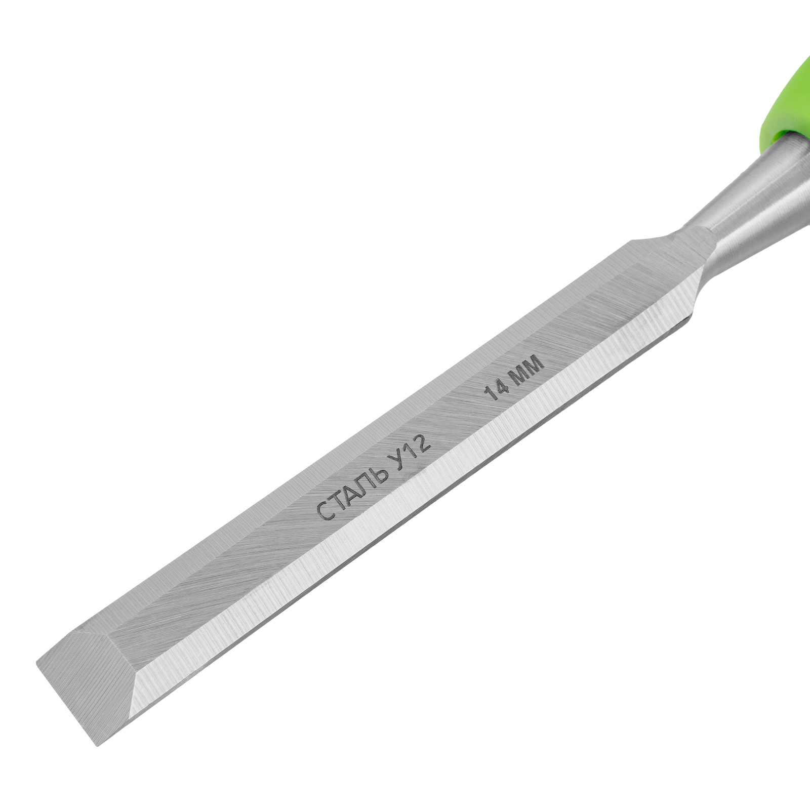 Долото-стамеска Сибртех 24479 с двухкомпонентной рукояткой — ручной инструмент с шириной режущей части 14 мм для столярных и плотницких работ с массивом натурального дерева. Под ударом киянки или небольшого молотка долото-стамеска легко врезается в древесину любых пород, что позволяет получать аккуратные прямоугольные пазы, снимать фаски, зачищать гнезда и т.д.
