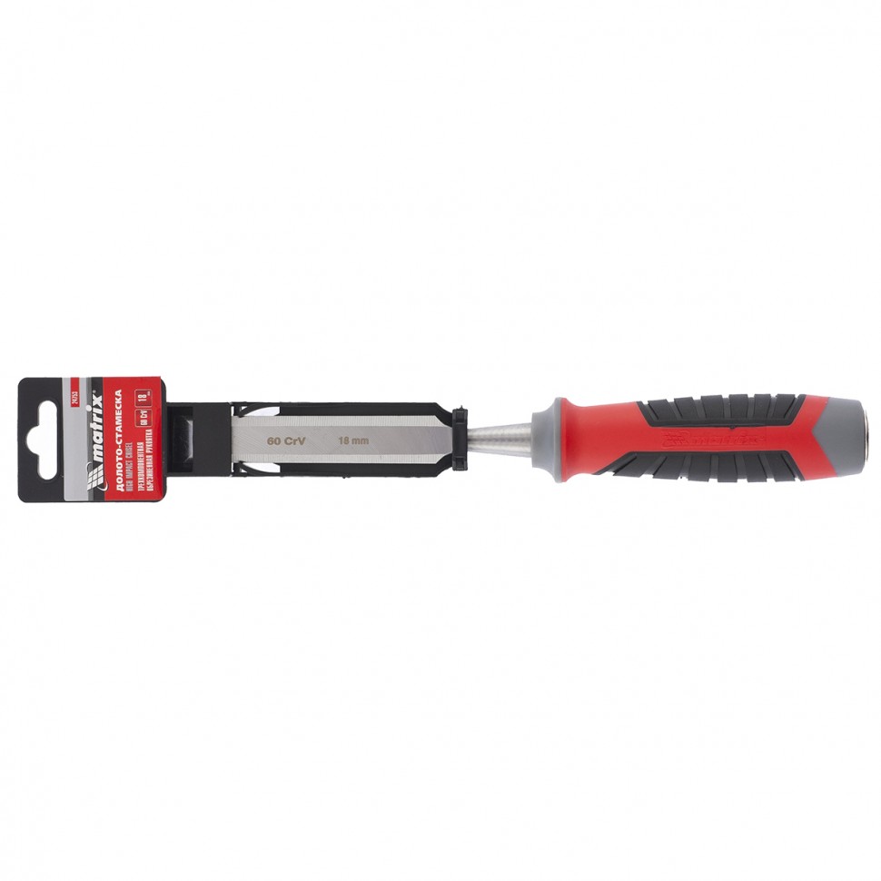 Долото-стамеска Matrix 24753, 60 CrV, с шириной полотна 18 мм и трехкомпонентной обрезиненной рукояткой используется в столярном и мебельном производстве. Оно позволяет выбрать углубления, снять фаски, зачистить пазы, создать декоративную резьбу на деревянной поверхности. Благодаря металлическому затыльнику долото-стамеску можно использовать с ударным инструментом для лучшего врезания в дерево.