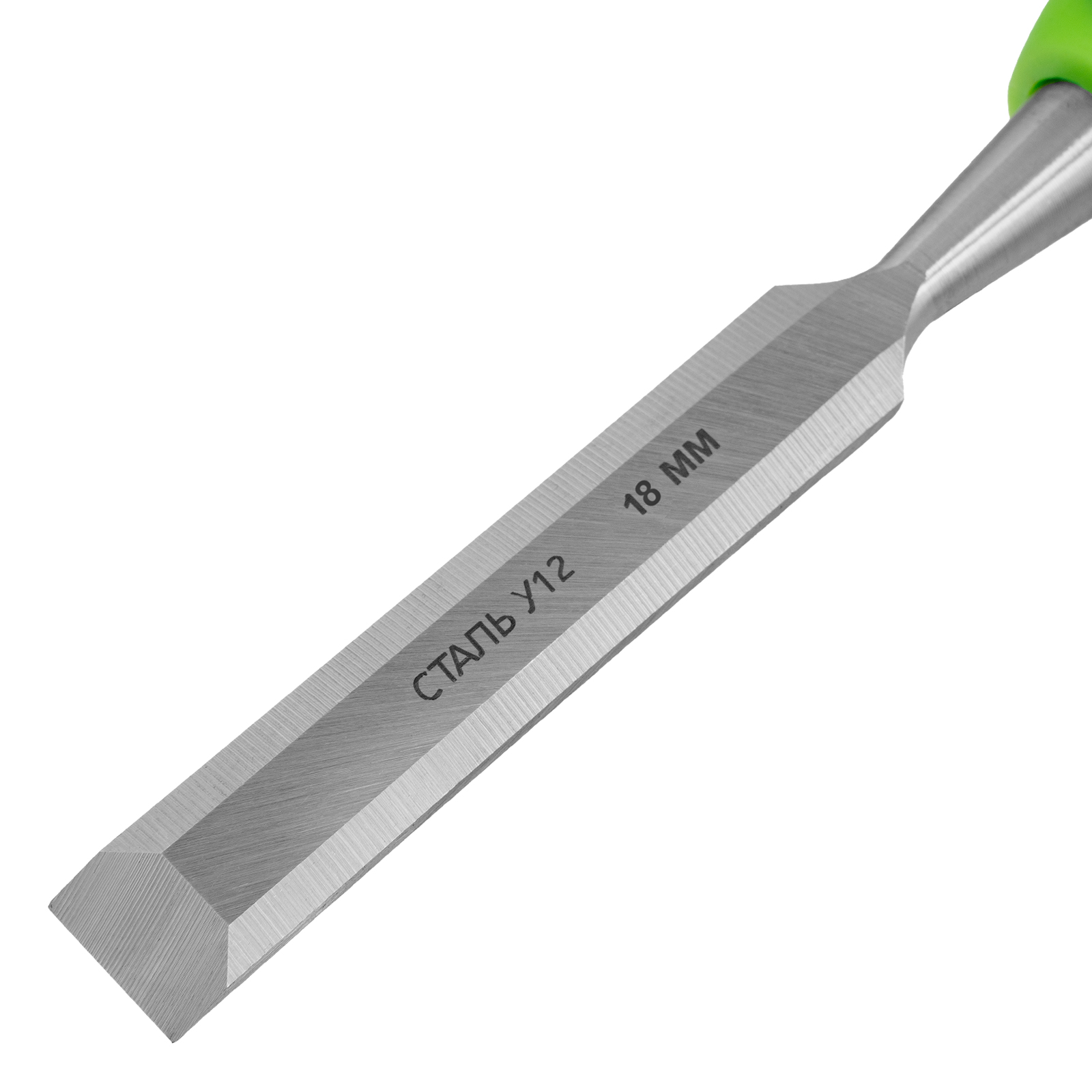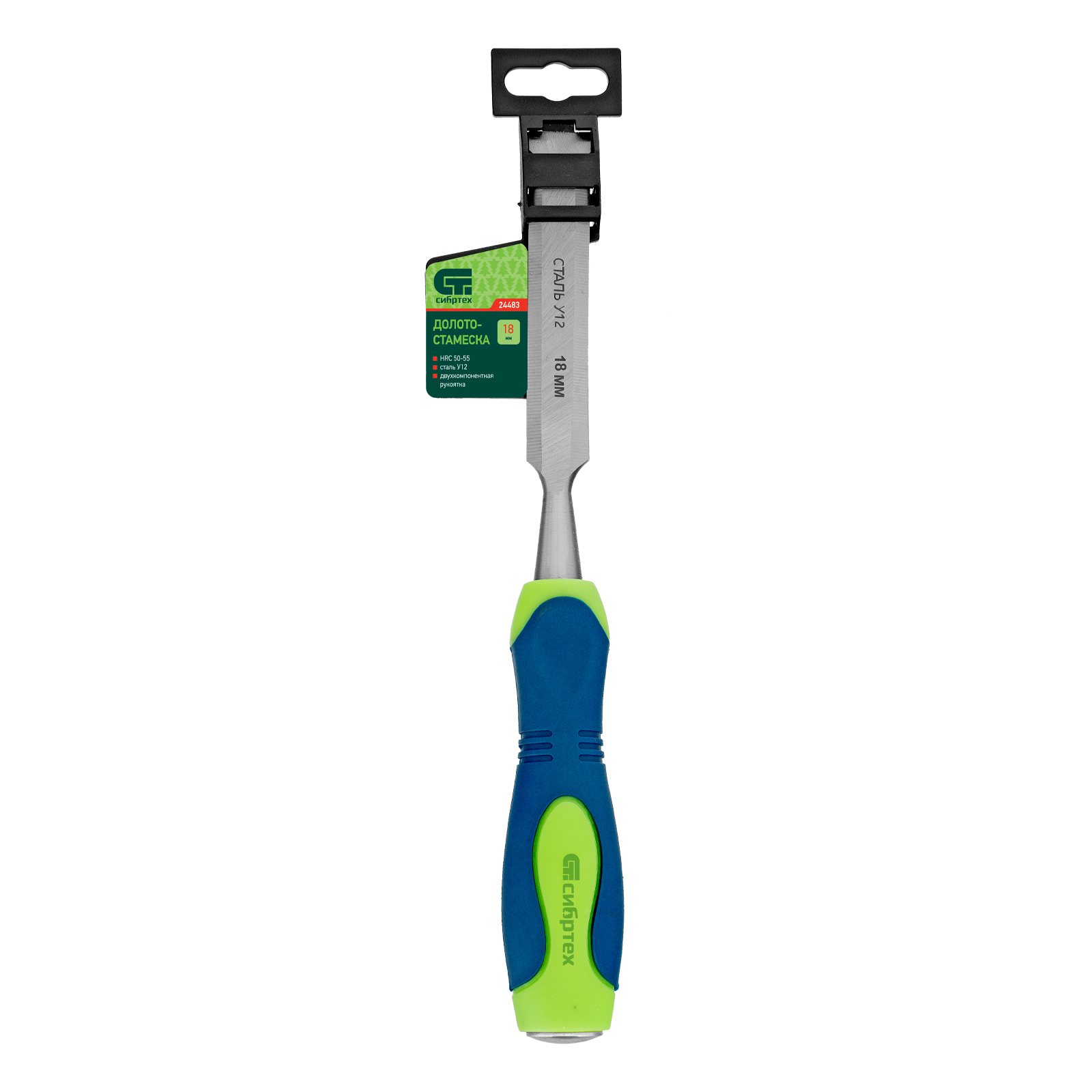 Долото-стамеска Сибртех 24483 с двухкомпонентной рукояткой — ручной инструмент с шириной режущей части 18 мм для столярных и плотницких работ с массивом натурального дерева. Под ударом киянки или небольшого молотка долото-стамеска легко врезается в древесину любых пород, что позволяет получать аккуратные прямоугольные пазы, снимать фаски, зачищать гнезда и т.д.