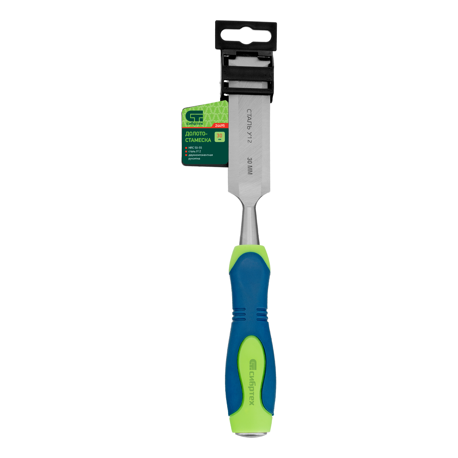 Долото-стамеска Сибртех 24495 с двухкомпонентной рукояткой — ручной инструмент с шириной режущей части 30 мм для столярных и плотницких работ с массивом натурального дерева. Под ударом киянки или небольшого молотка долото-стамеска легко врезается в древесину любых пород, что позволяет получать аккуратные прямоугольные пазы, снимать фаски, зачищать гнезда и т.д.