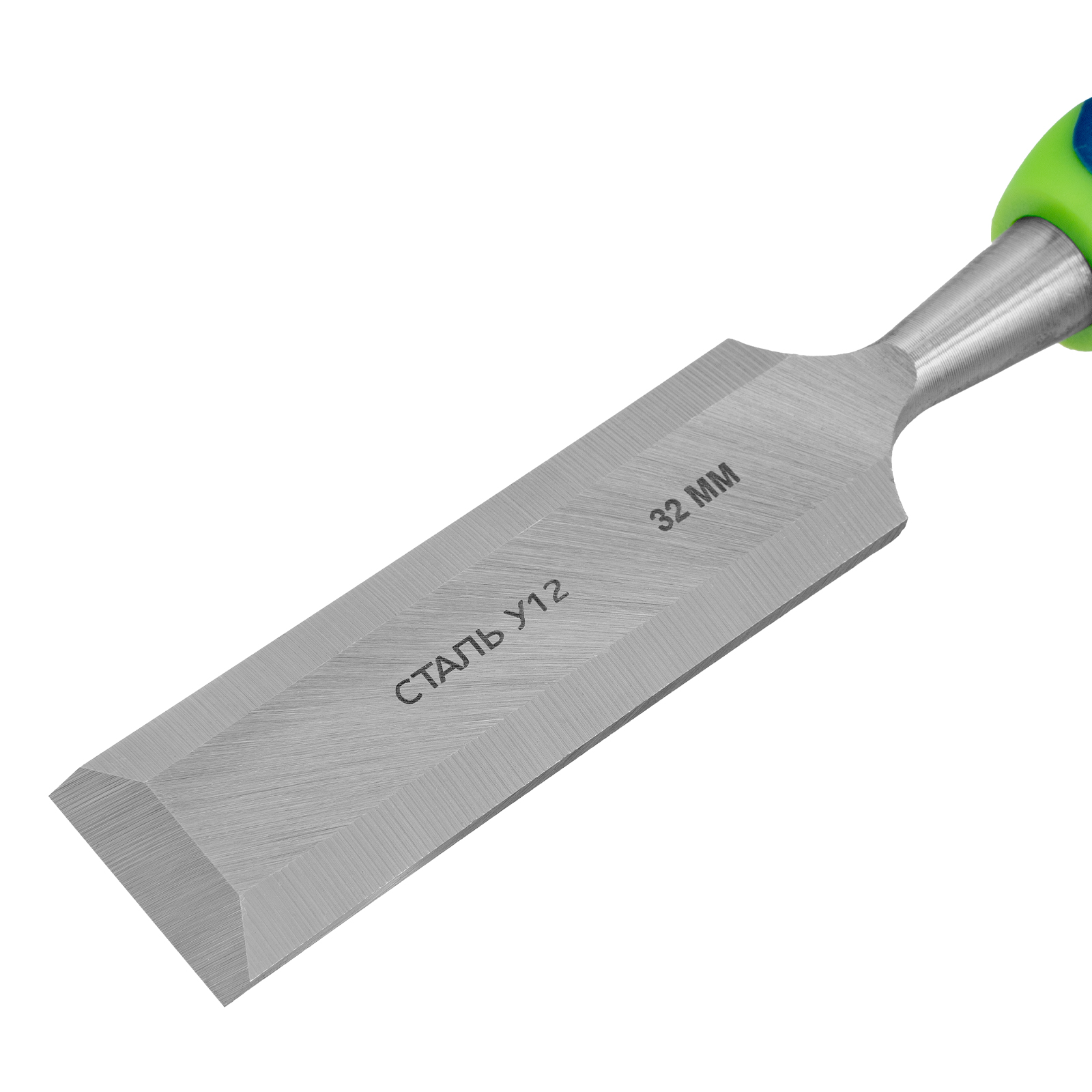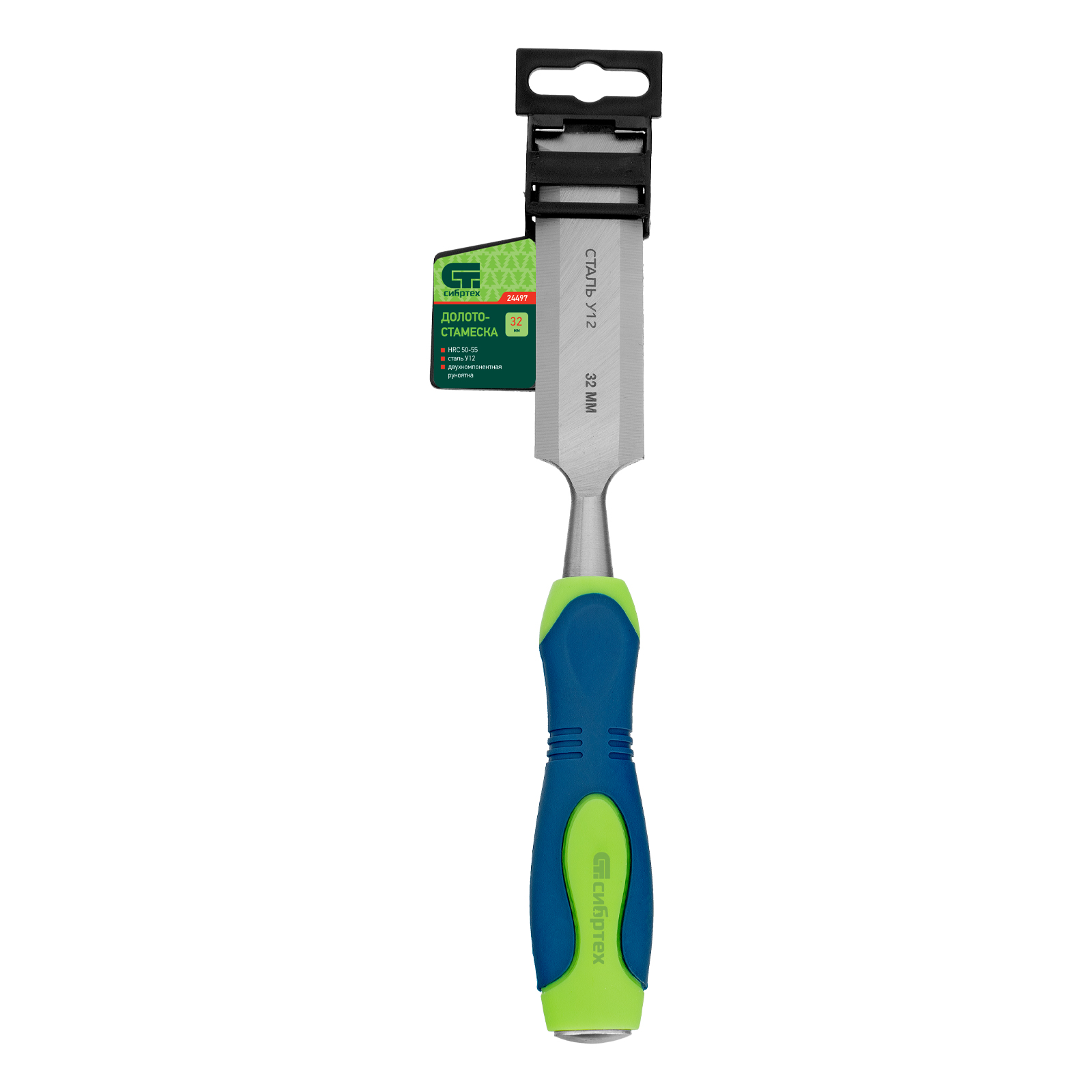 Долото-стамеска Сибртех 24497 с двухкомпонентной рукояткой — ручной инструмент с шириной режущей части 32 мм для столярных и плотницких работ с массивом натурального дерева. Под ударом киянки или небольшого молотка долото-стамеска легко врезается в древесину любых пород, что позволяет получать аккуратные прямоугольные пазы, снимать фаски, зачищать гнезда и т.д.