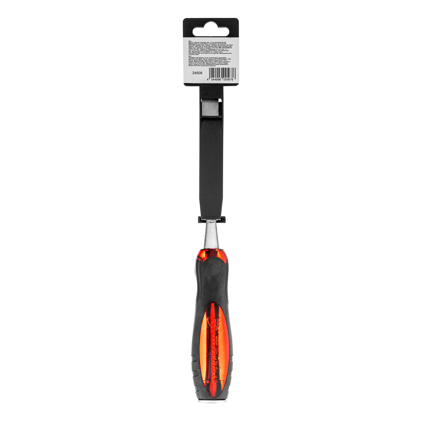 Долото-стамеска Matrix «Тигровый глаз» 24509 с полотном шириной 14 мм и двухкомпонентной обрезиненной рукояткой используется в столярном и плотницком деле, в производстве мебели. Позволяет вырезать углубления, формировать пазы, зачищать шипы и гнезда, снимать фаски. Инструмент выдерживает удары киянкой или молотком, т. к. металлический затыльник защищает его от деформации. Долото относится к профессиональному ручному инструменту, но может применяться и в домашних условиях.