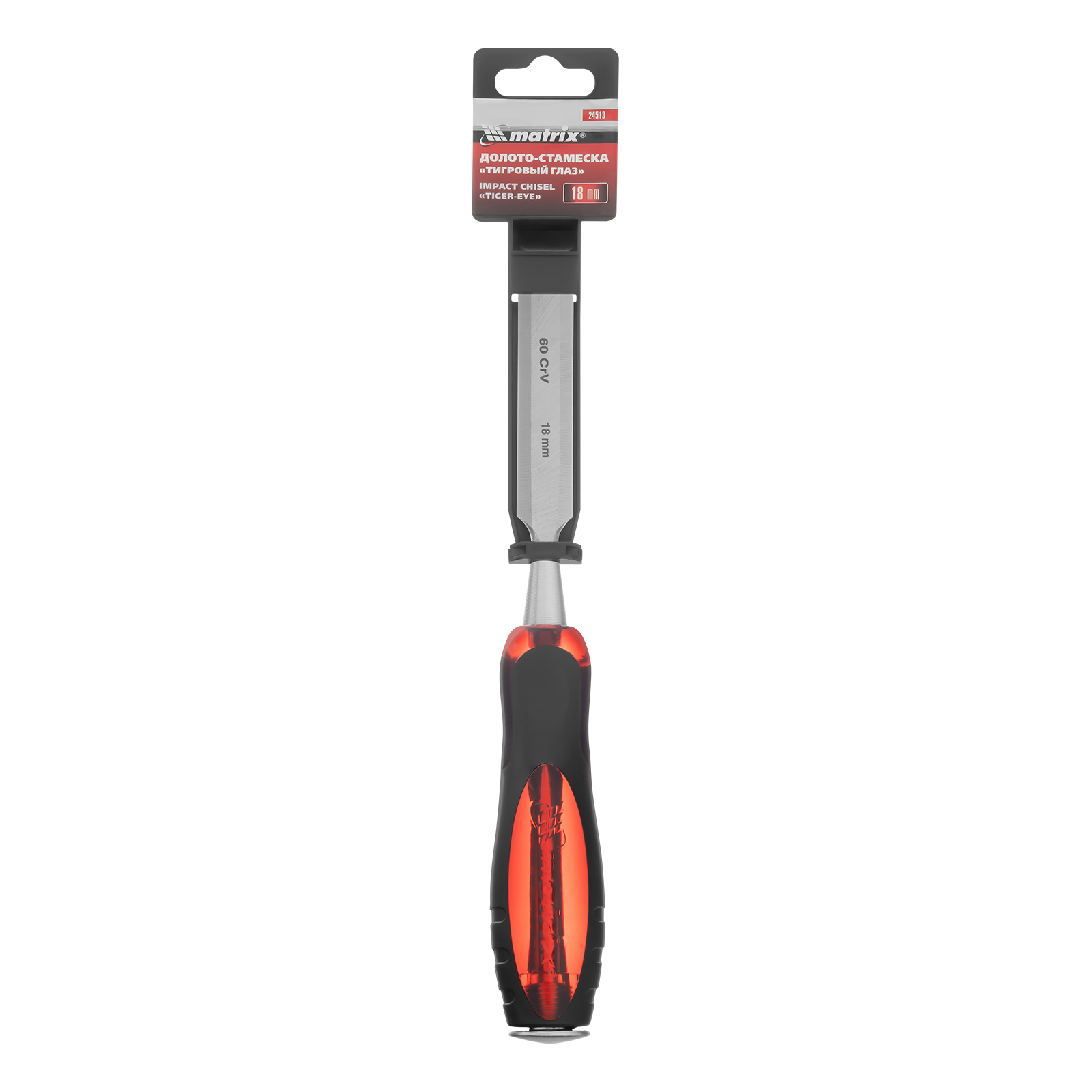 Долото-стамеска Matrix «Тигровый глаз» 24513 с полотном шириной 18 мм и двухкомпонентной обрезиненной рукояткой используется в столярном и плотницком деле, в производстве мебели. Позволяет вырезать углубления, формировать пазы, зачищать шипы и гнезда, снимать фаски. Инструмент выдерживает удары киянкой или молотком, т. к. металлический затыльник защищает его от деформации. Долото относится к профессиональному ручному инструменту, но может применяться и в домашних условиях.