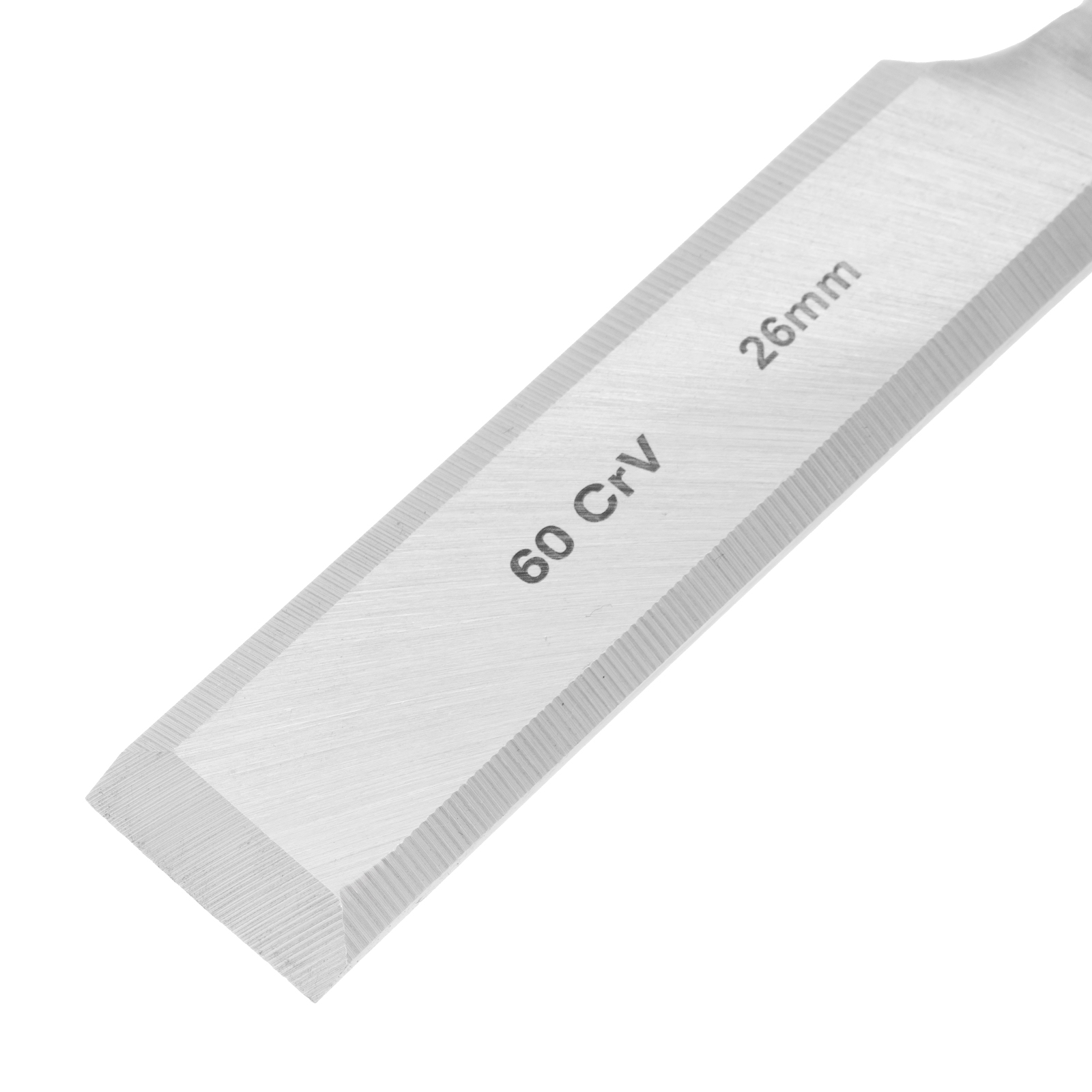 - Длительное сохранение режущих свойств — долото-стамеска обладает твердостью 65 HRC (0,7 длины рабочей части полотна), острое, как бритва, лезвие обработано на заводе под углом 20-35°, повторная заточка потребуется минимум через 6 месяцев.