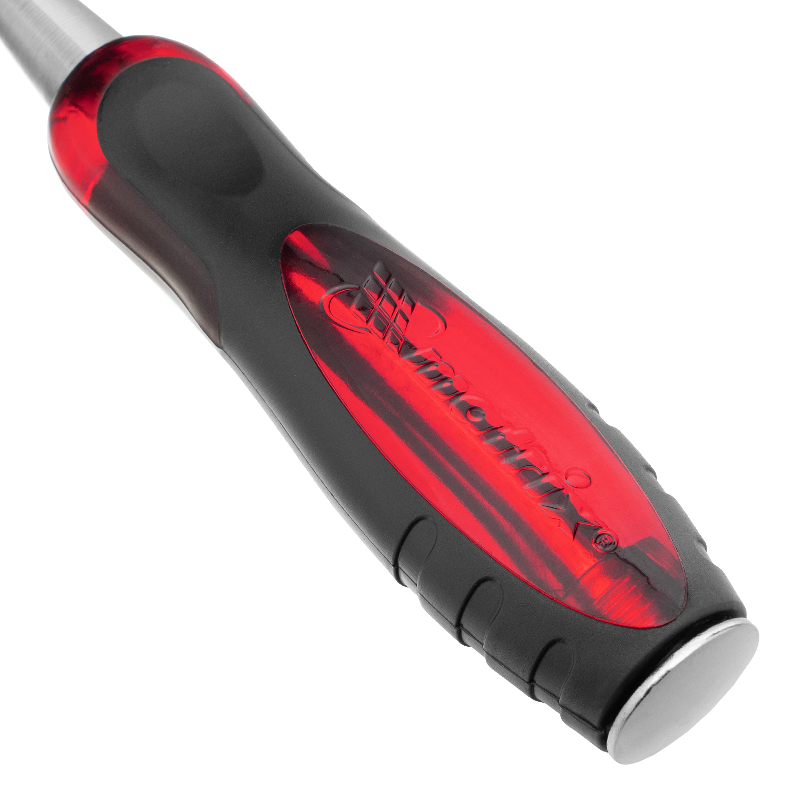 - Продуманная конструкция — металлический стержень, проходящий сквозь рукоятку, повышает прочность и долговечность инструмента.