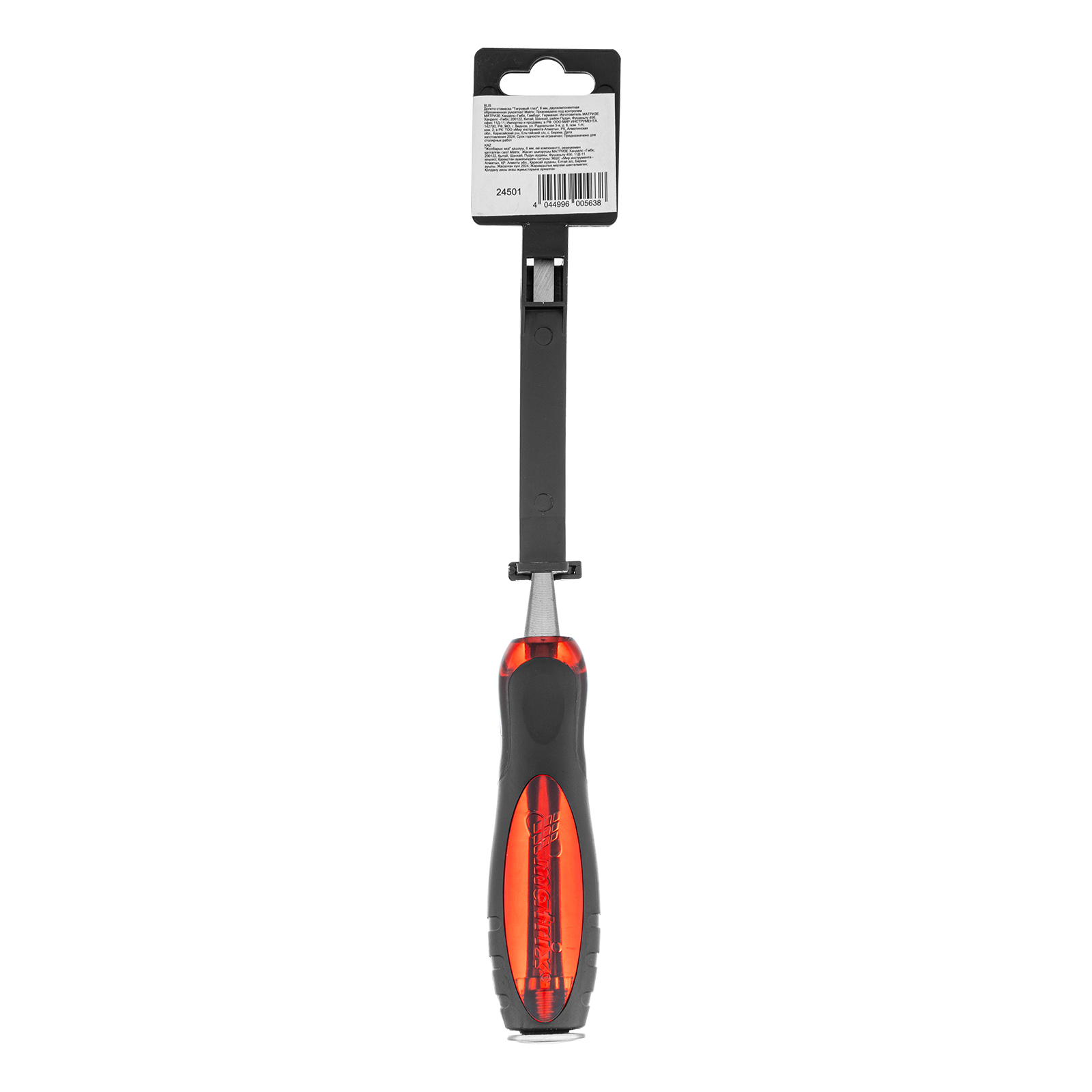 - Продуманная конструкция — металлический стержень, проходящий сквозь рукоятку, повышает прочность и долговечность инструмента.