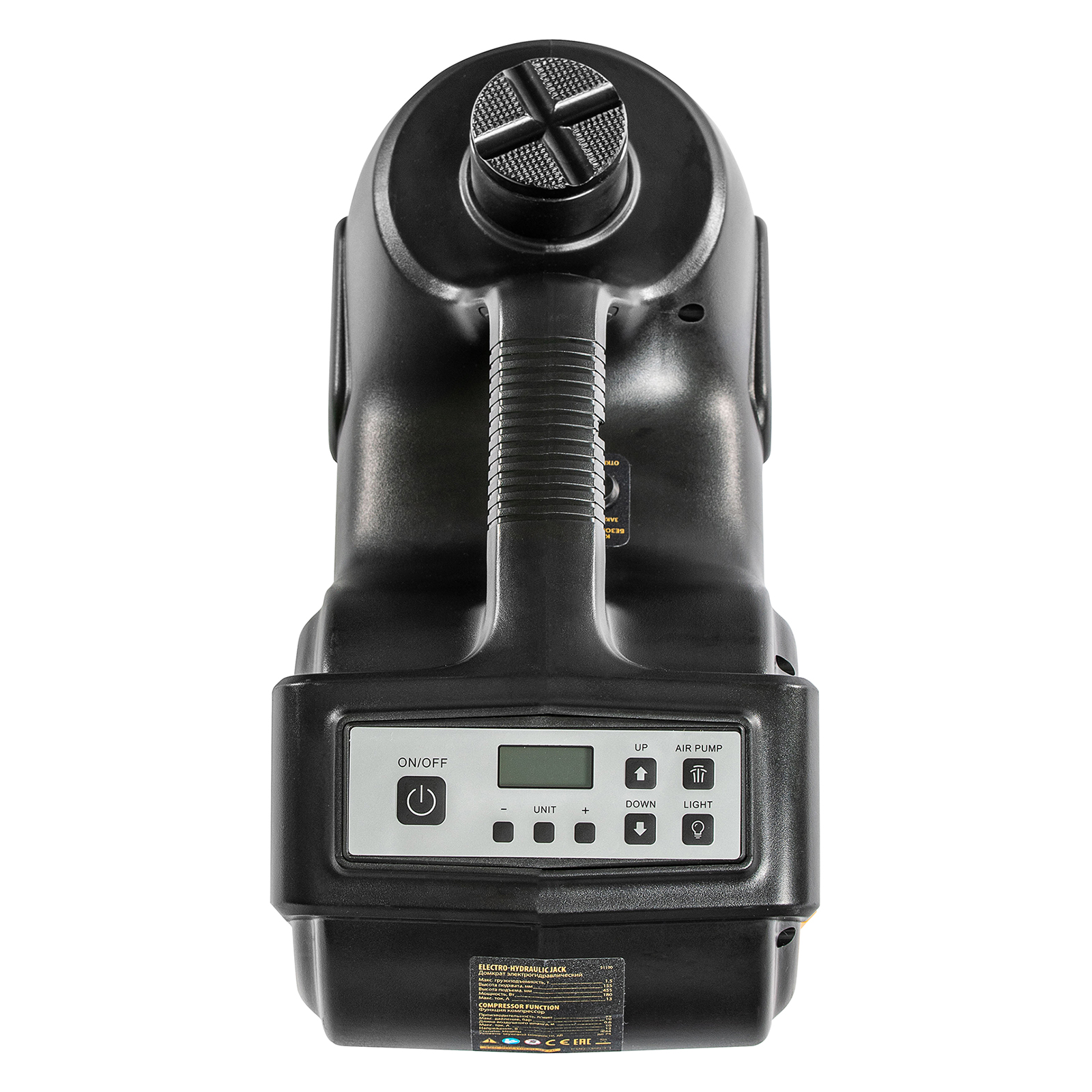 - Продуманная конструкция — в корпусе домкрата имеются отсеки для хранения аксессуаров, а также шланга и кабеля питания.