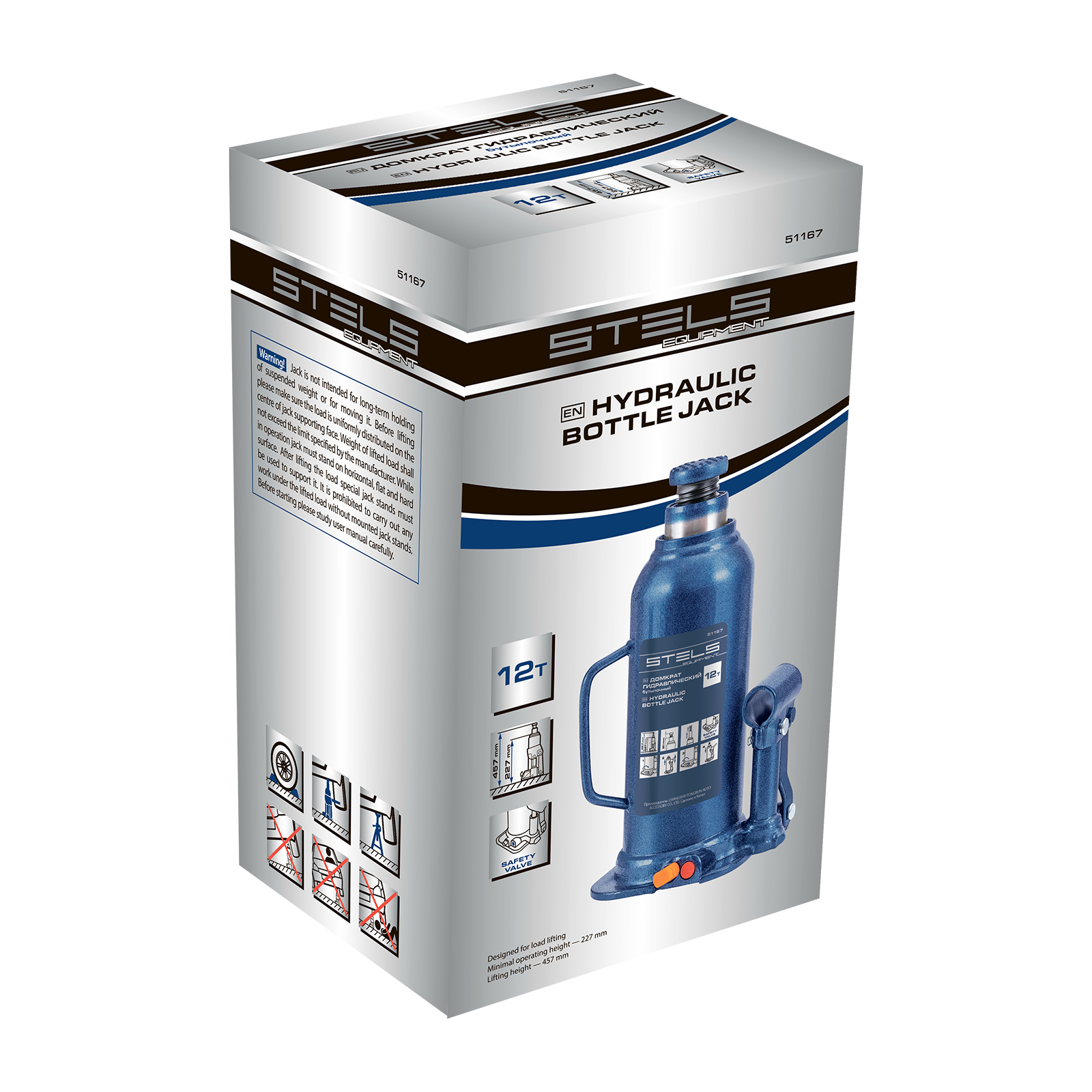 Гидравлический бутылочный домкрат Stels 51167 применяется для быстрого поднятия грузов весом до 12 т на высоту 227-457 мм. Оптимален для автомобилей с большим клиренсом. Домкрат будет полезен автолюбителям и профессионалам для ремонта транспортного средства.