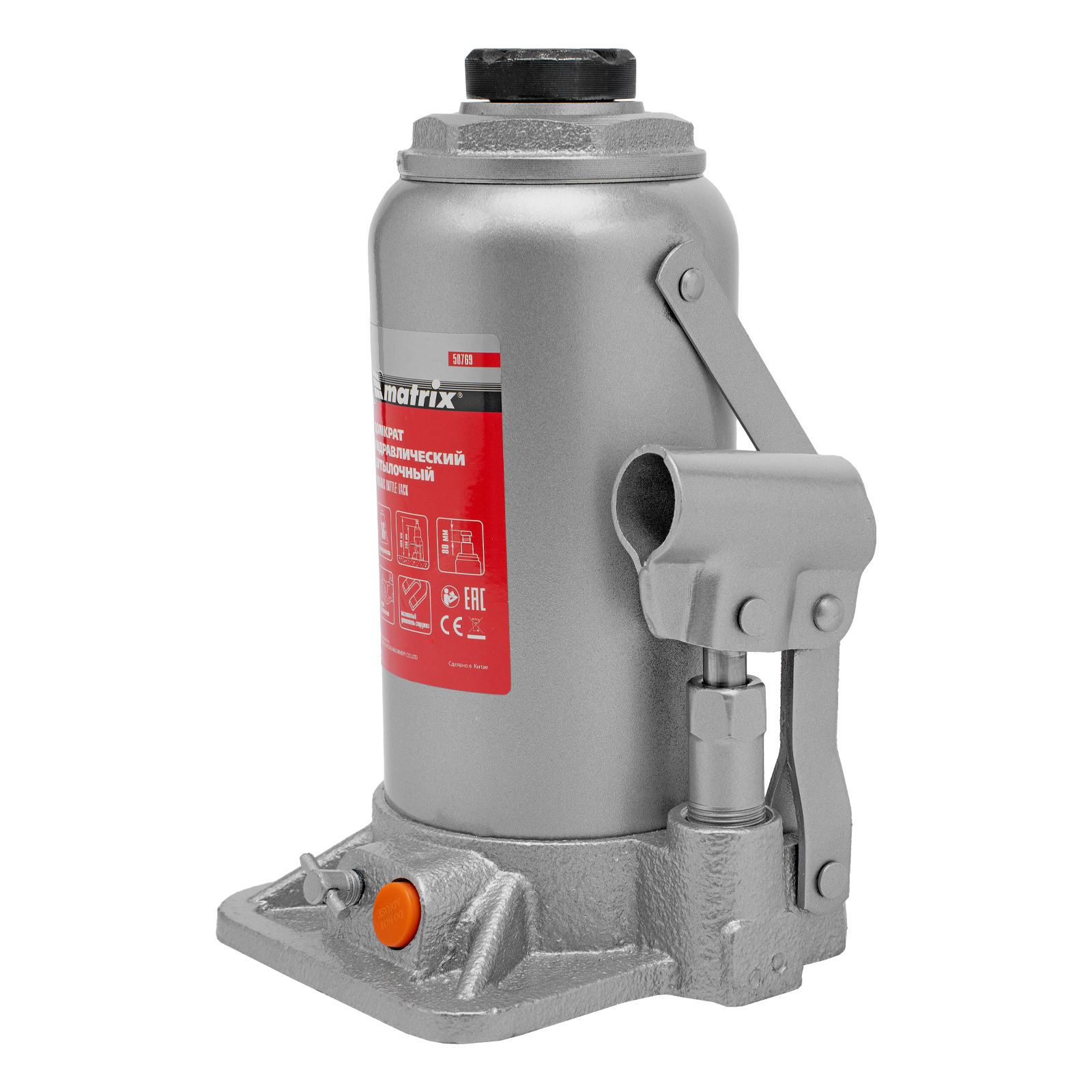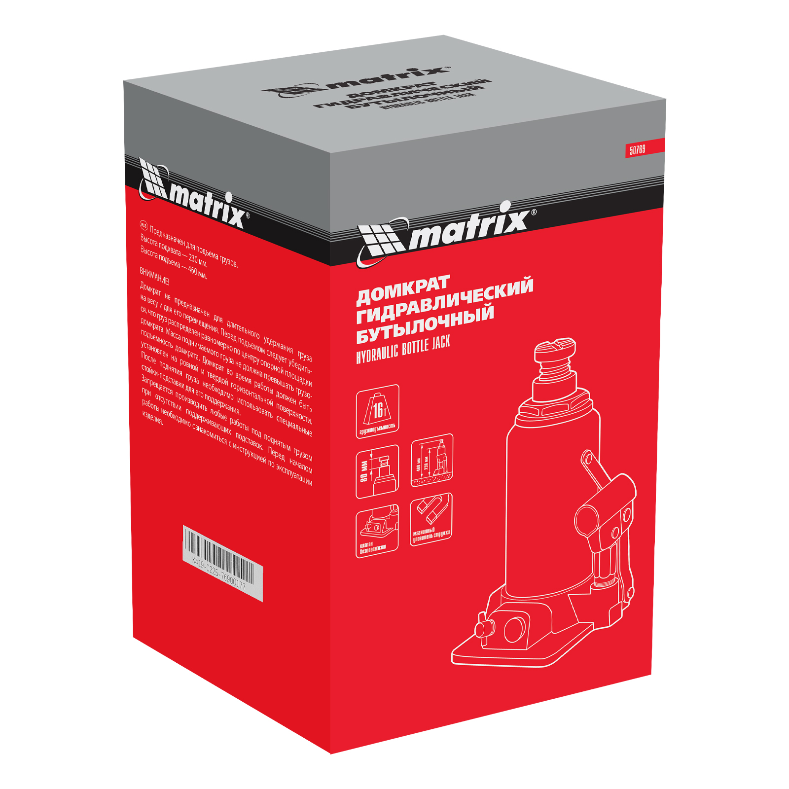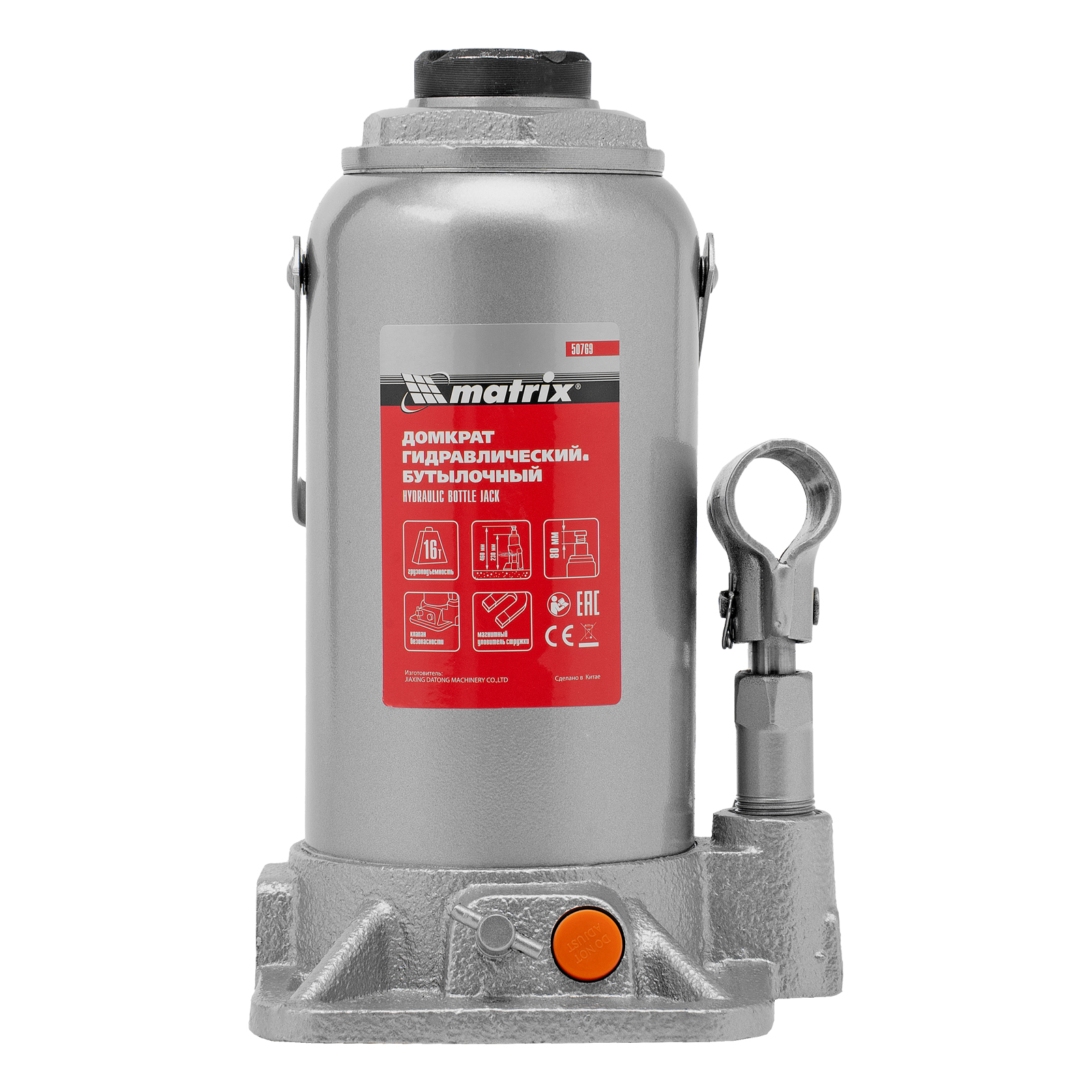 Гидравлический бутылочный домкрат Matrix 50769 предназначен для быстрого поднятия грузов массой до 16 т на высоту 230-460 мм. Будет полезен автолюбителям и мастерам СТО в качестве полупрофессионального инструмента. Встроенный магнитный уловитель металлической стружки защищает резиновые уплотнители от повреждений.