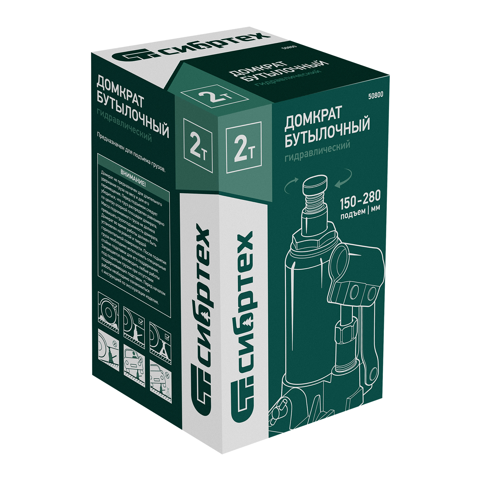 Домкрат гидравлический бутылочный Сибртех 50800 предназначен для подъема грузов массой до 2 т на высоту от 150 до 280 мм. Не требует больших усилий от пользователя и значительно облегчает рабочий процесс. Домкрат будет полезен при проведении техобслуживания машины в автосервисе или гараже.