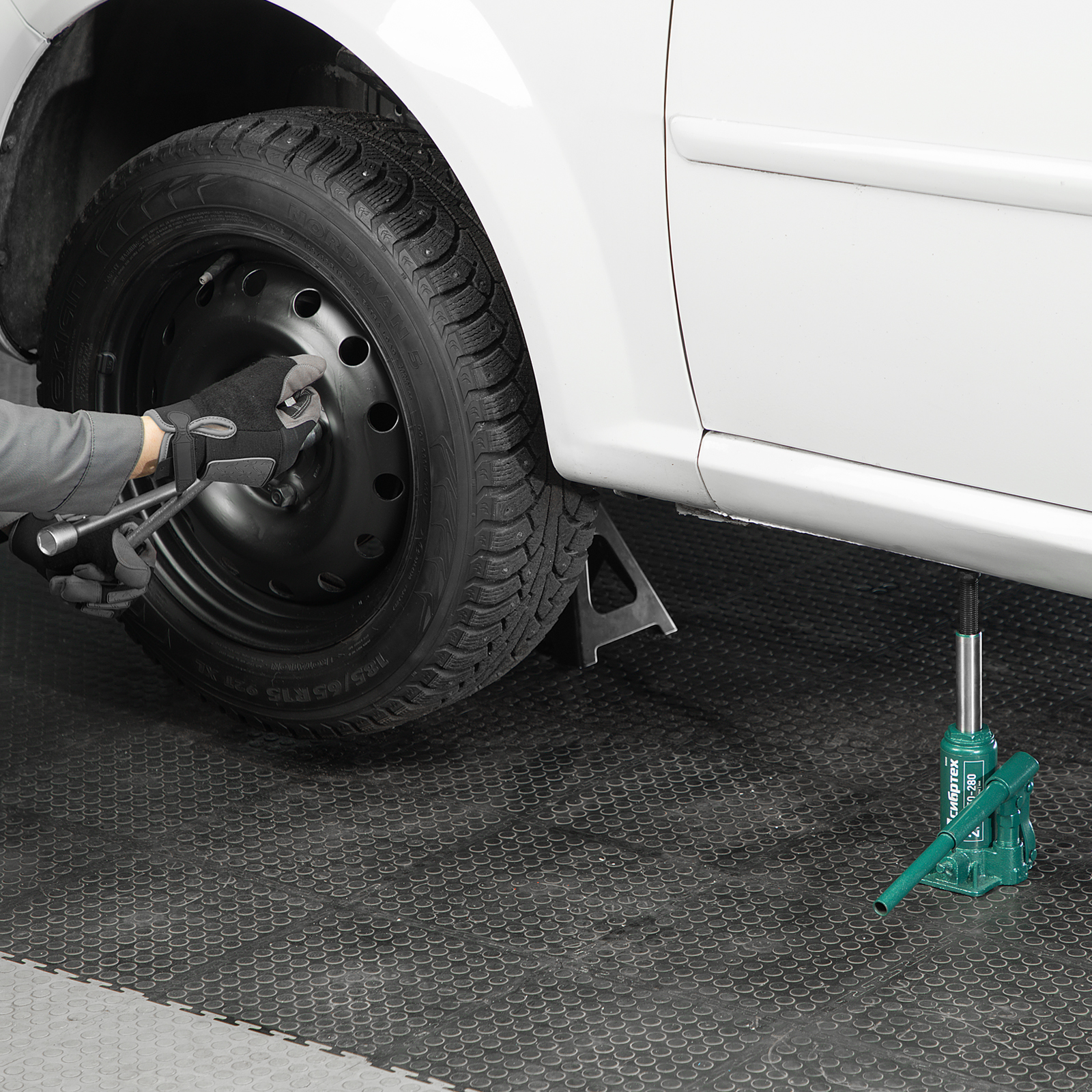 - Удобное хранение и транспортировка — домкрат весит всего 1,9 кг, а благодаря съемному рычагу не занимает много места.