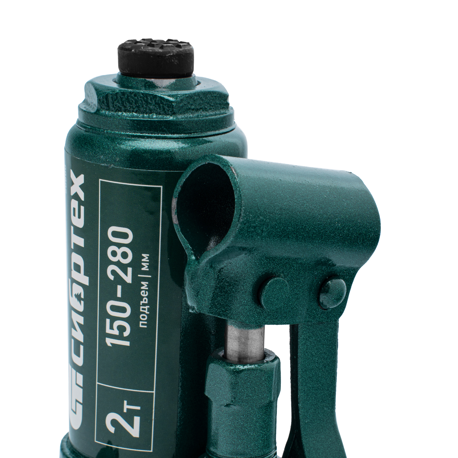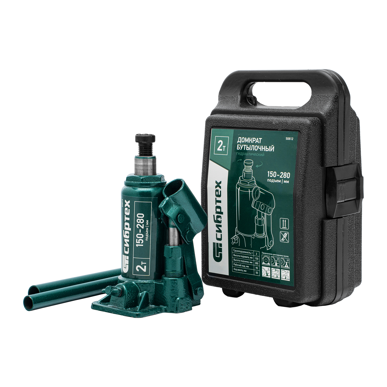 Домкрат гидравлический бутылочный Сибртех 50812, поставляющийся в пластиковом кейсе, предназначен для подъема грузов массой до 2 т на высоту от 150 до 280 мм. Не требует больших усилий от пользователя и значительно облегчает рабочий процесс. Домкрат будет полезен при проведении техобслуживания машины в автосервисе или гараже.
