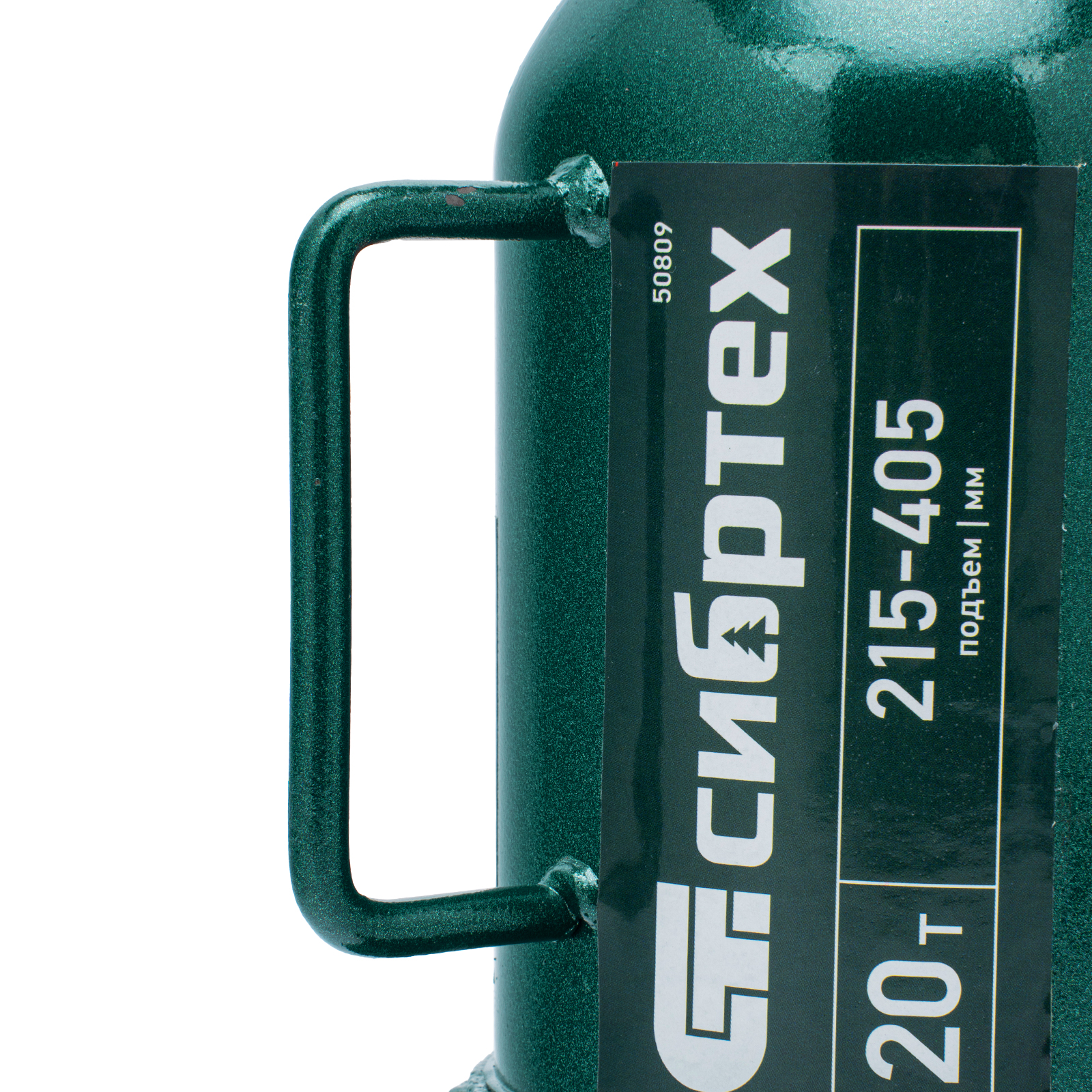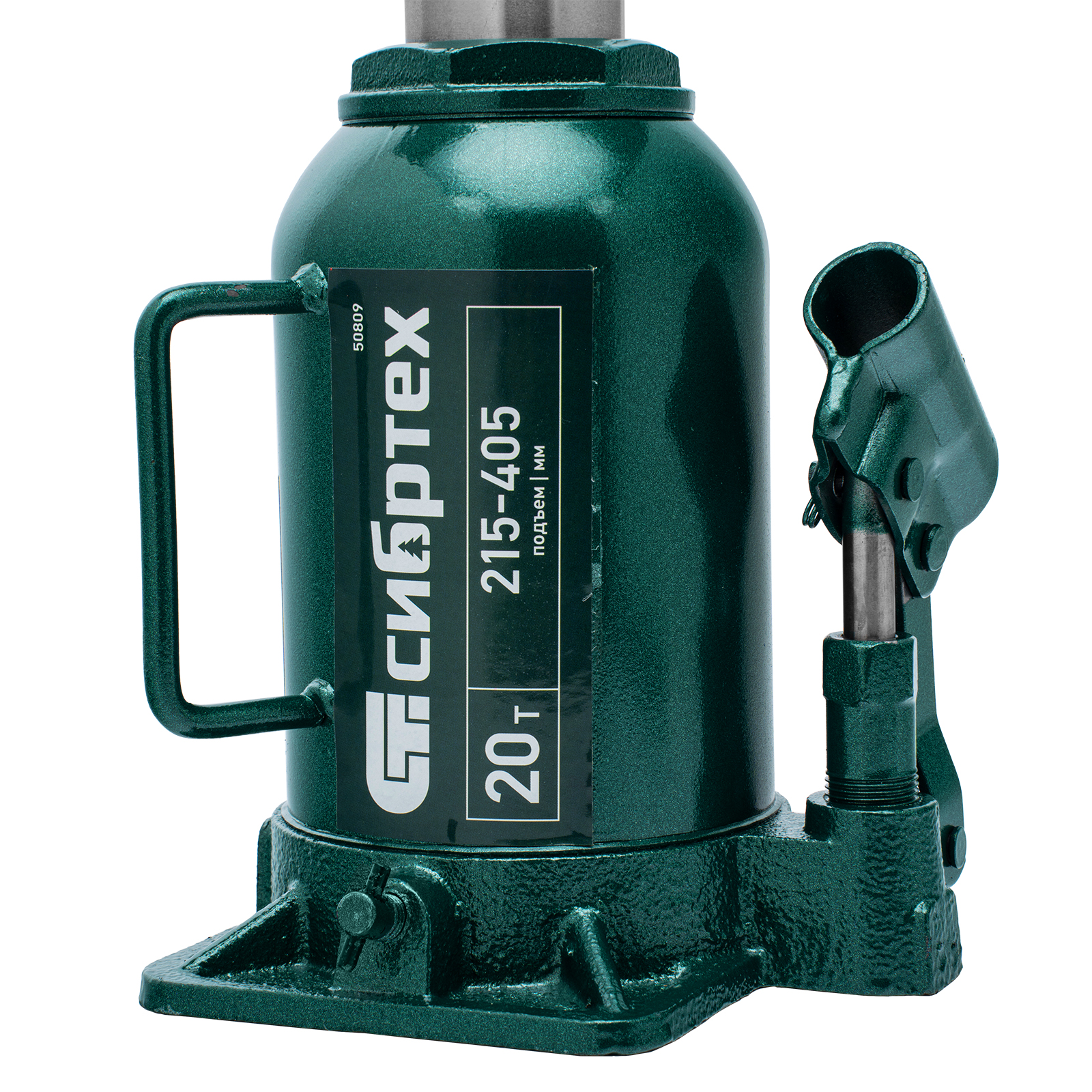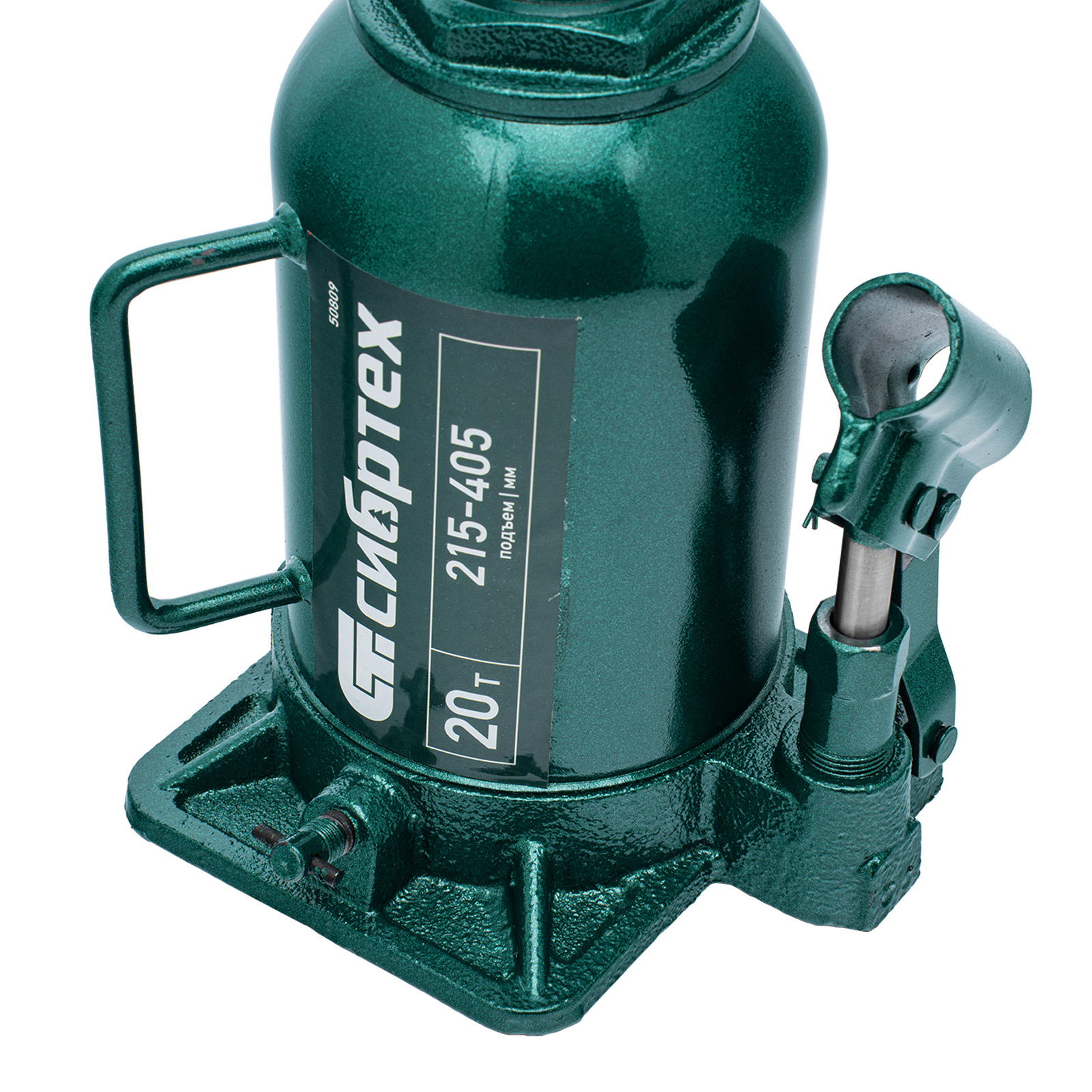 Домкрат гидравлический бутылочный Сибртех 50809 предназначен для подъема грузов массой до 20 т на высоту от 215 до 405 мм. Не требует больших усилий от пользователя и значительно облегчает рабочий процесс. Домкрат будет полезен при проведении техобслуживания машины в автосервисе или гараже.