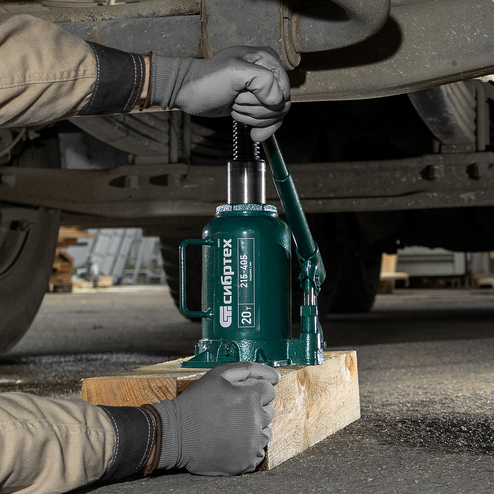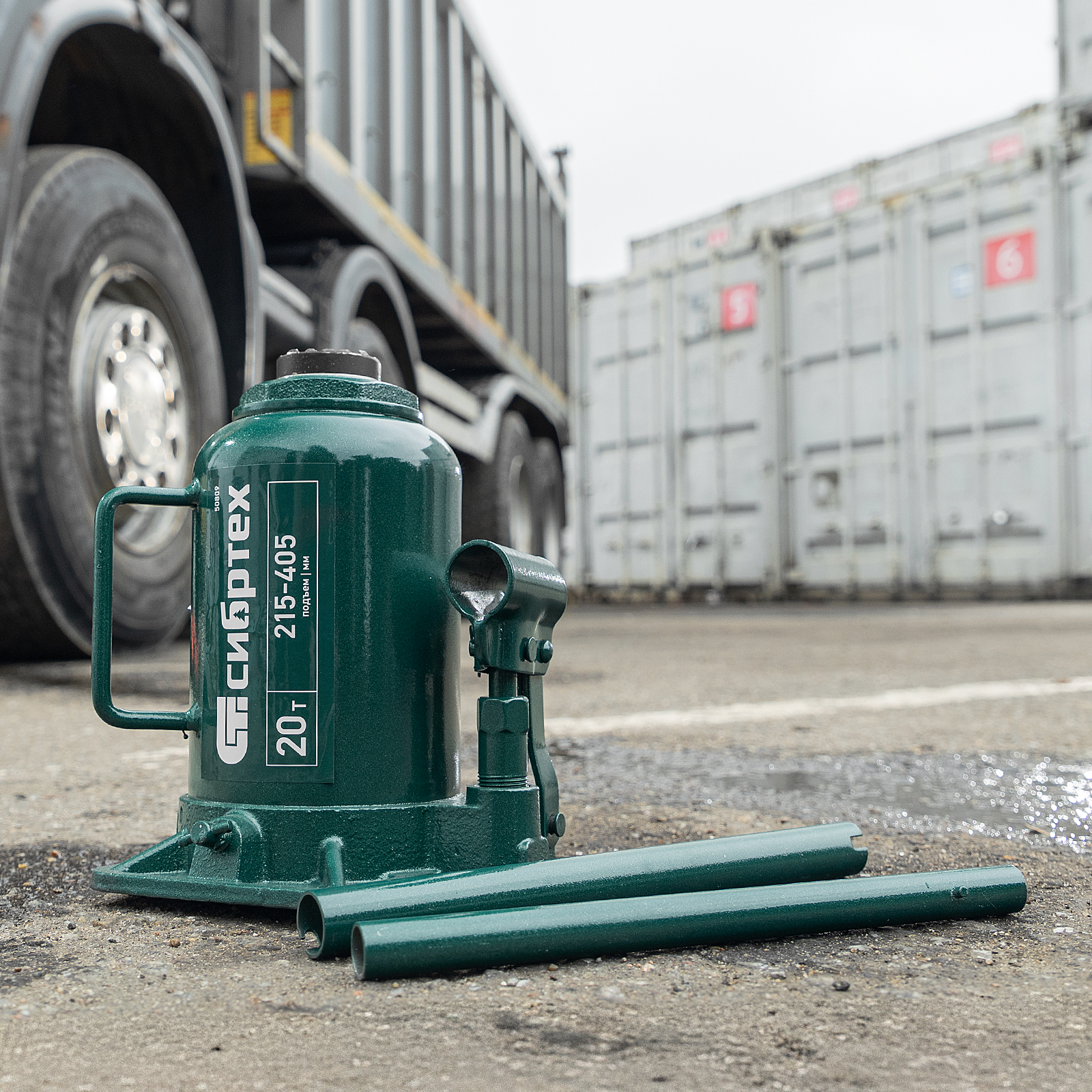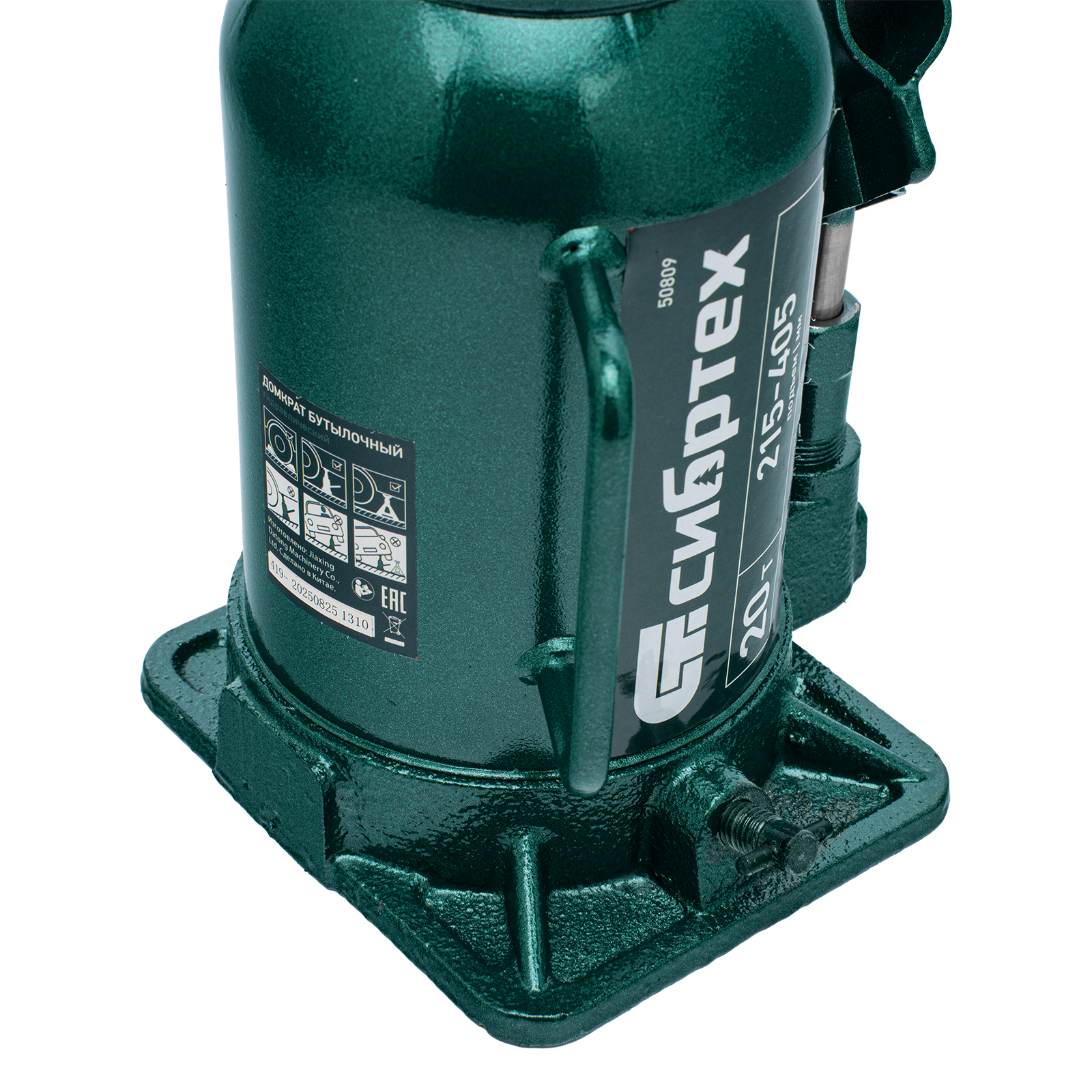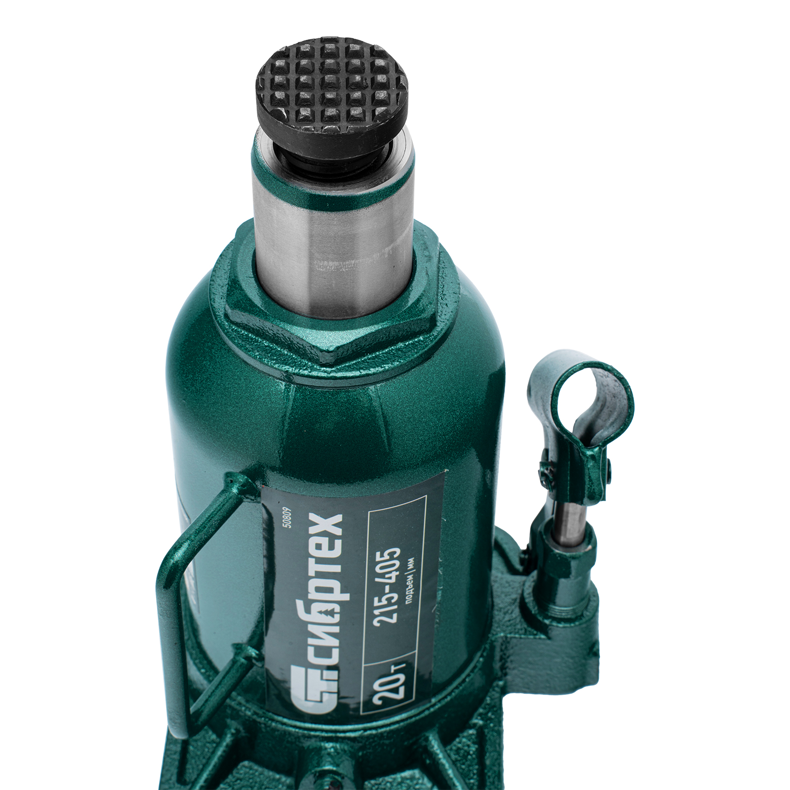 Домкрат гидравлический бутылочный Сибртех 50809 предназначен для подъема грузов массой до 20 т на высоту от 215 до 405 мм. Не требует больших усилий от пользователя и значительно облегчает рабочий процесс. Домкрат будет полезен при проведении техобслуживания машины в автосервисе или гараже.