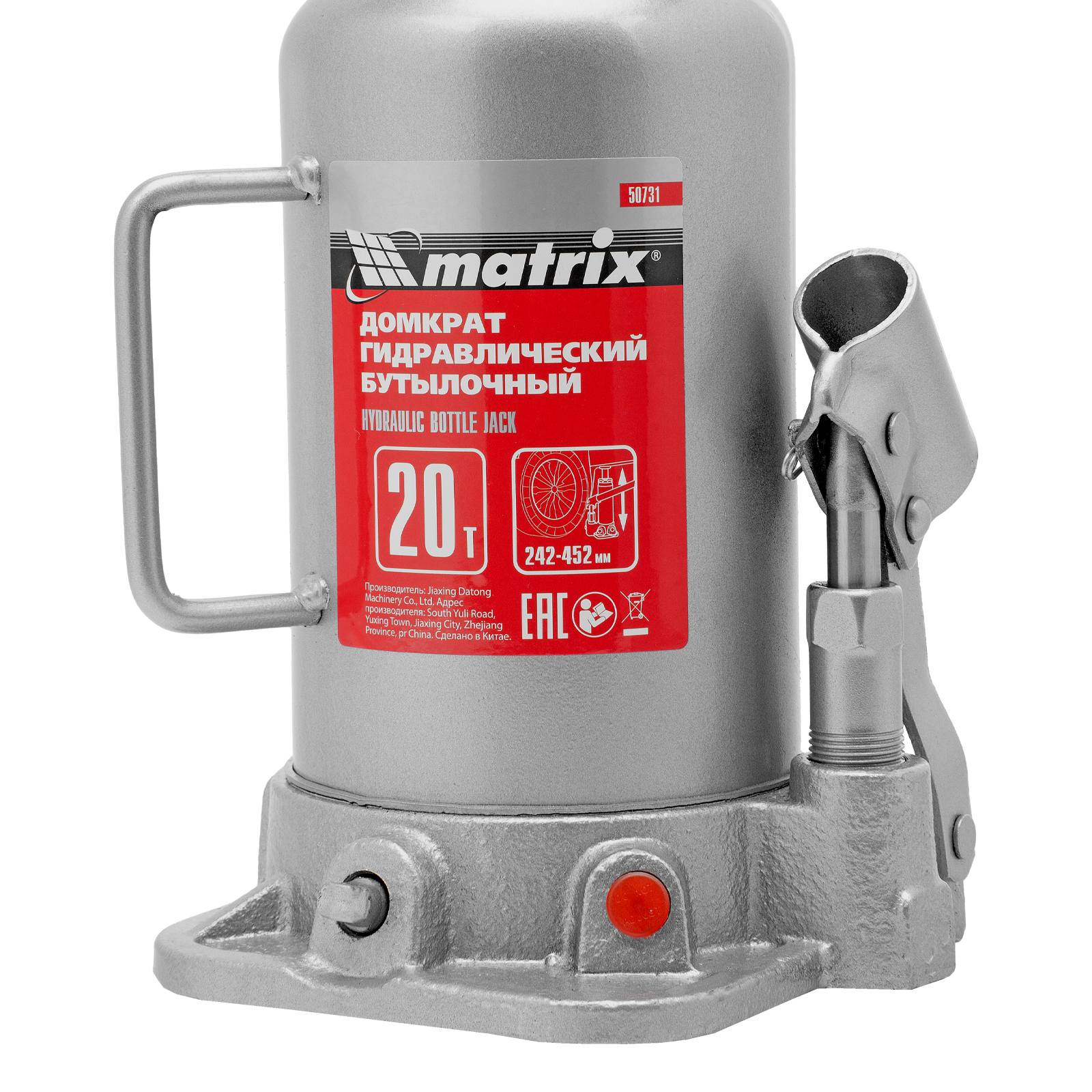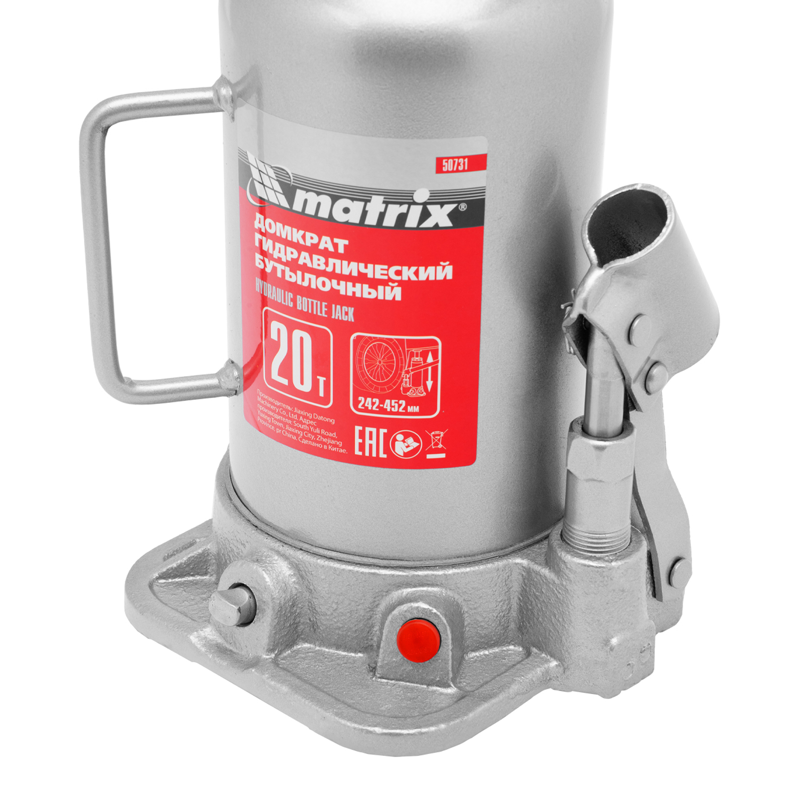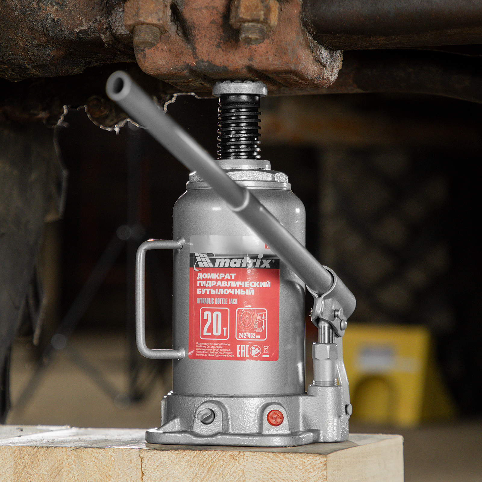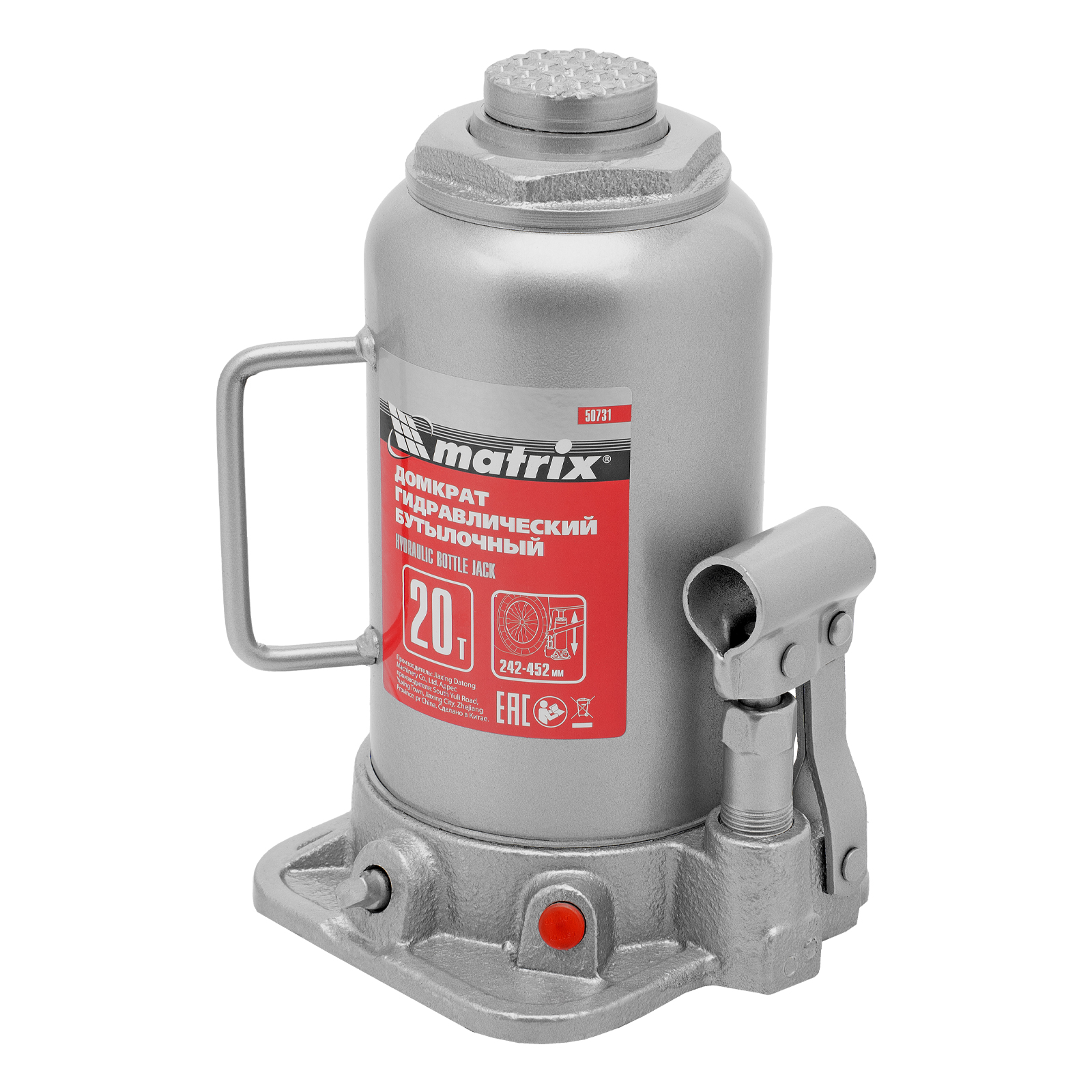 Домкрат гидравлический бутылочный Matrix 50731 используется для поднятия грузов массой до 20 т на высоту 242-452 мм. Подходит для автомобилей с высоким клиренсом. Домкрат будет полезен автолюбителям в гараже и дороге, а также сотрудникам СТО.