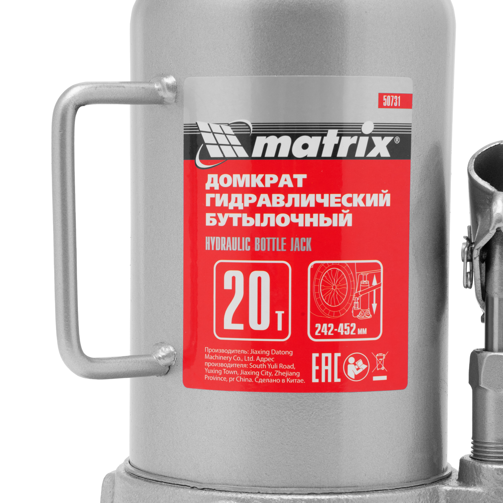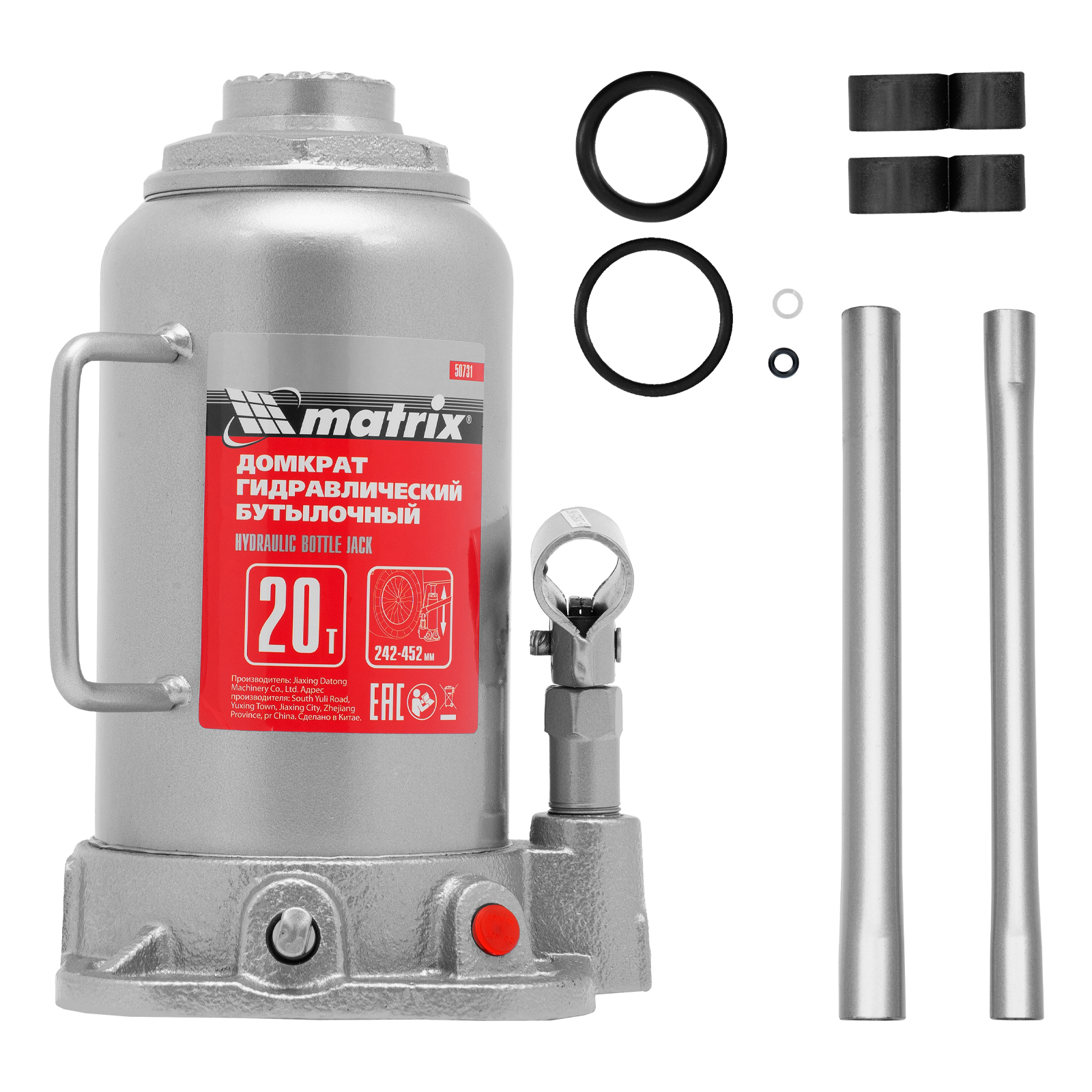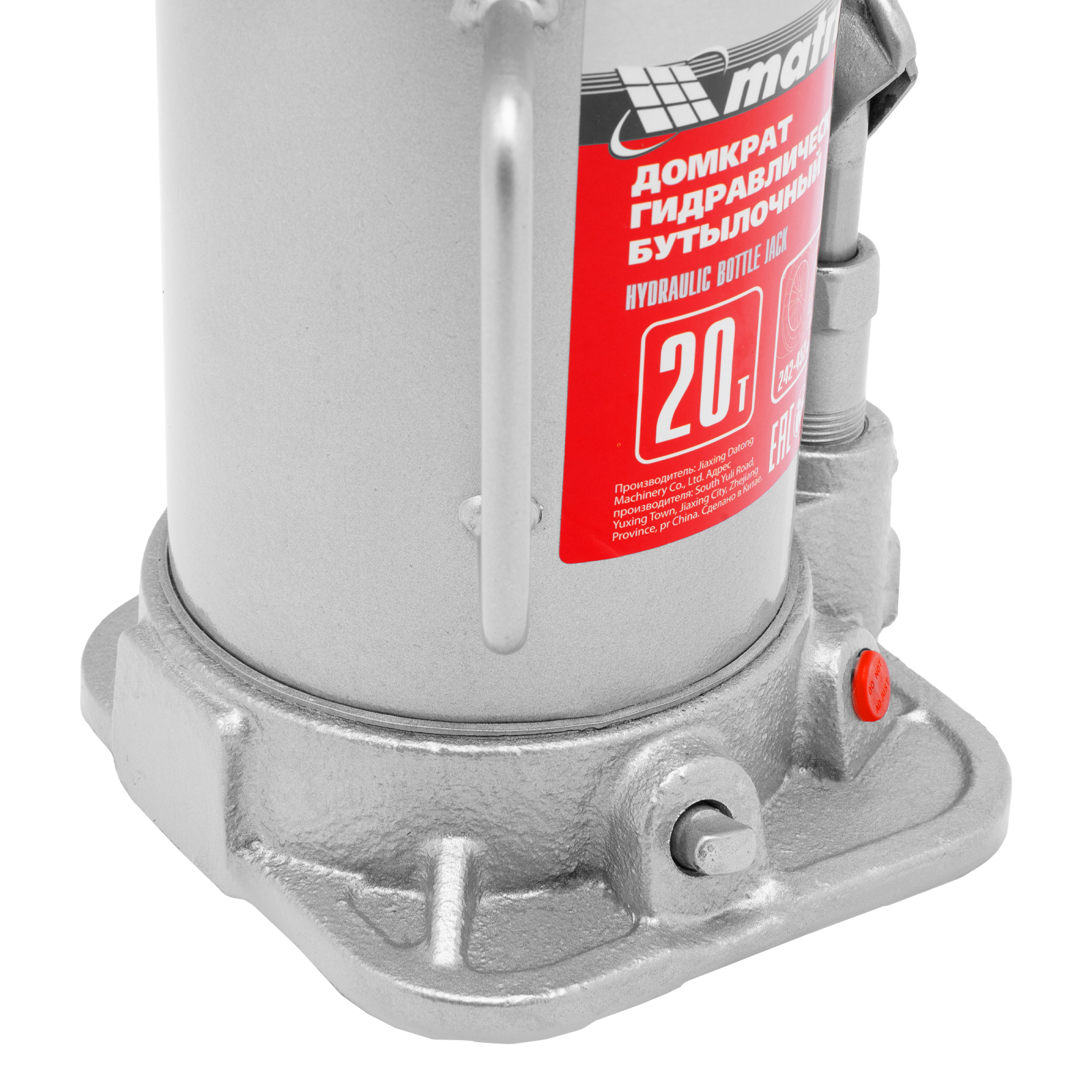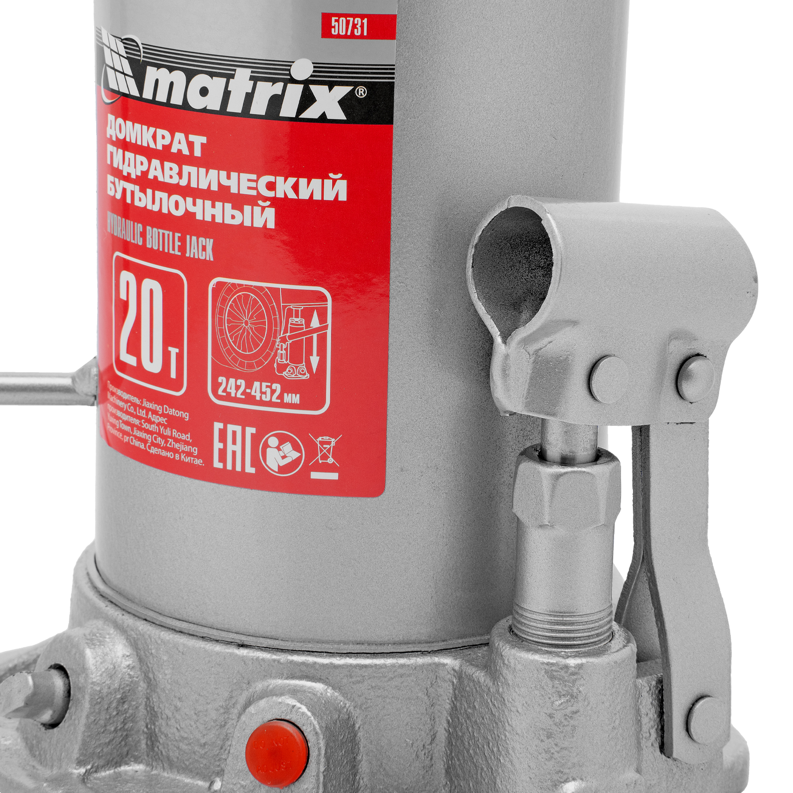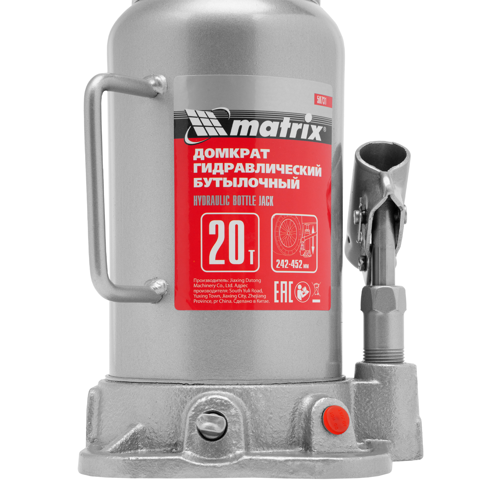Домкрат гидравлический бутылочный Matrix 50731 используется для поднятия грузов массой до 20 т на высоту 242-452 мм. Подходит для автомобилей с высоким клиренсом. Домкрат будет полезен автолюбителям в гараже и дороге, а также сотрудникам СТО.