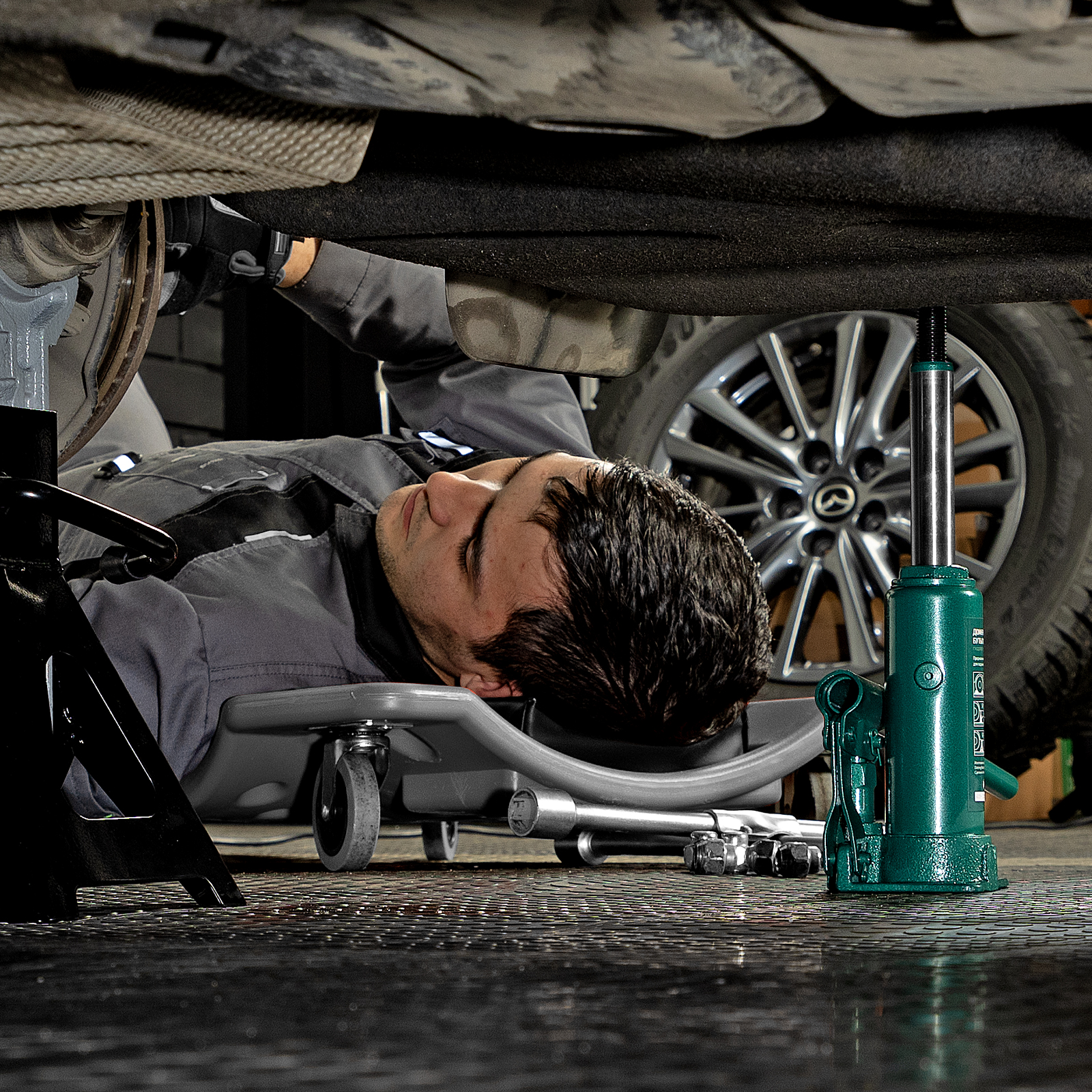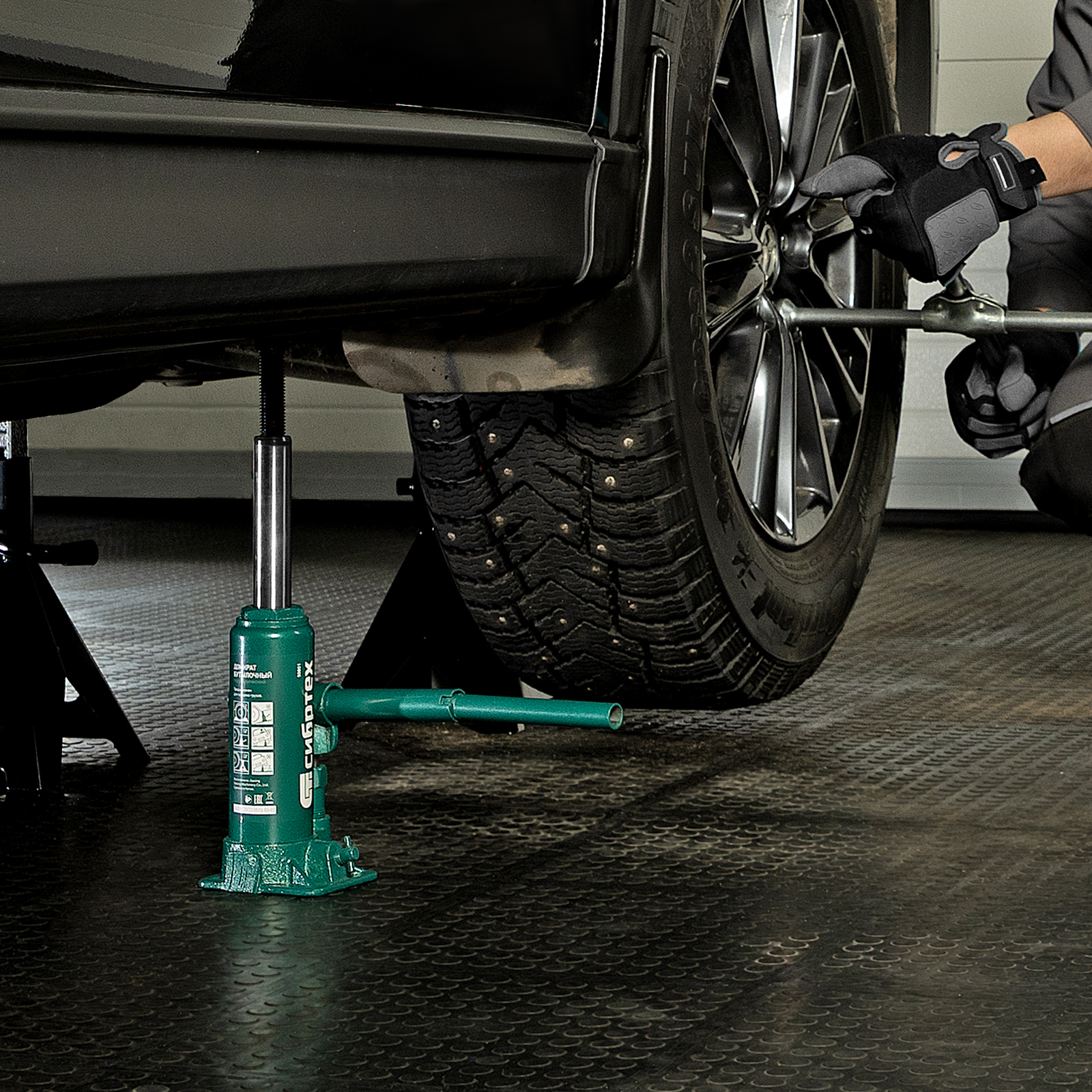 - Удобное хранение и транспортировка — домкрат весит всего 2,2 кг, а благодаря съемному рычагу не занимает много места.