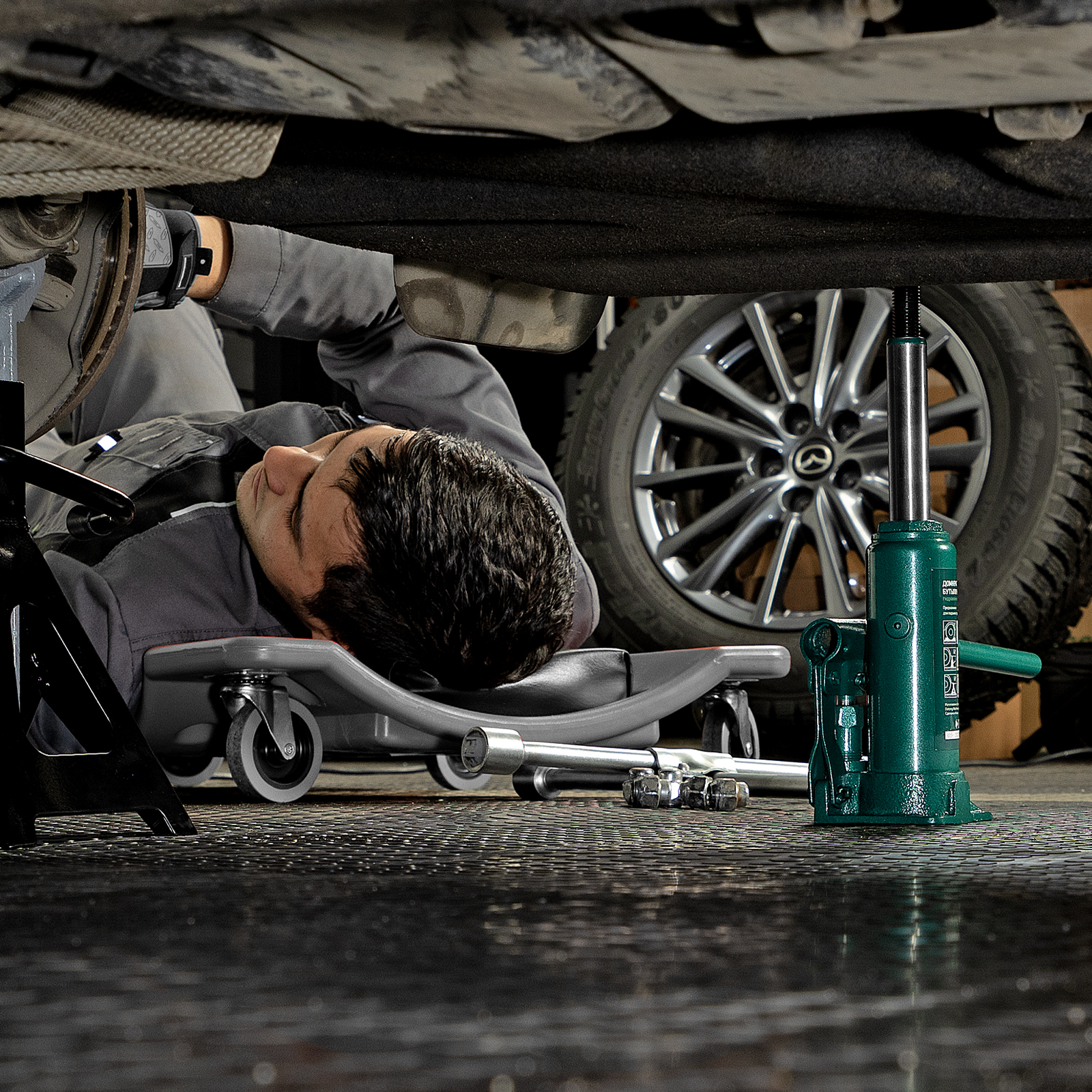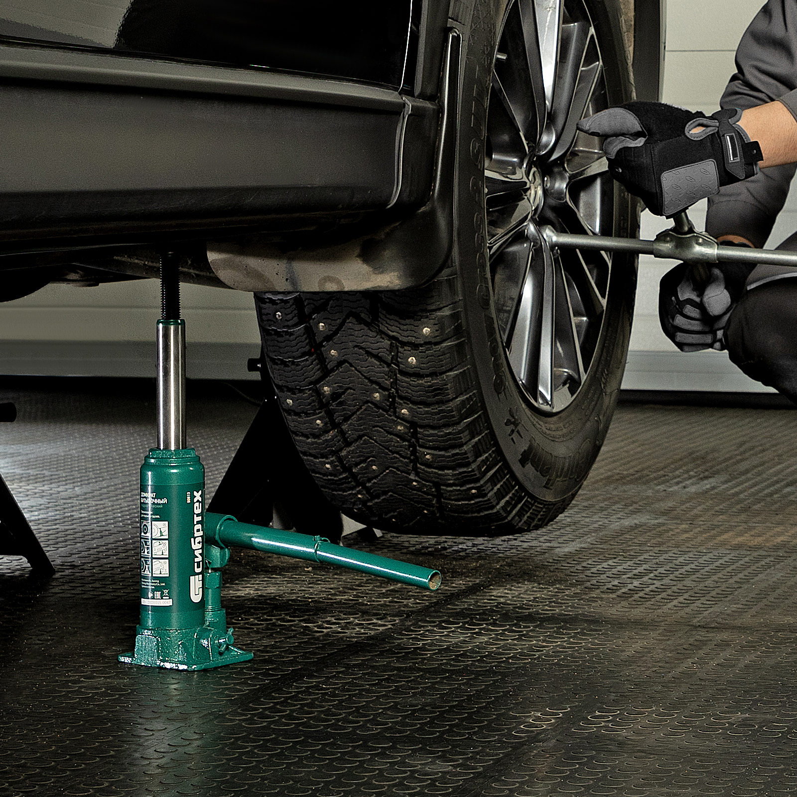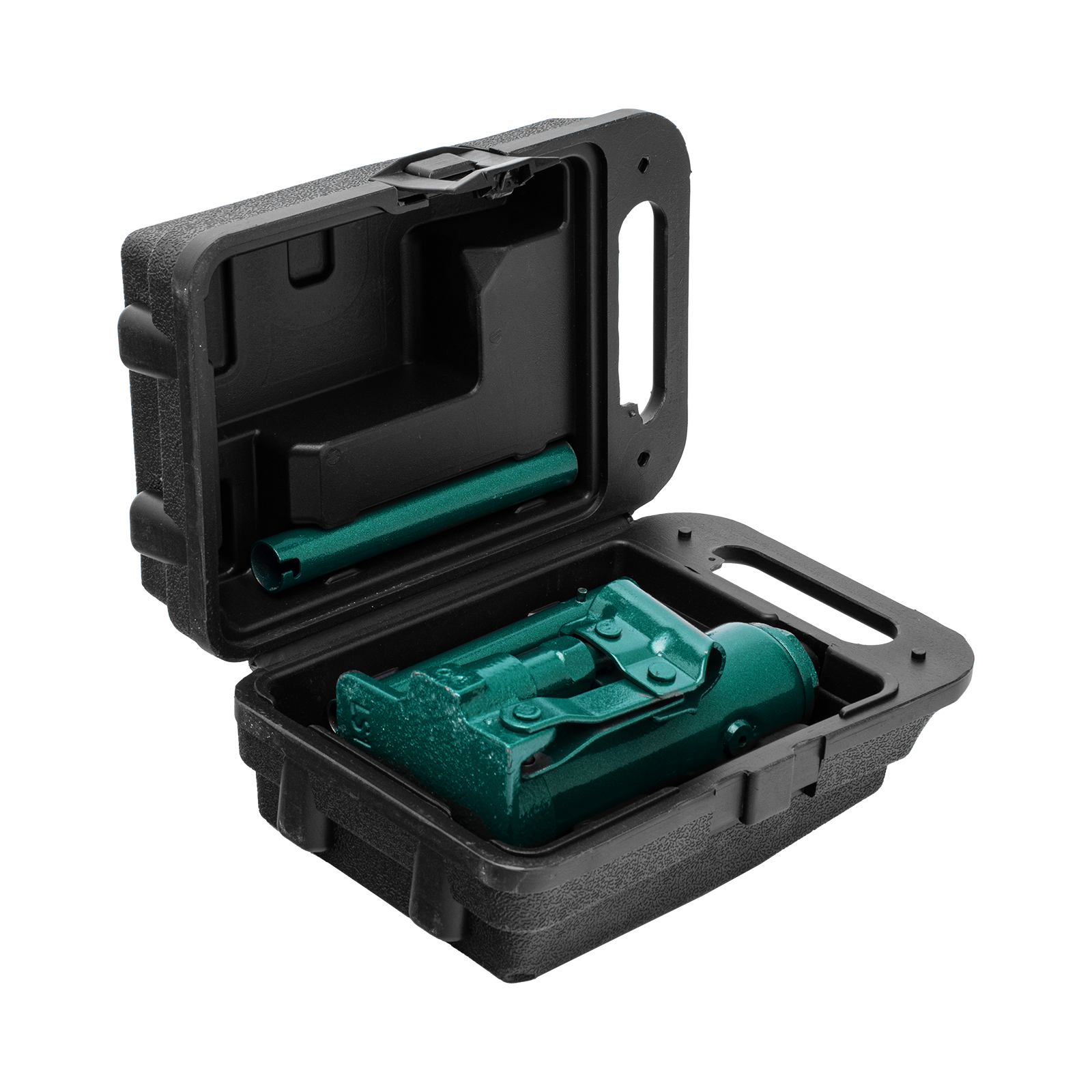 - Удобное хранение и транспортировка — домкрат весит всего 2,2 кг и поставляется в прочном пластиковом кейсе с рукояткой.