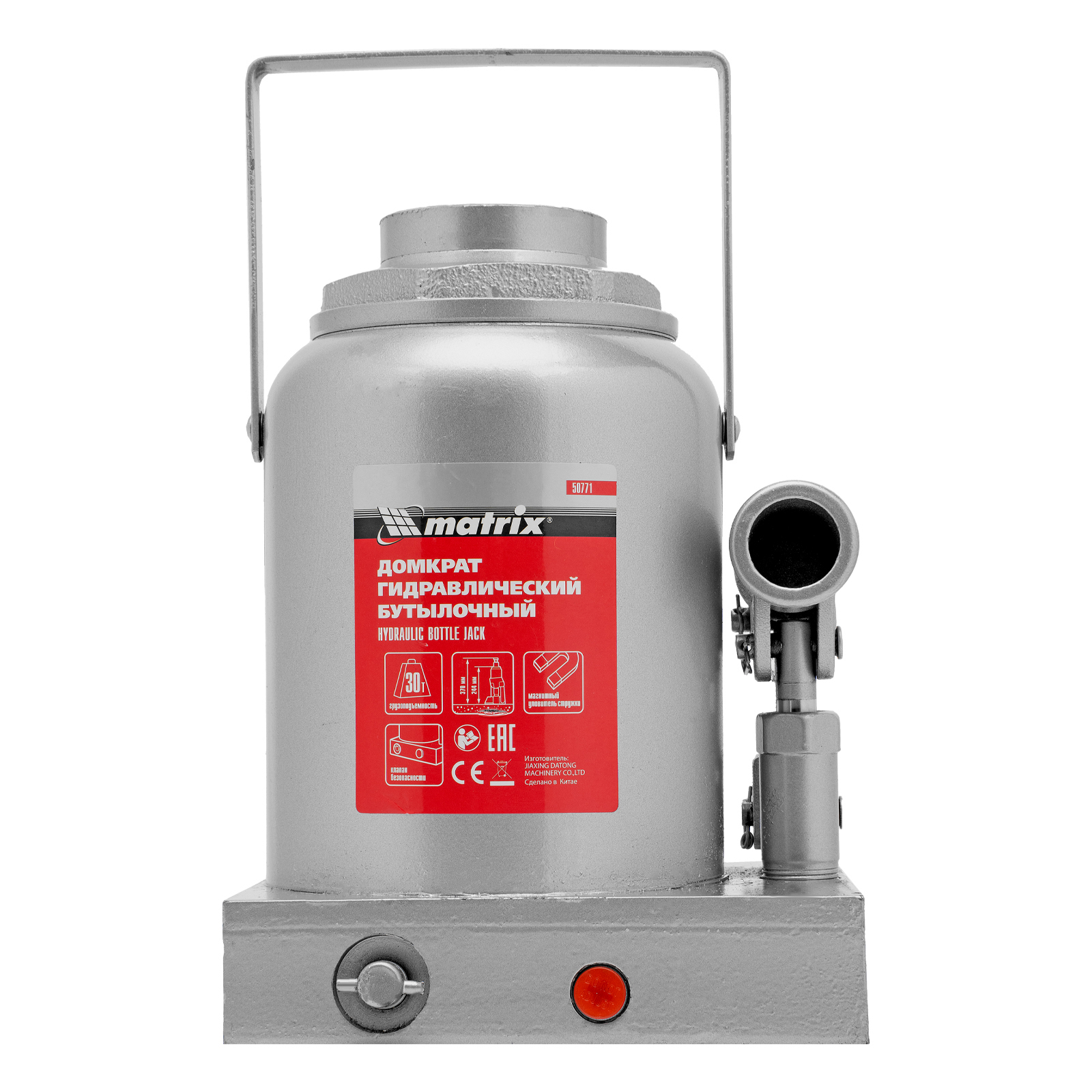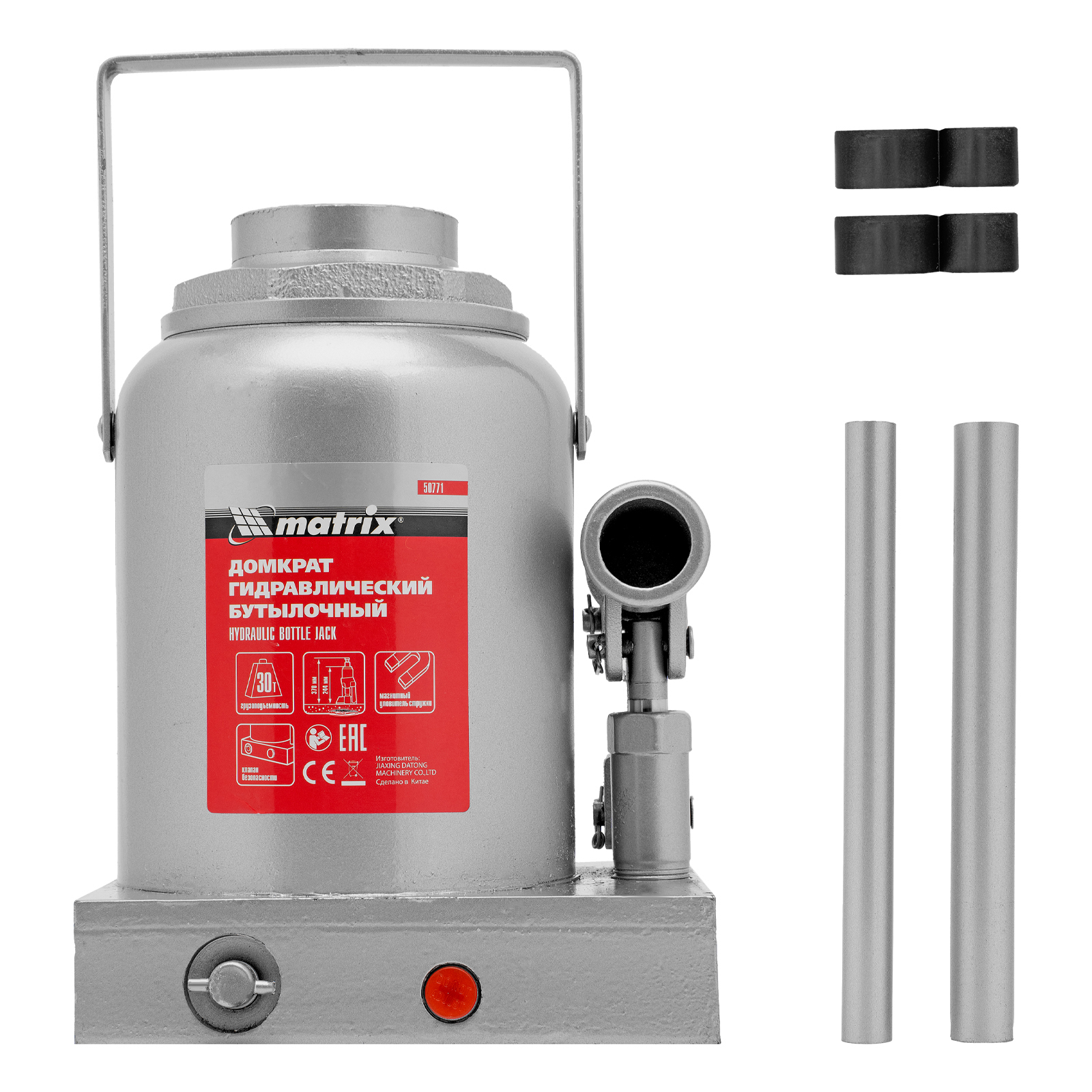 Гидравлический бутылочный домкрат Matrix 50771 предназначен для быстрого поднятия грузов массой до 30 т на высоту 244-370 мм. Будет полезен автолюбителям и мастерам СТО в качестве полупрофессионального инструмента. Встроенный магнитный уловитель металлической стружки защищает резиновые уплотнители от повреждений.