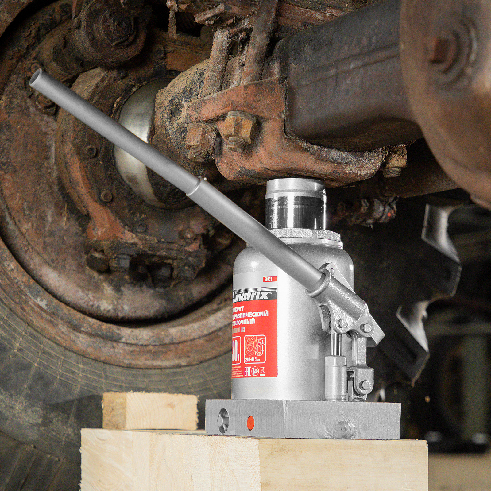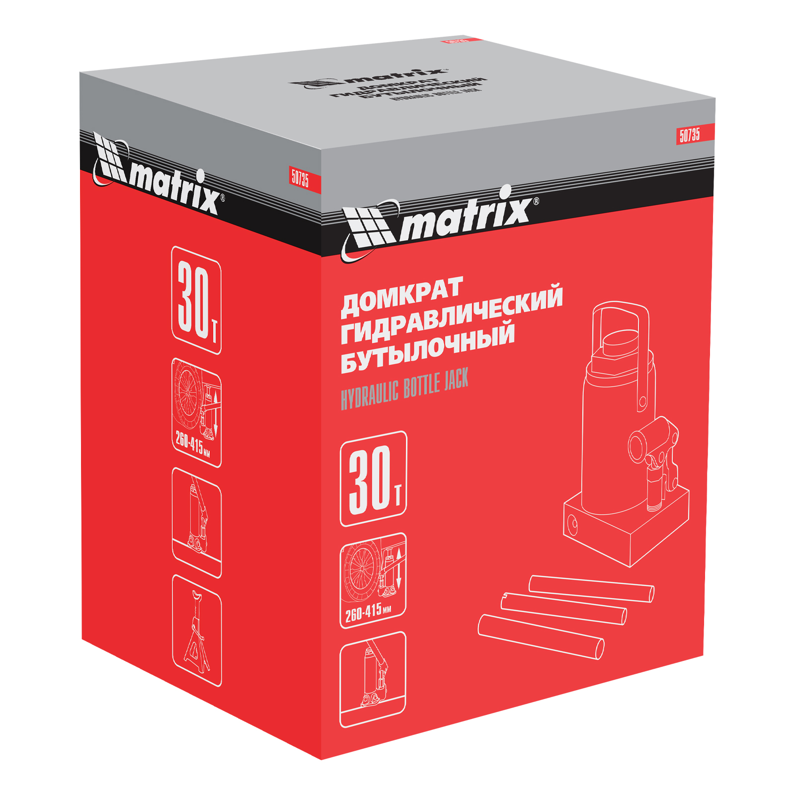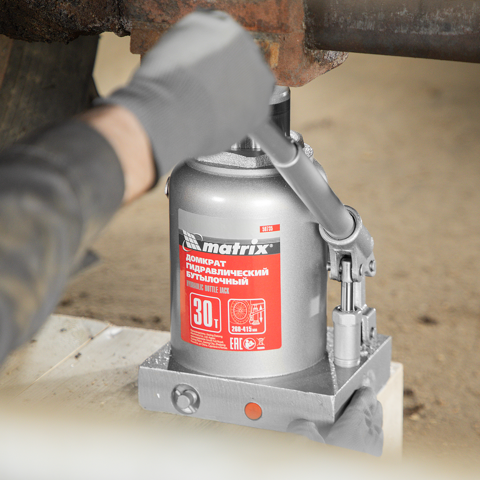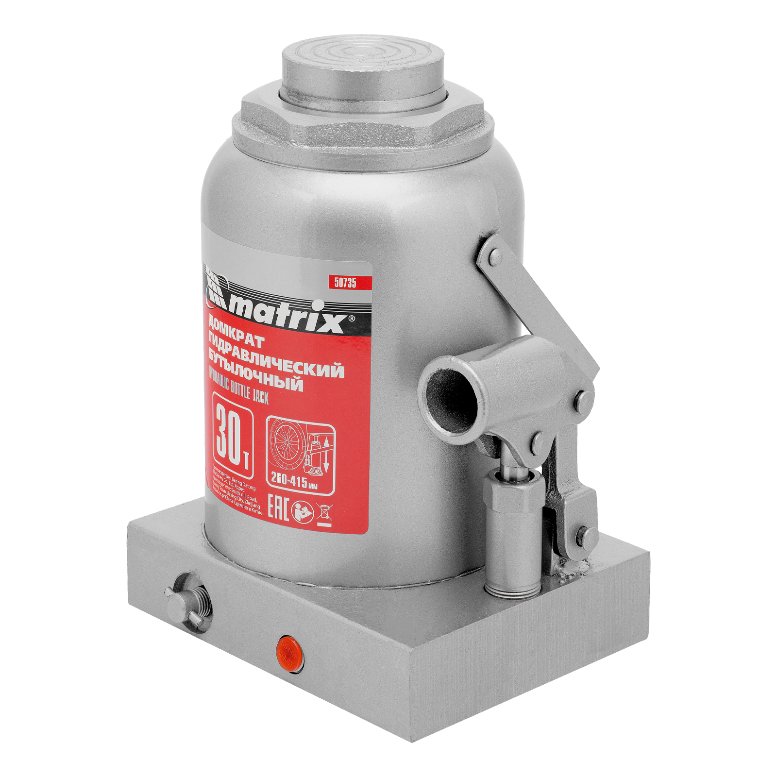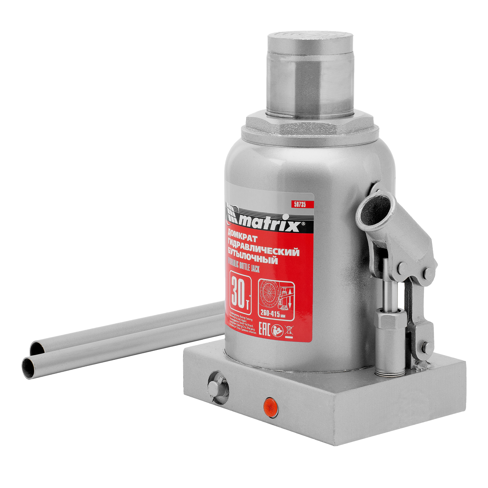 Домкрат гидравлический бутылочный Matrix 50735 используется для поднятия грузов массой до 30 т на высоту 260-415 мм. Подходит для автомобилей с высоким клиренсом. Домкрат будет полезен автолюбителям в гараже и дороге, а также сотрудникам СТО.
