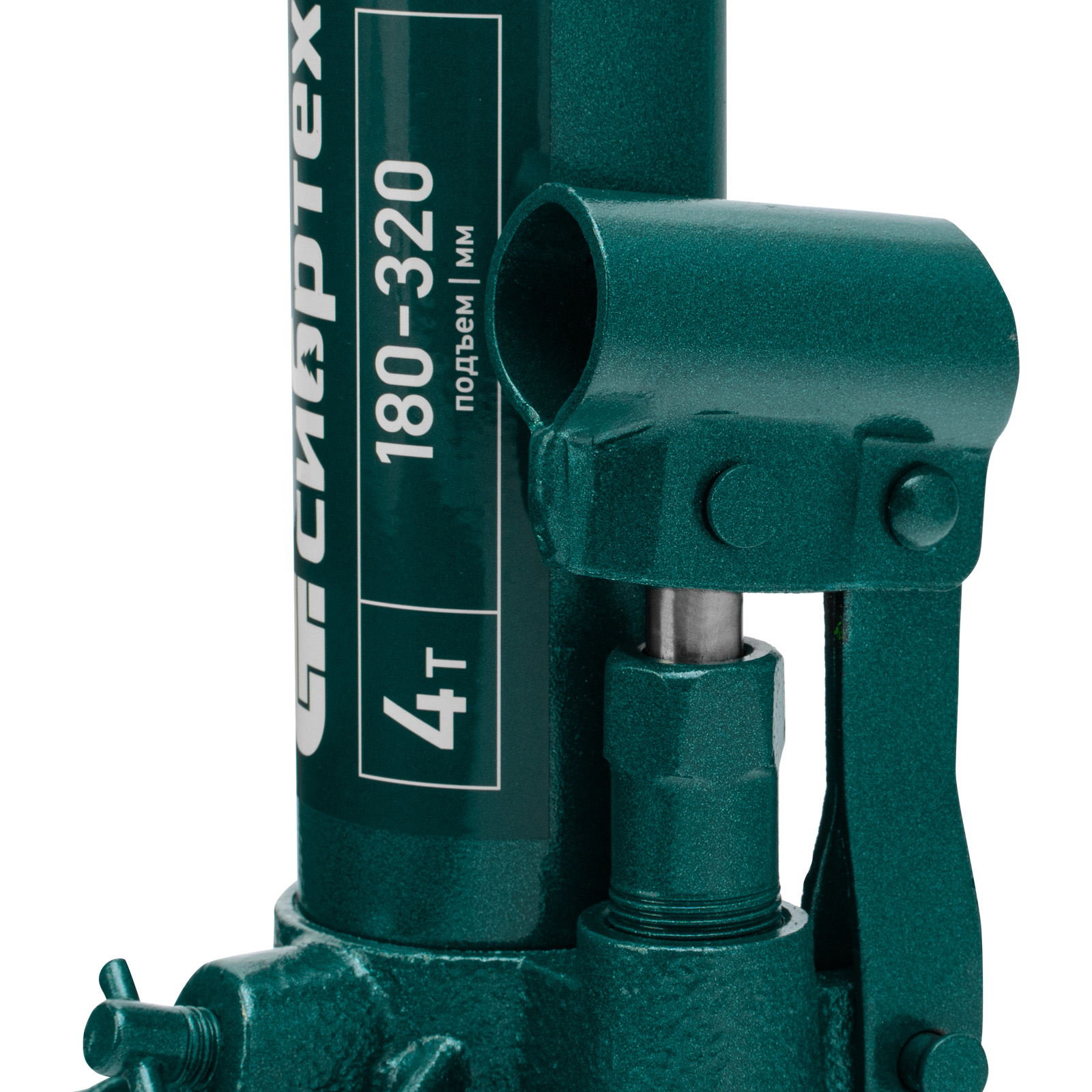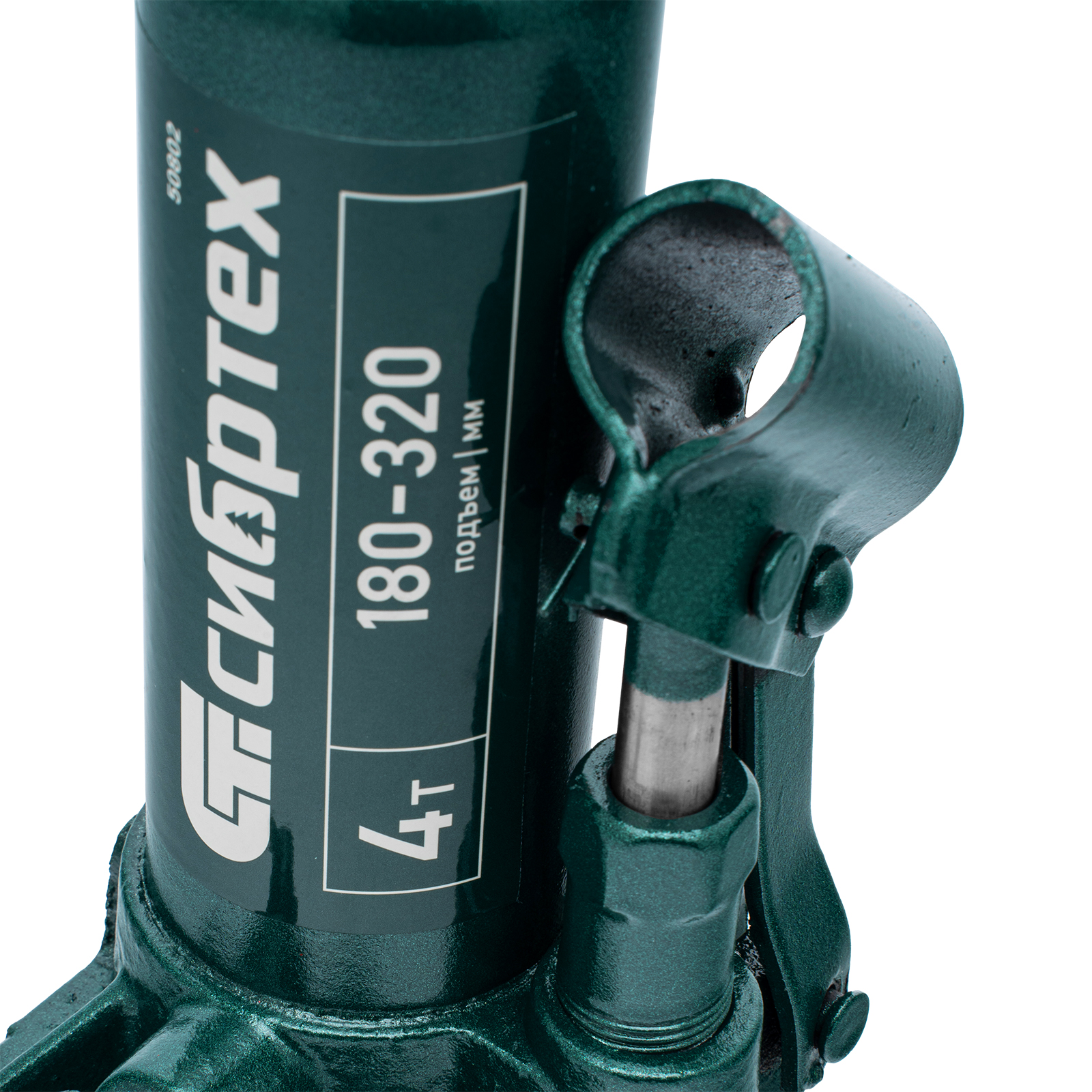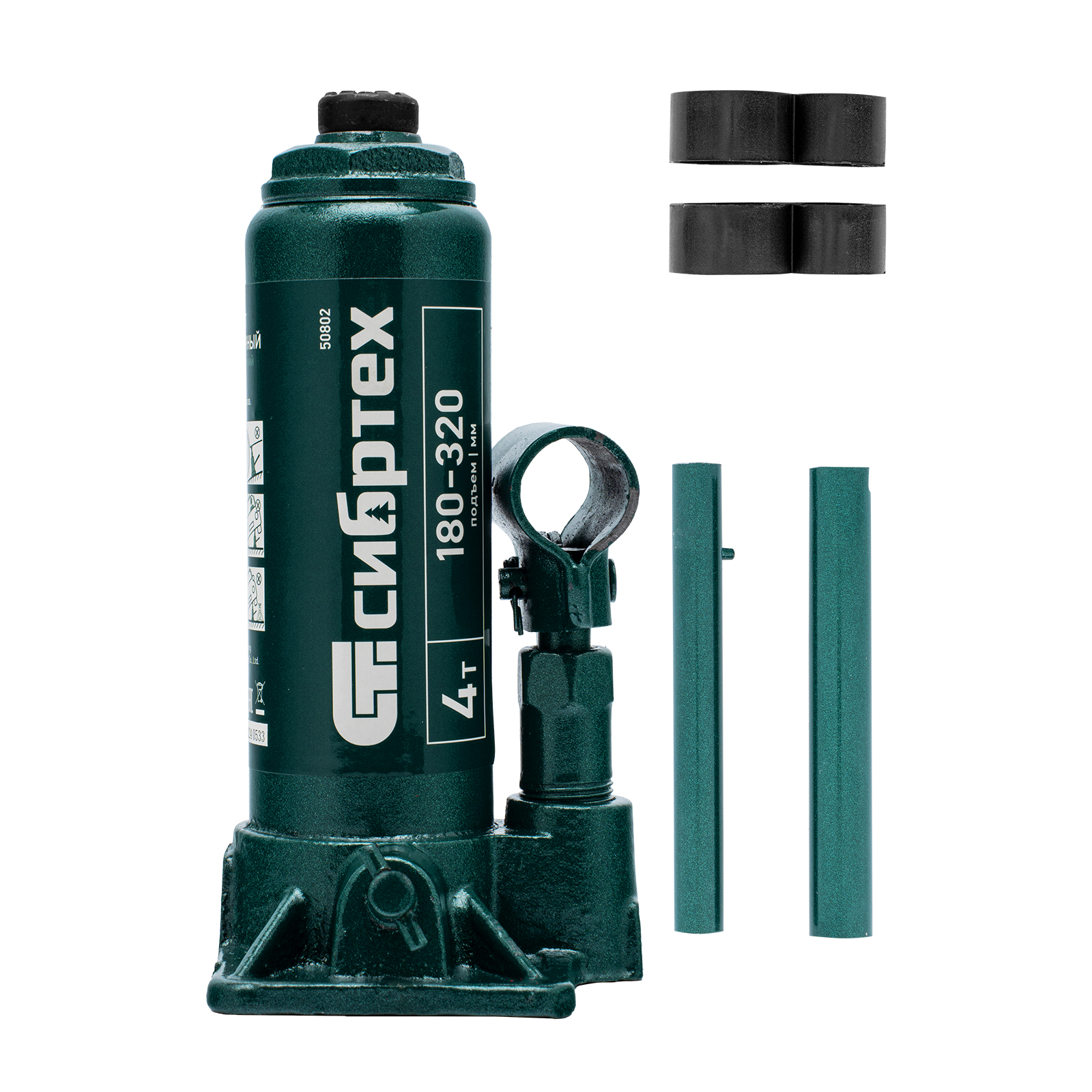 Домкрат гидравлический бутылочный Сибртех 50802 предназначен для подъема грузов массой до 4 т на высоту от 180 до 320 мм. Не требует больших усилий от пользователя и значительно облегчает рабочий процесс. Домкрат будет полезен при проведении техобслуживания машины в автосервисе или гараже.