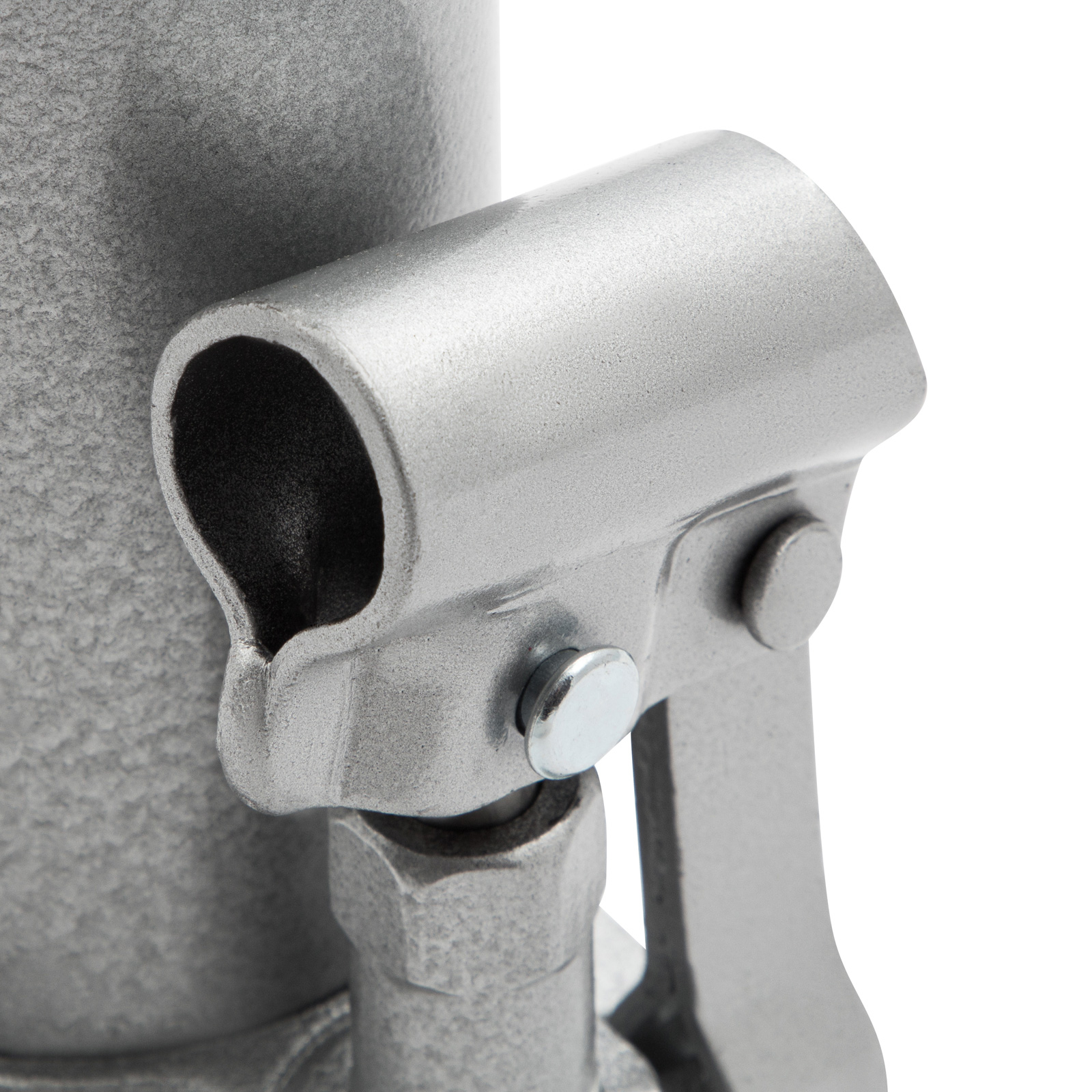 - Эффективность — чугунная станина обеспечивает устойчивое положение домкрата, составная рукоятка позволяет проводить работы в ограниченном пространстве и компактно размещать устройство в зоне хранения.