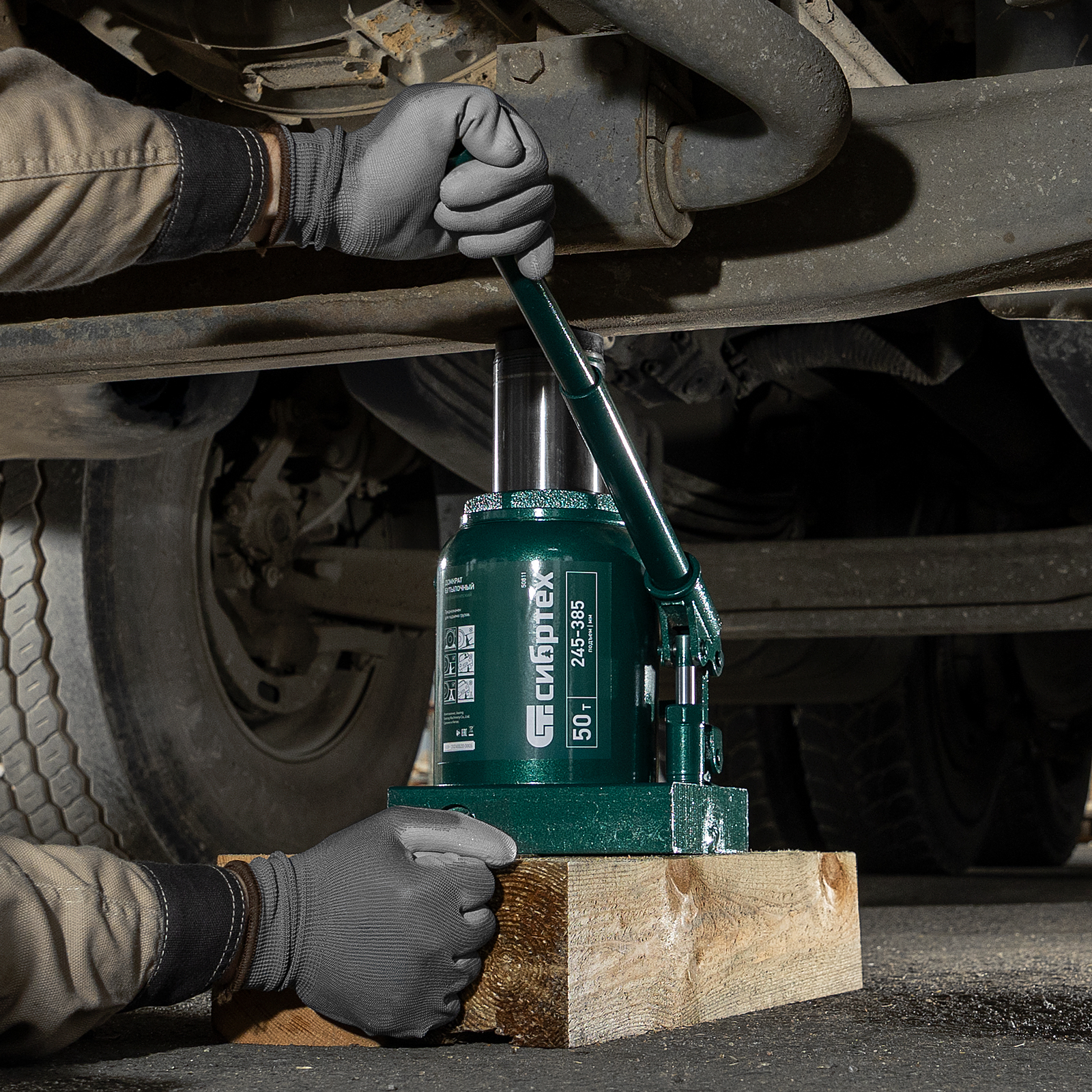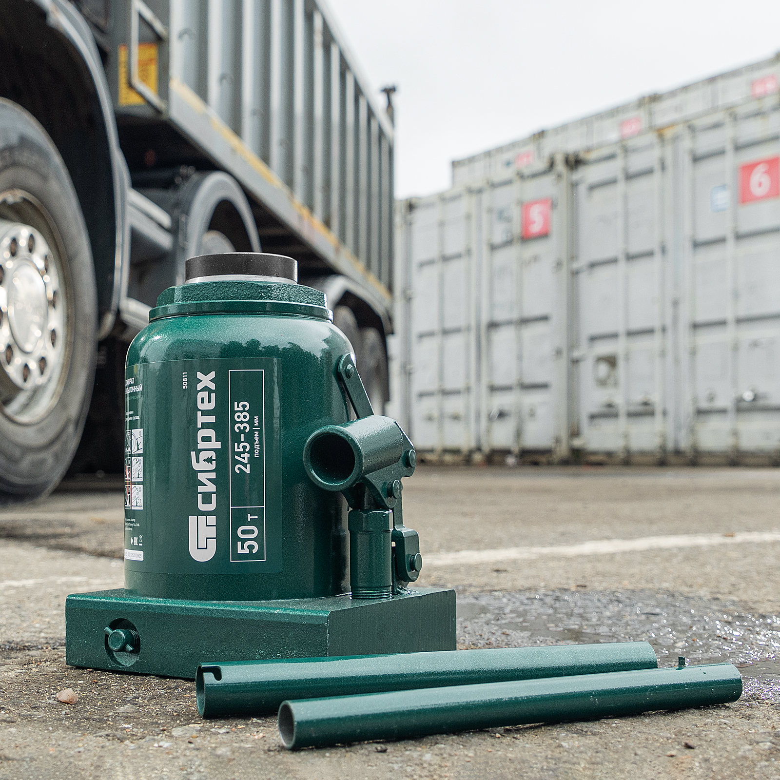 Домкрат гидравлический бутылочный Сибртех 50811 предназначен для подъема грузов массой до 50 т на высоту от 245 до 385 мм. Будет полезен при проведении техобслуживания машины в автосервисе или гараже.