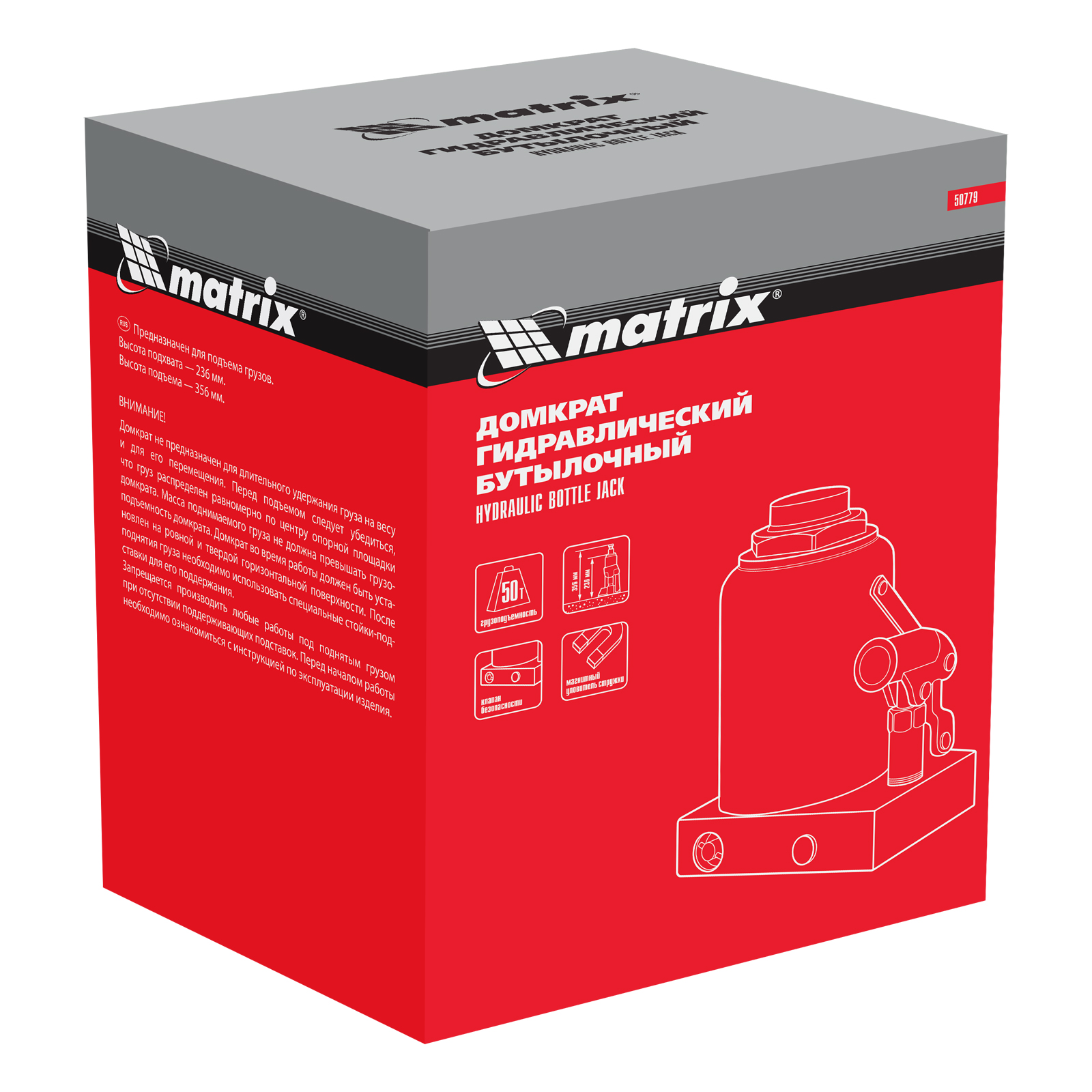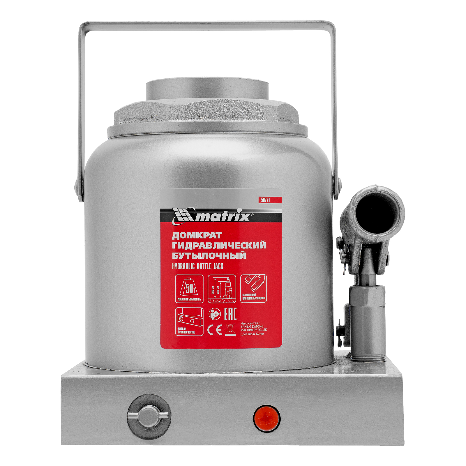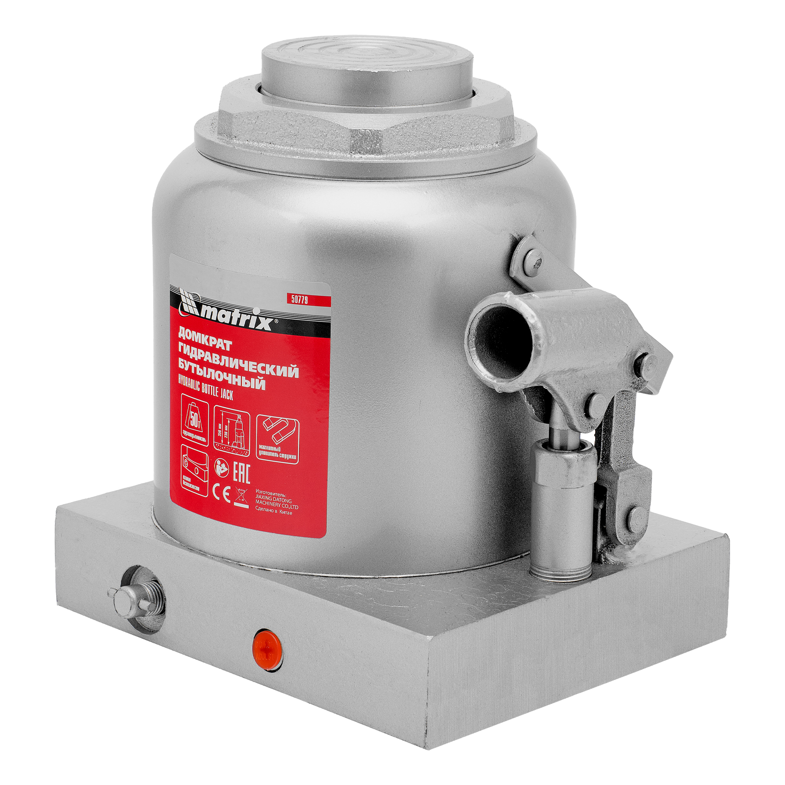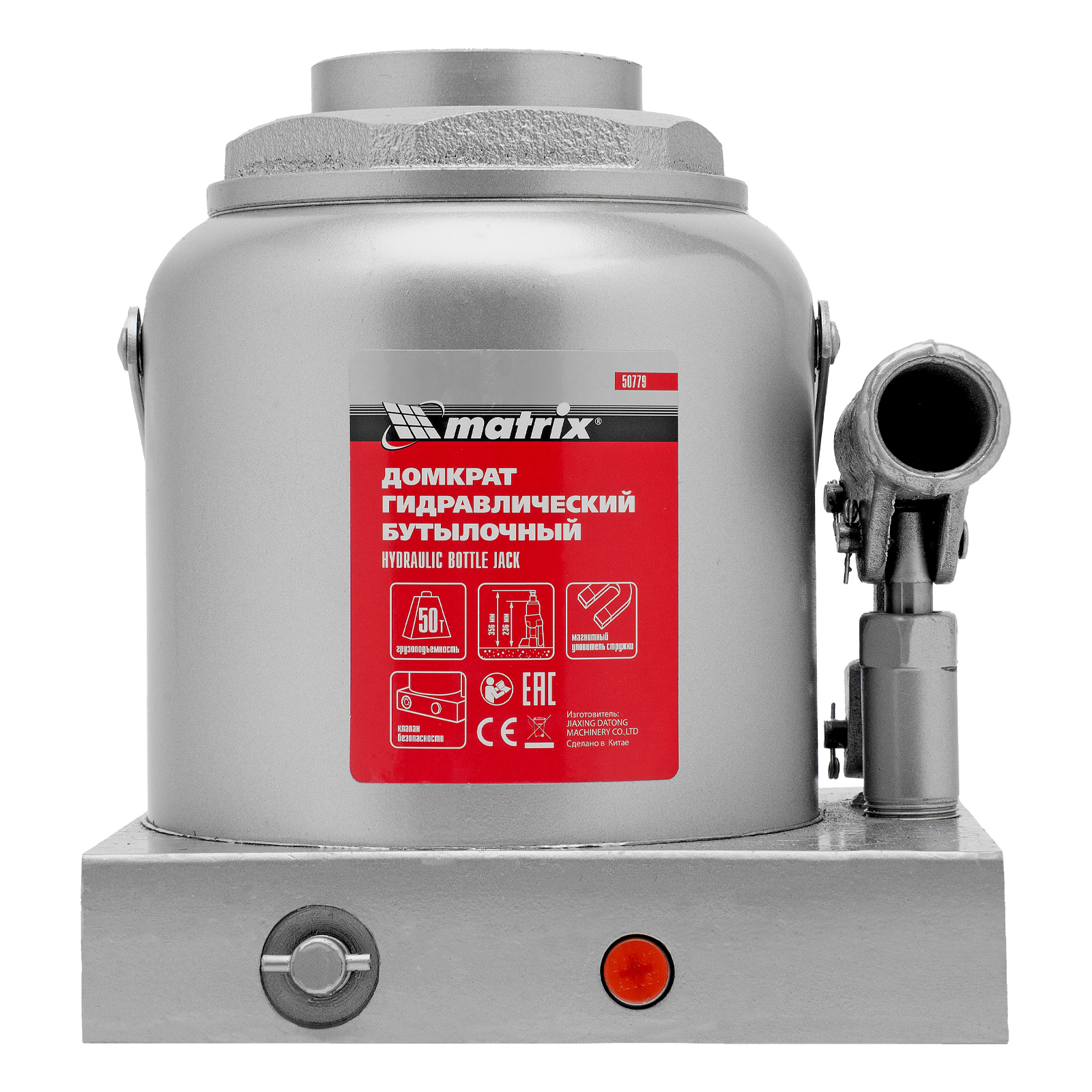 Гидравлический бутылочный домкрат Matrix 50779 поднимает грузы весом до 50 т на высоту 236-356 мм и может использоваться в гараже, на станции ТО или строительной площадке. Встроенный магнитный уловитель собирает металлическую стружку, образующуюся в процессе работы, что защищает домкрат от преждевременного износа.