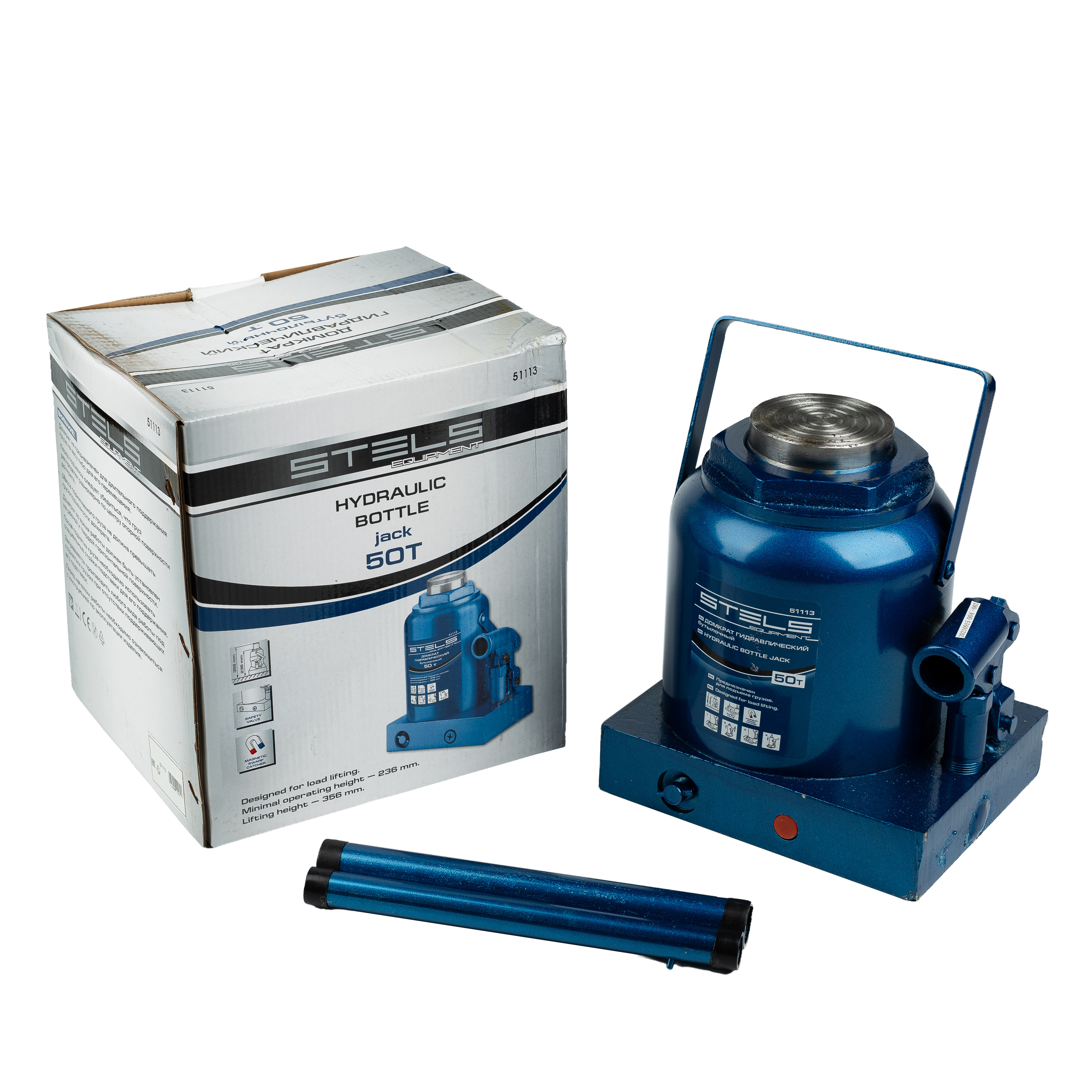 Гидравлический бутылочный домкрат Stels 51113 способен поднимать грузы массой до 50 т на высоту с 236 до 356 мм. Устанавливается на ровной твердой горизонтальной поверхности и позволяет разместить под грузом жесткую опору перед выполнением дальнейших работ. Используется на предприятиях автосервиса, применяется во время ремонта и строительства.