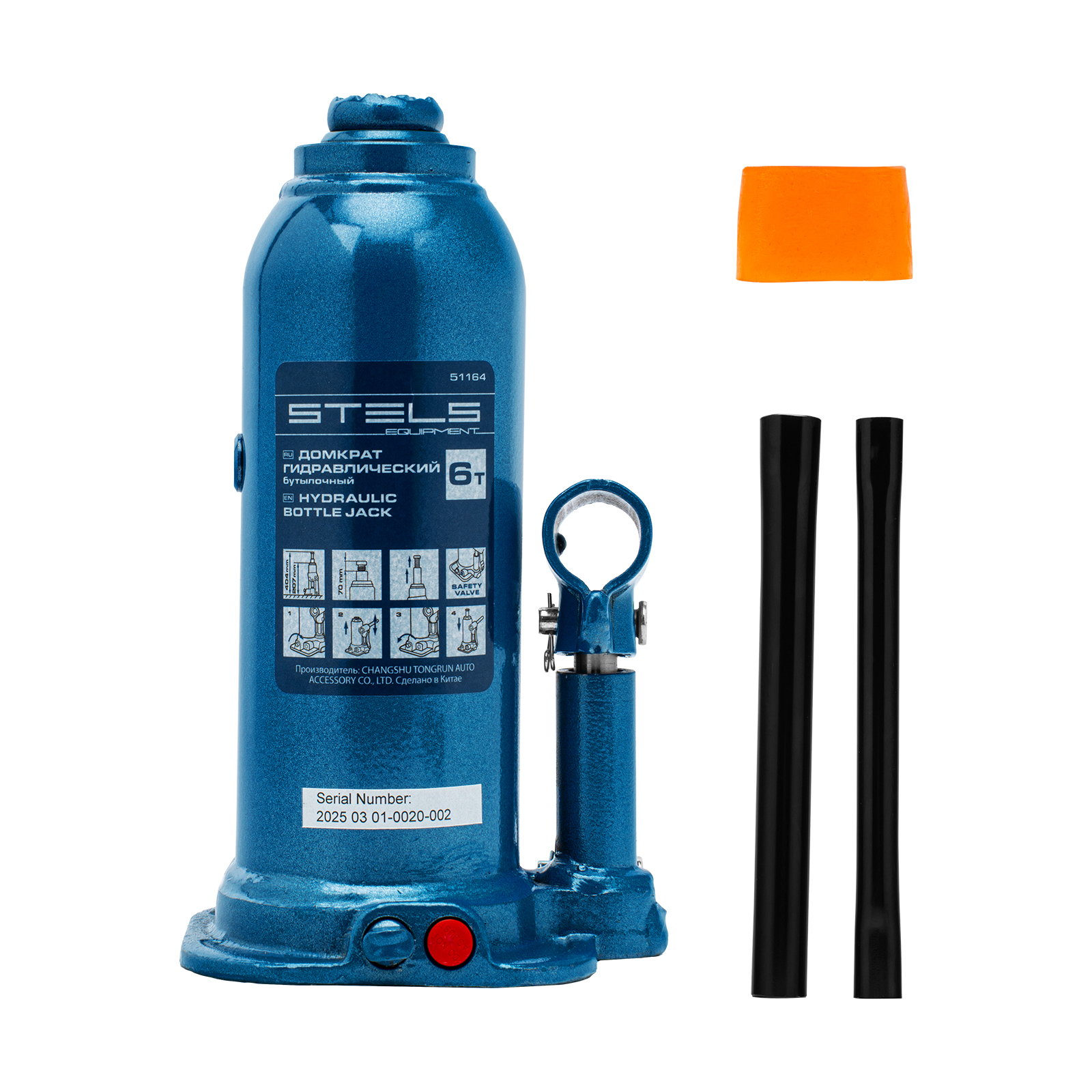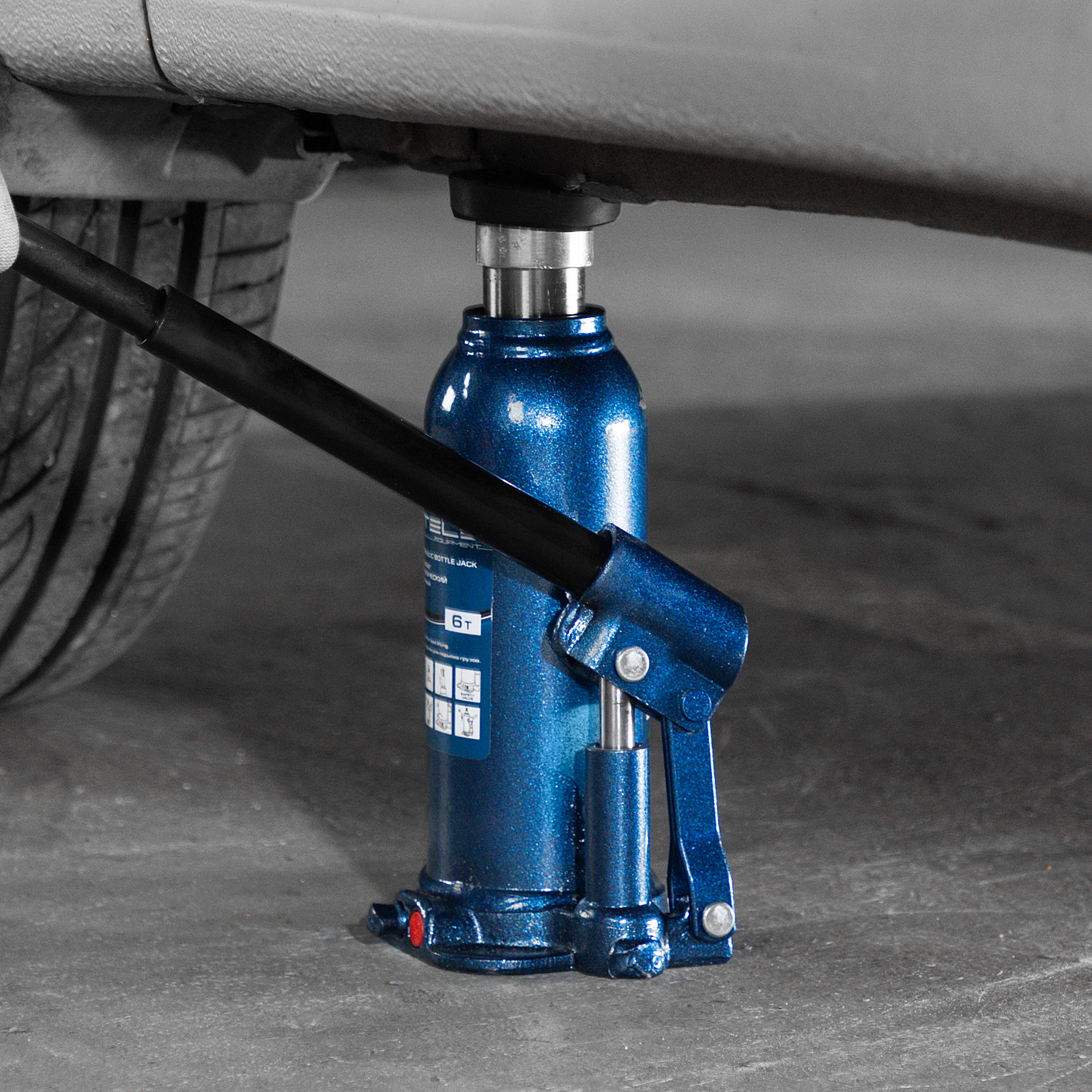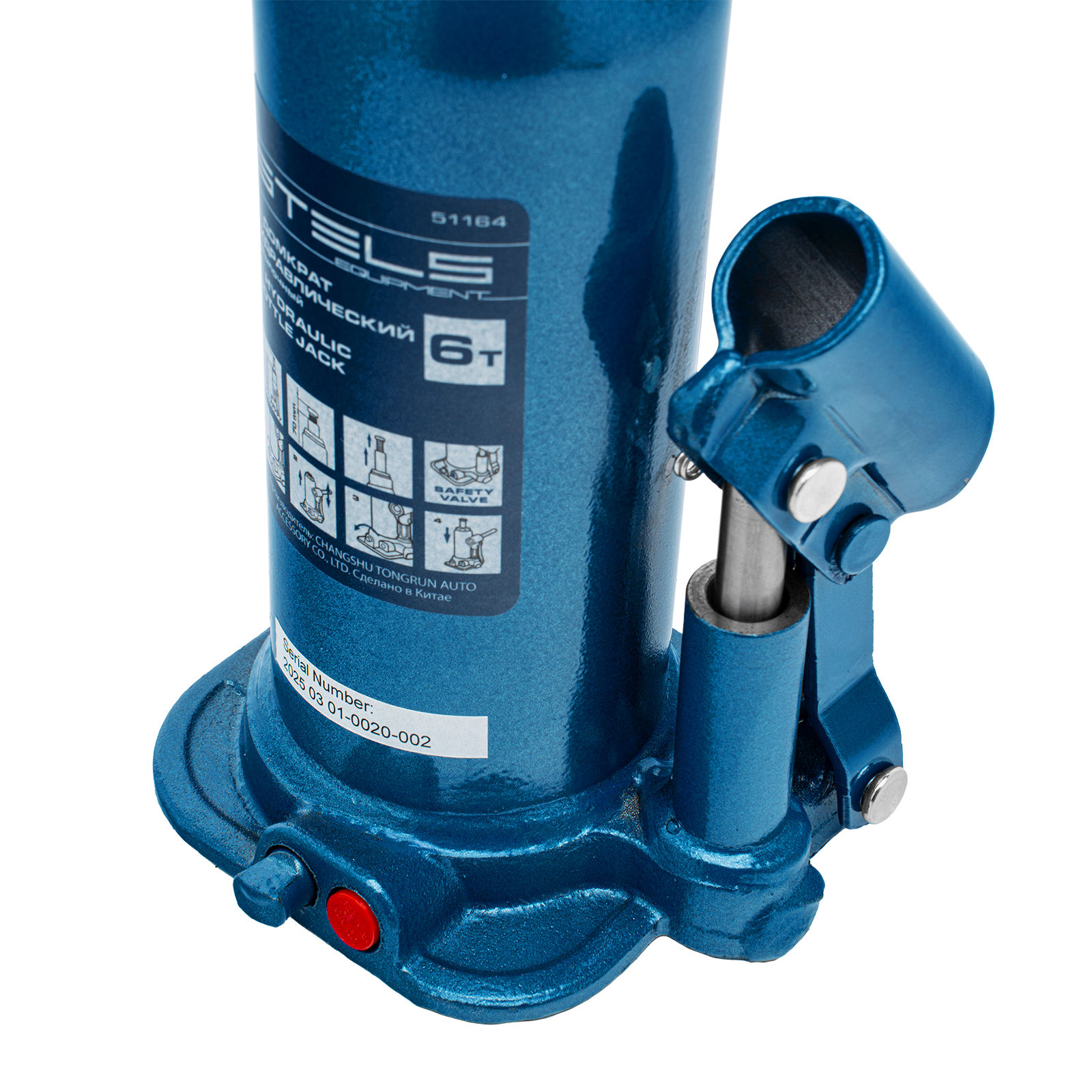 - Безопасная эксплуатация — благодаря предохранительному клапану домкрат не поднимает грузы тяжелее 6000 кг.