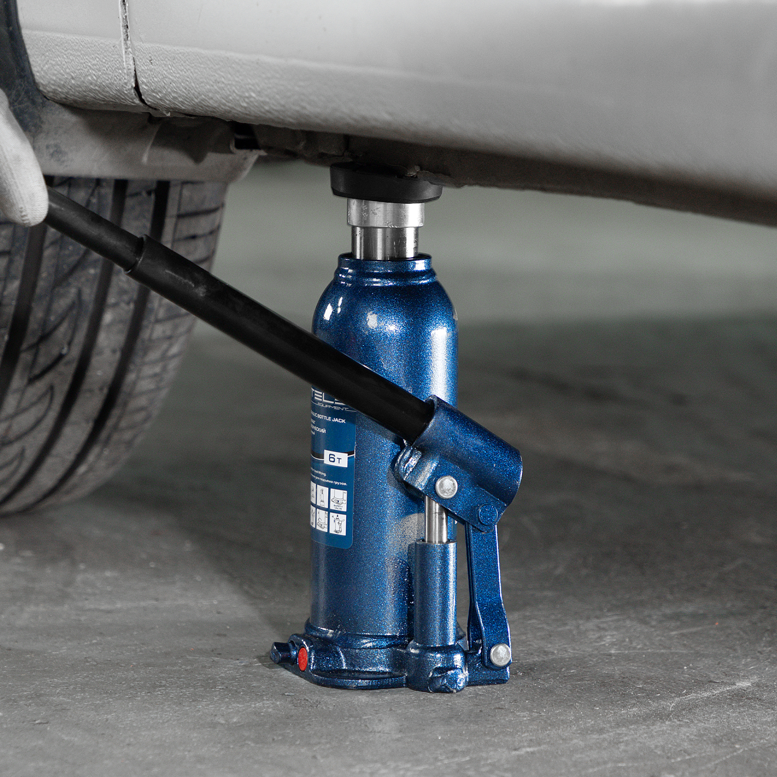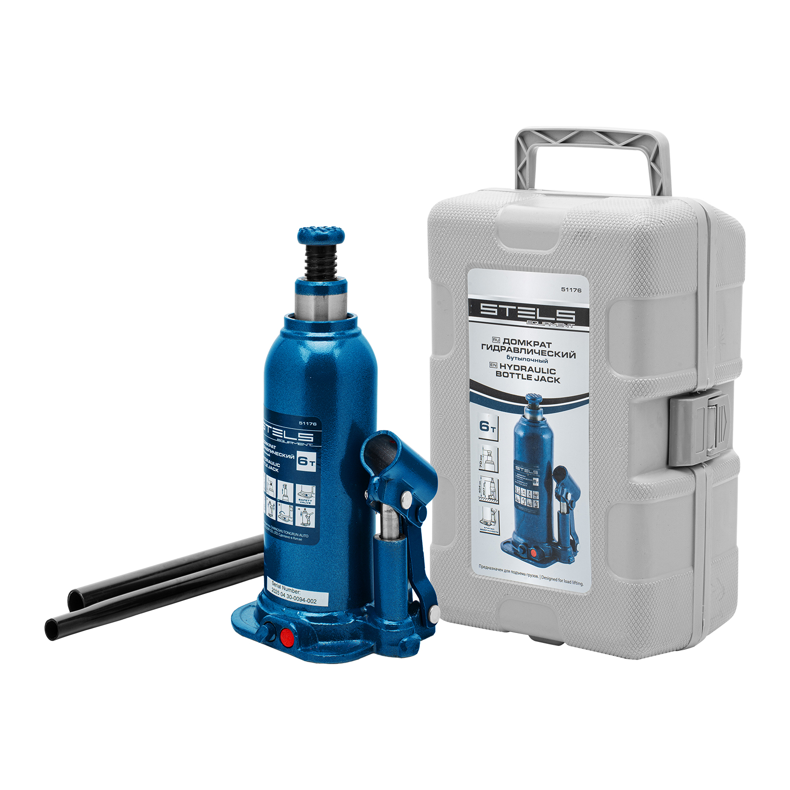 Гидравлический бутылочный домкрат Stels 51176 в пластиковом кейсе предназначен для поднятия грузов весом до 6 т на высоту 207-404 мм. Он не занимает много места и легко помещается в багажник, поэтому его можно брать с собой в дорогу или хранить в гараже. Используется для самостоятельного ремонта авто, также подходит для профессионального применения на станциях технического обслуживания.