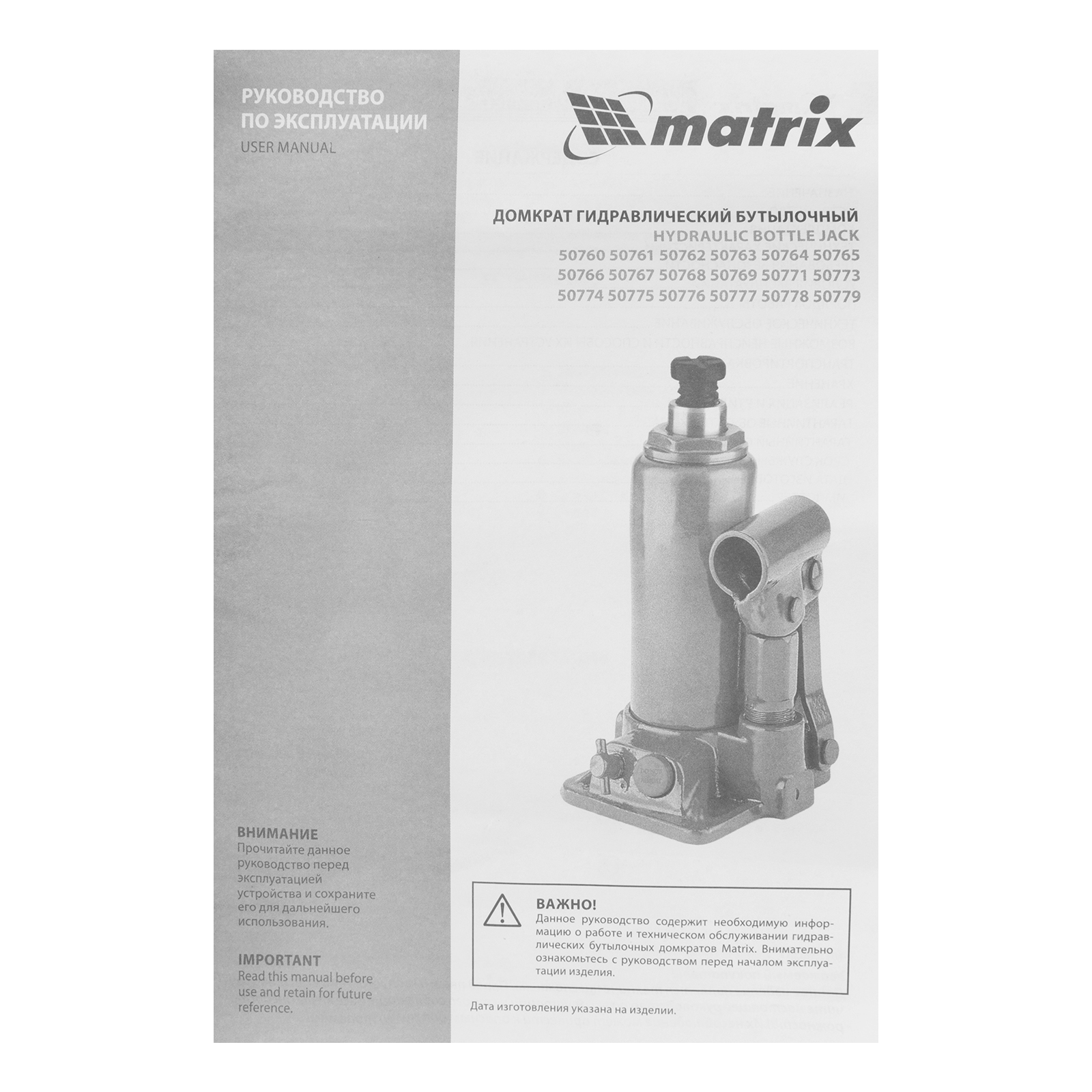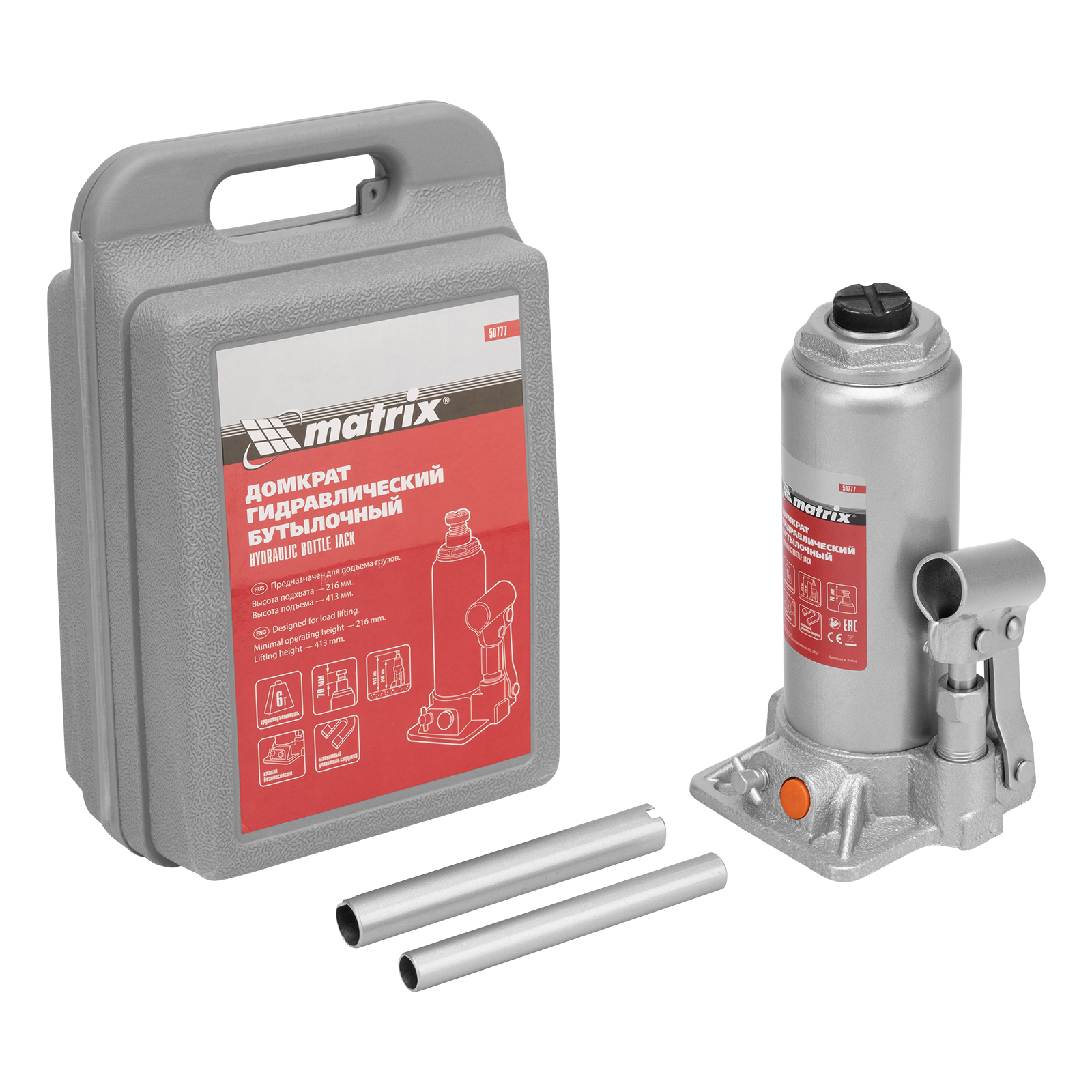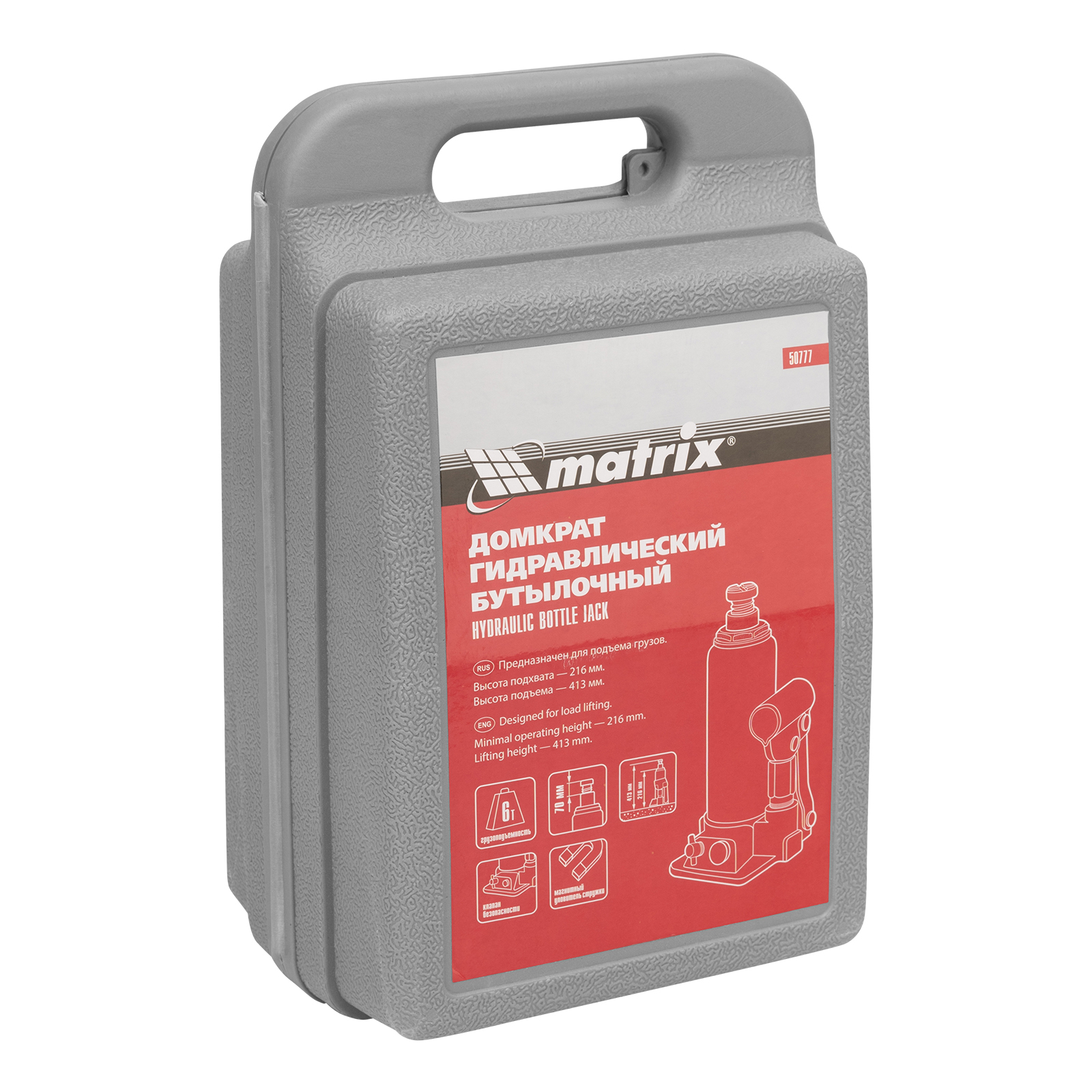 Гидравлический бутылочный домкрат Matrix 50777 позволяет быстро поднимать грузы массой до 6 т на высоту 216-413 мм. Встроенный магнитный уловитель собирает металлическую стружку, предотвращая преждевременный износ резиновых уплотнителей. Домкрат пригодится для полупрофессионального применения.