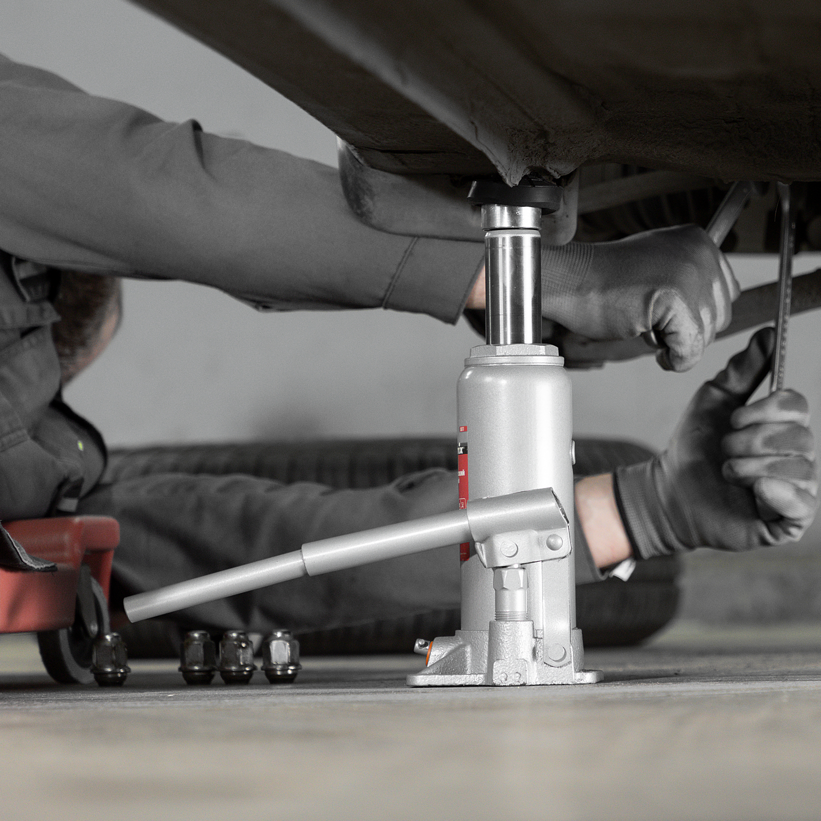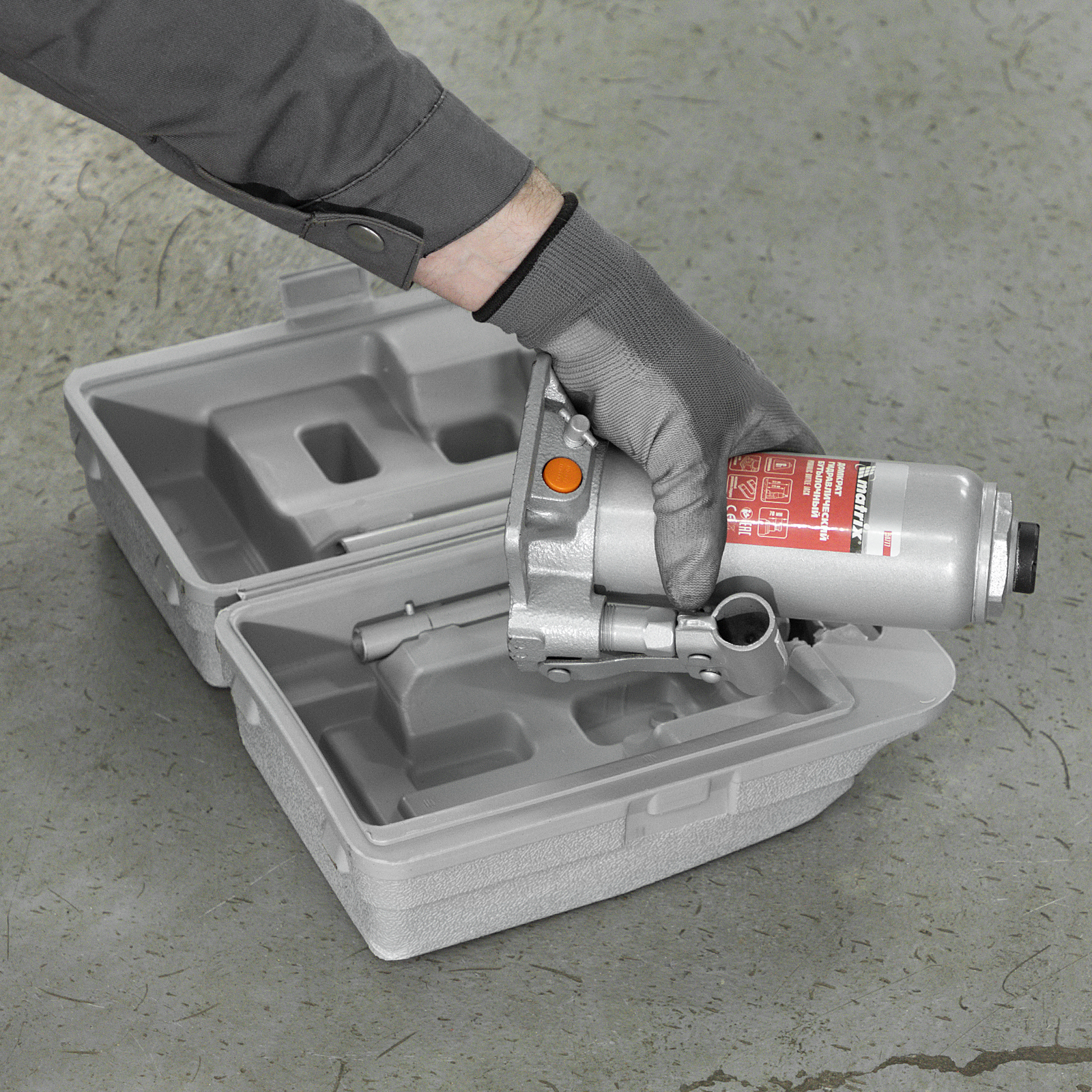 - Удобная транспортировка — домкрат комплектуется прочным пластиковым кейсом.