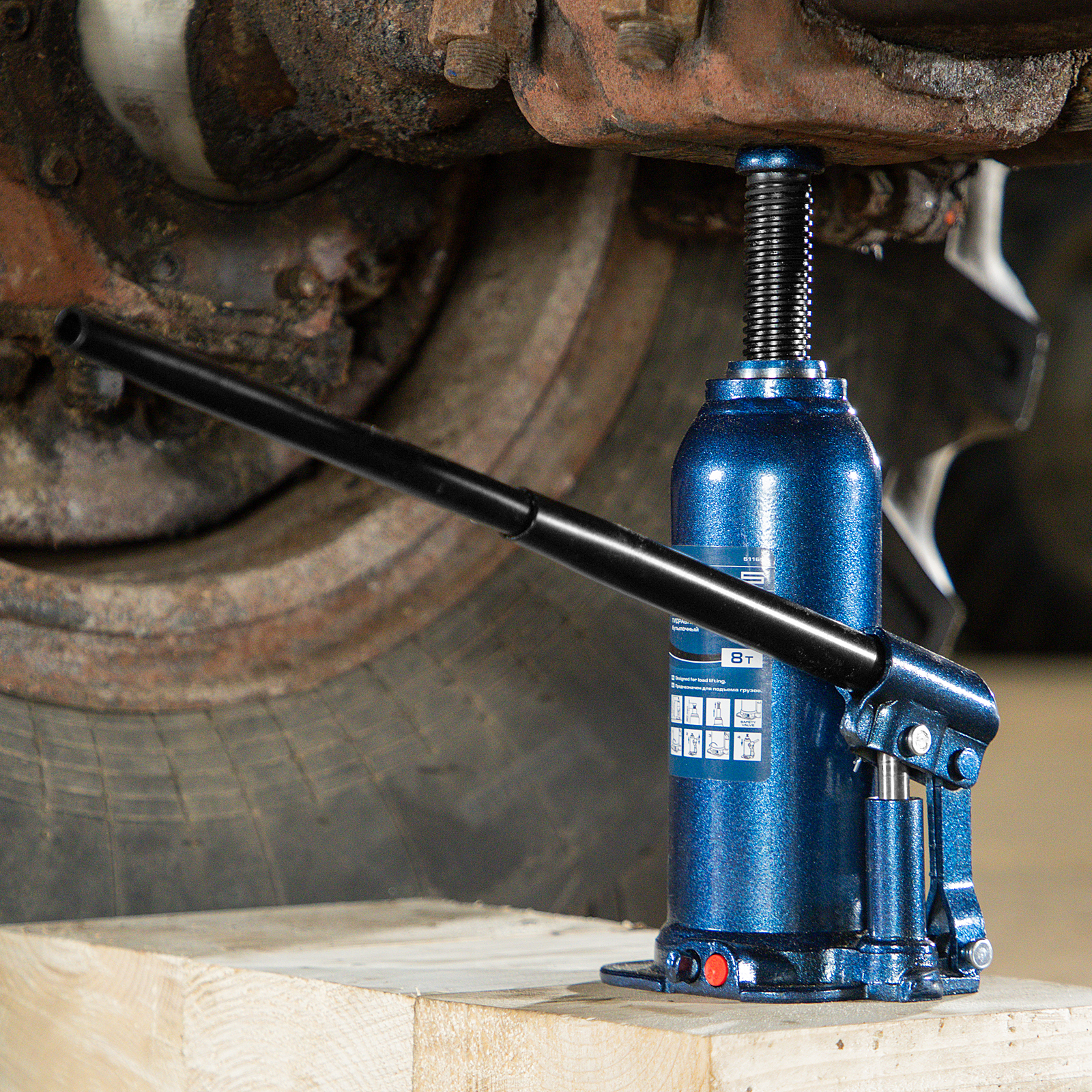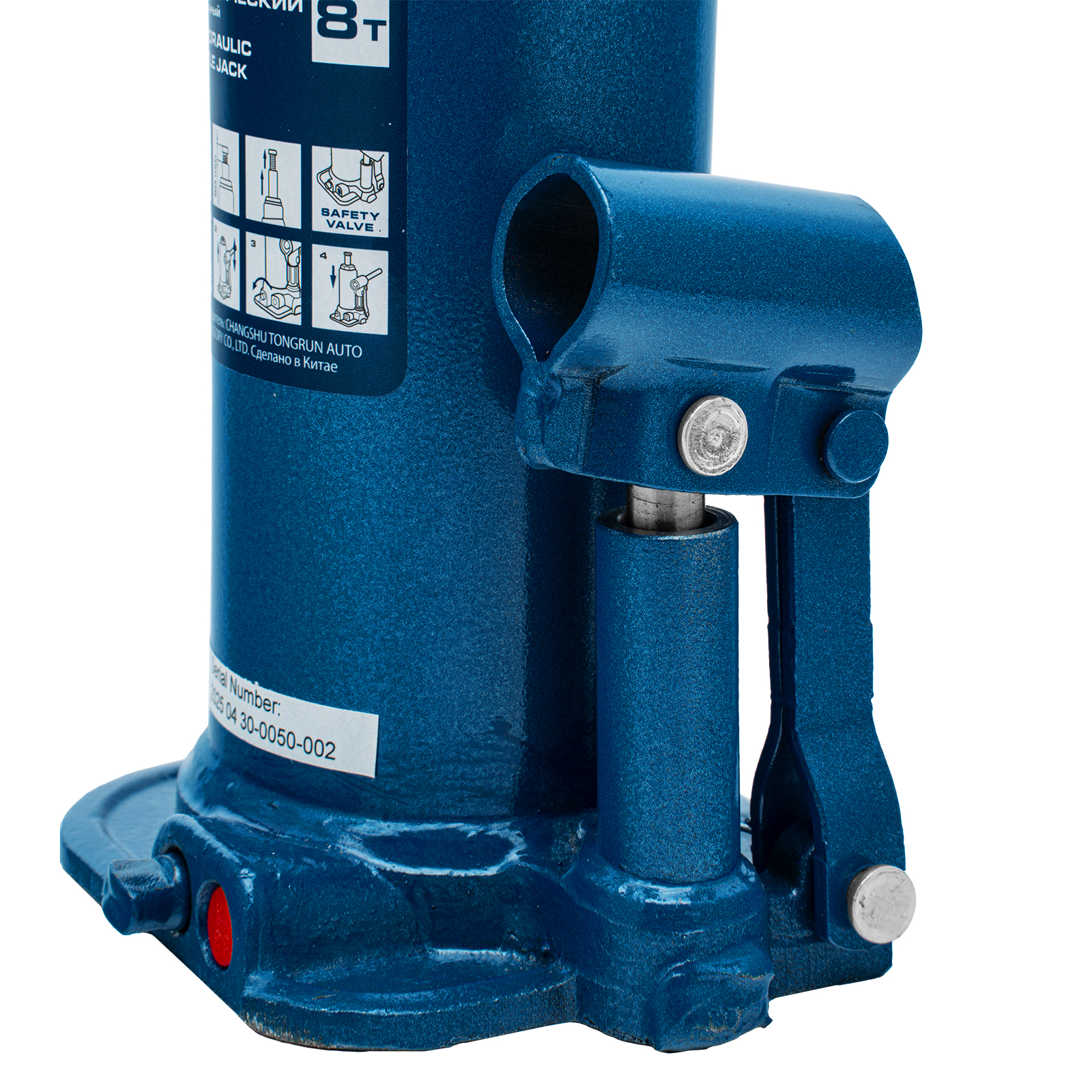 - Безопасная эксплуатация — благодаря предохранительному клапану домкрат не поднимает грузы тяжелее 8000 кг.