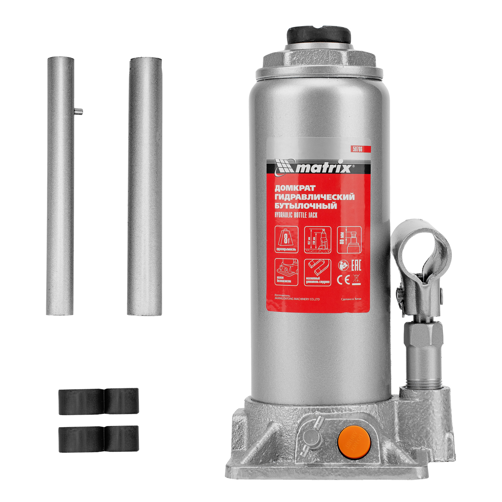 Гидравлический бутылочный домкрат Matrix 50766 предназначен для быстрого поднятия грузов массой до 8 т на высоту 230-457 мм. Будет полезен автолюбителям и мастерам СТО в качестве полупрофессионального инструмента. Встроенный магнитный уловитель металлической стружки защищает резиновые уплотнители от повреждений.