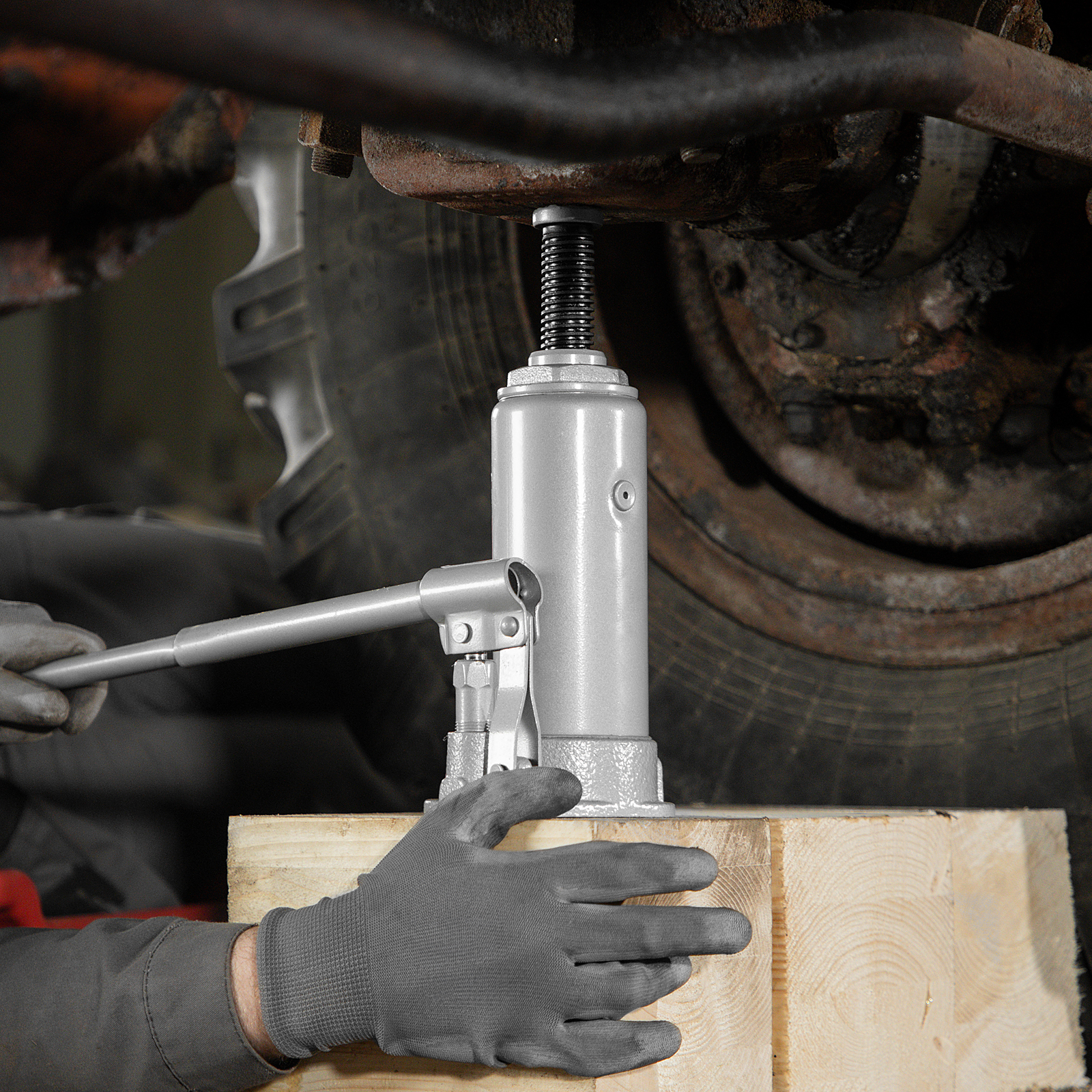 - Высококачественное всесезонное масло — домкрат безотказно работает в широком диапазоне температур (от -20 до 45 ℃).