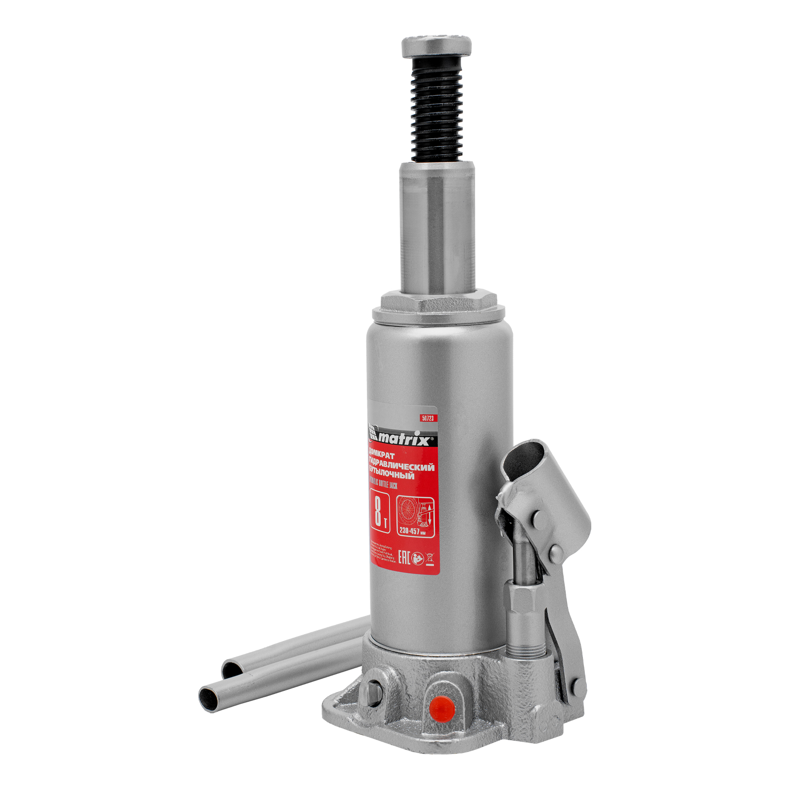 Домкрат гидравлический бутылочный Matrix 50723 используется для поднятия грузов массой до 8 т на высоту 230-457 мм. Подходит для автомобилей с высоким клиренсом. Домкрат будет полезен автолюбителям в гараже и дороге, а также сотрудникам СТО.