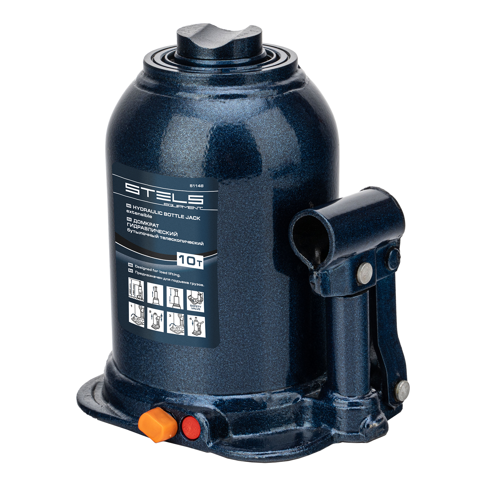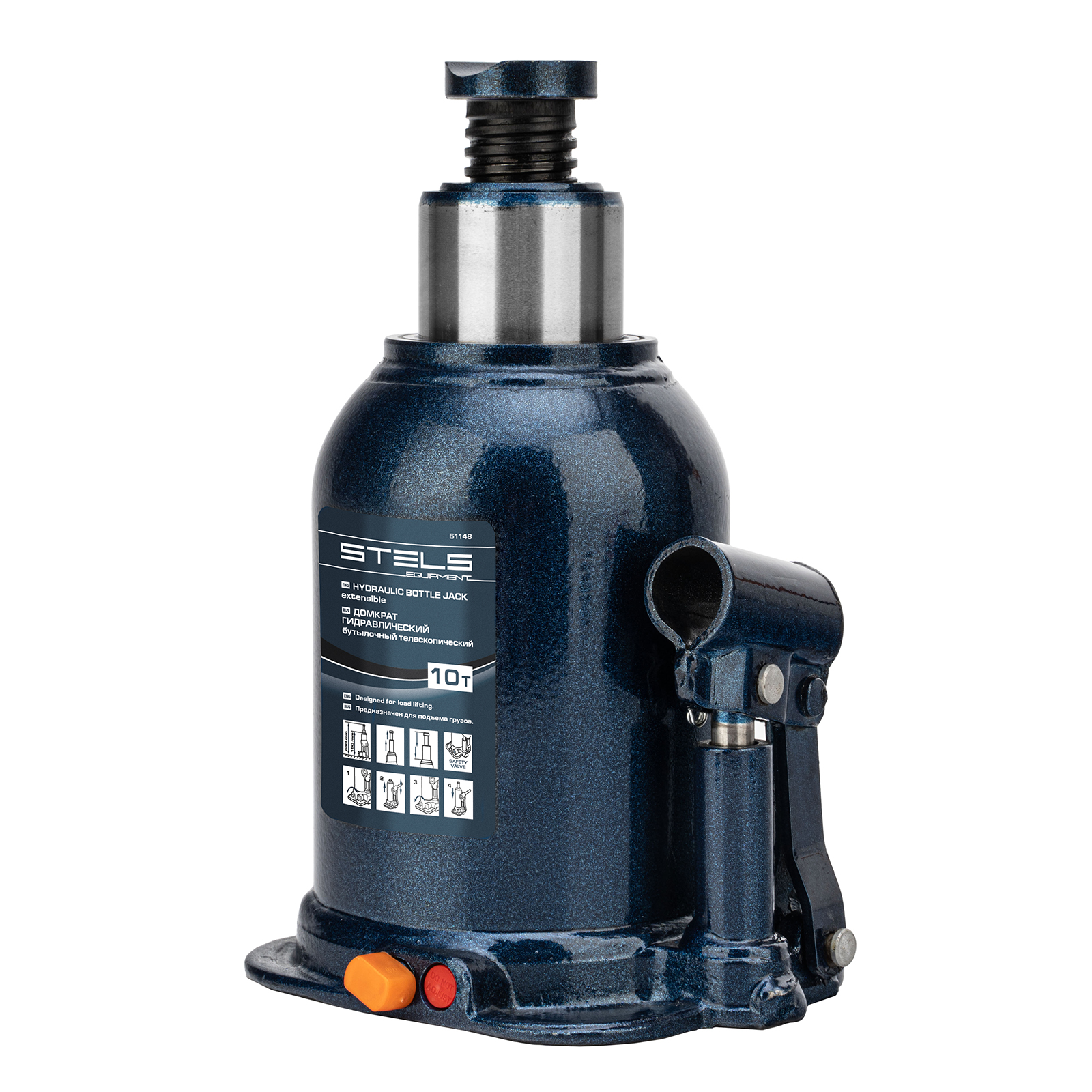 Гидравлический бутылочный телескопический домкрат Stels 51148 используется для поднятия грузов весом до 10 т с на высоту 180-450 мм. Не требует больших усилий и оптимален для автомобилей с большим клиренсом. Домкрат можно использовать в гараже для самостоятельного ремонта машины или в автосервисе для решения профессиональных задач.