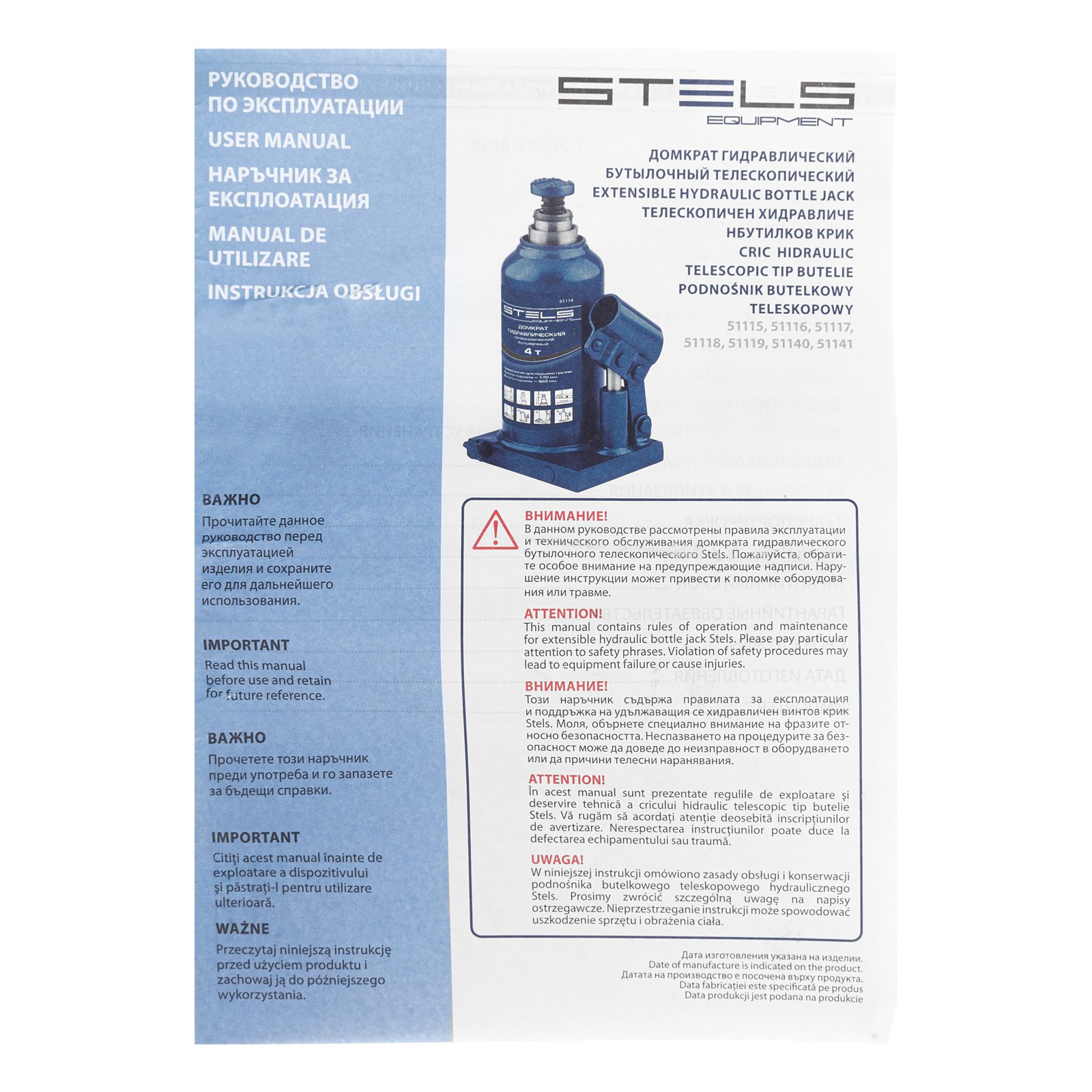Гидравлический бутылочный телескопический домкрат Stels 51116 используется для поднятия грузов весом до 4 т с на высоту 170-420 мм. Не требует больших усилий и оптимален для автомобилей с большим клиренсом. Домкрат можно использовать в гараже для самостоятельного ремонта машины или в автосервисе для решения профессиональных задач.