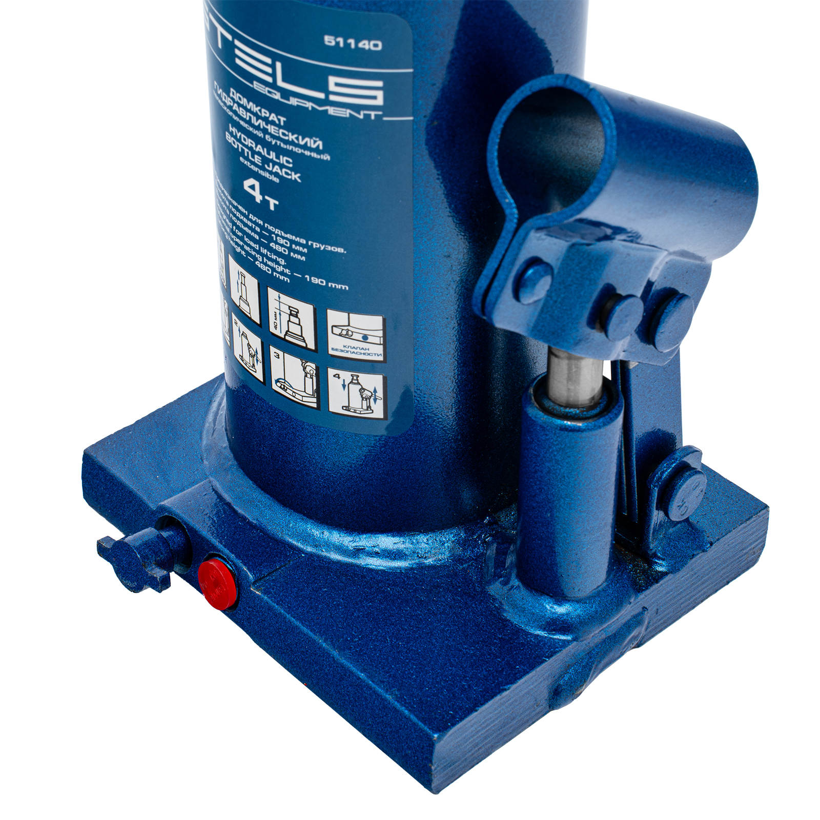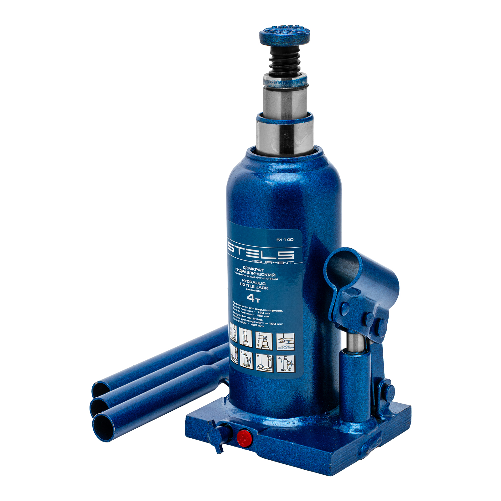 Гидравлический бутылочный телескопический домкрат Stels 51140 используется для поднятия грузов весом до 4 т с на высоту 190-480 мм. Не требует больших усилий и оптимален для автомобилей с большим клиренсом. Домкрат можно использовать в гараже для самостоятельного ремонта машины или в автосервисе для решения профессиональных задач.