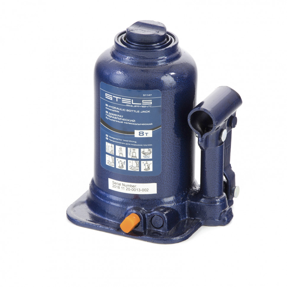 Гидравлический бутылочный телескопический домкрат Stels 51147 используется для поднятия грузов весом до 8 т с на высоту 170-430 мм. Не требует больших усилий и оптимален для автомобилей с большим клиренсом. Домкрат можно использовать в гараже для самостоятельного ремонта машины или в автосервисе для решения профессиональных задач.