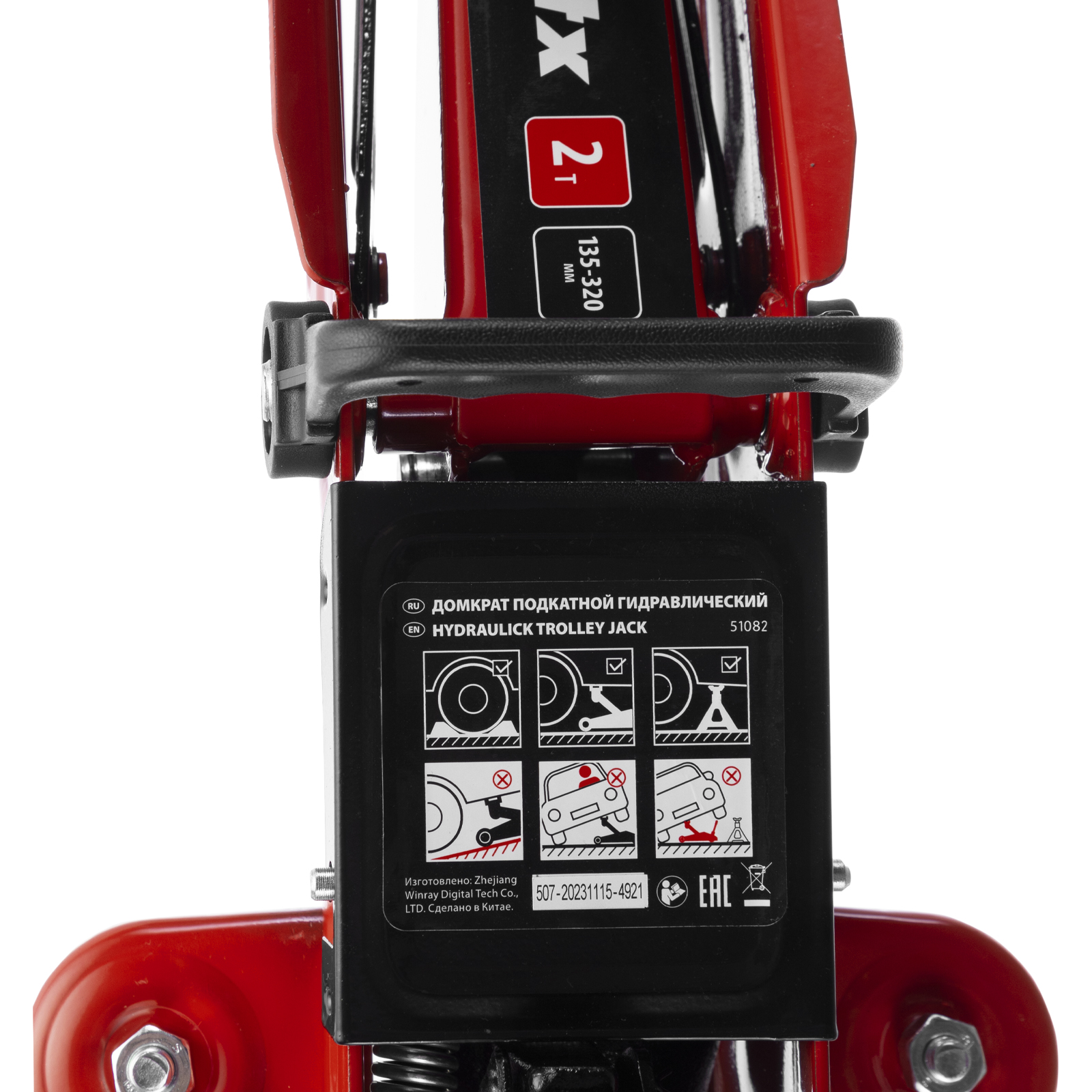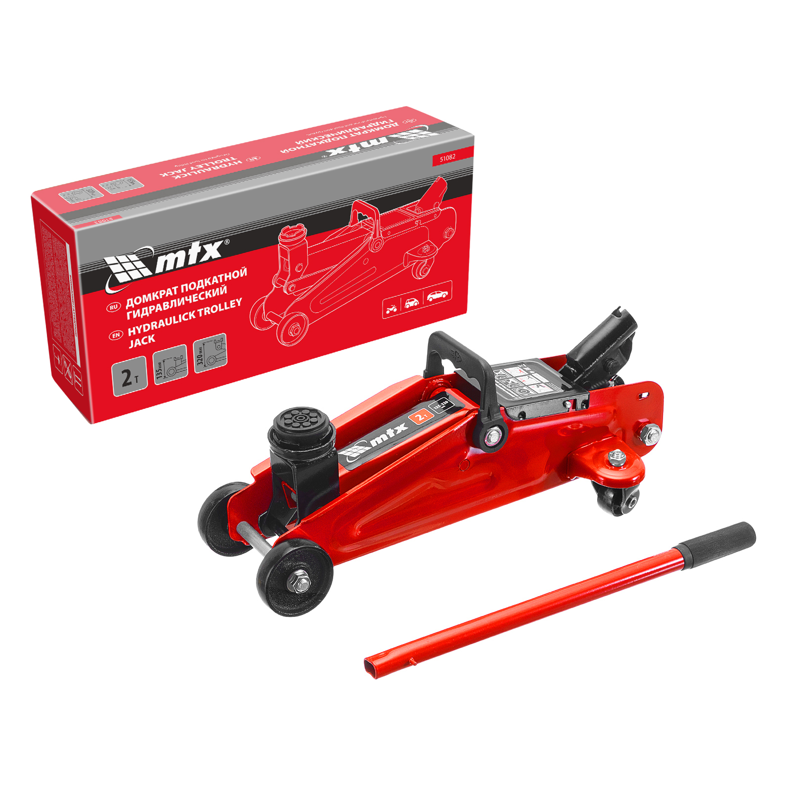 Гидравлический подкатной домкрат MTX 51082 с высотой подхвата 135 мм предназначен для подъема грузов массой до 2 т на высоту до 320 мм. Применяется для обслуживания автомобилей со стандартным клиренсом. Компактный домкрат подходит для самостоятельного использования автовладельцами.