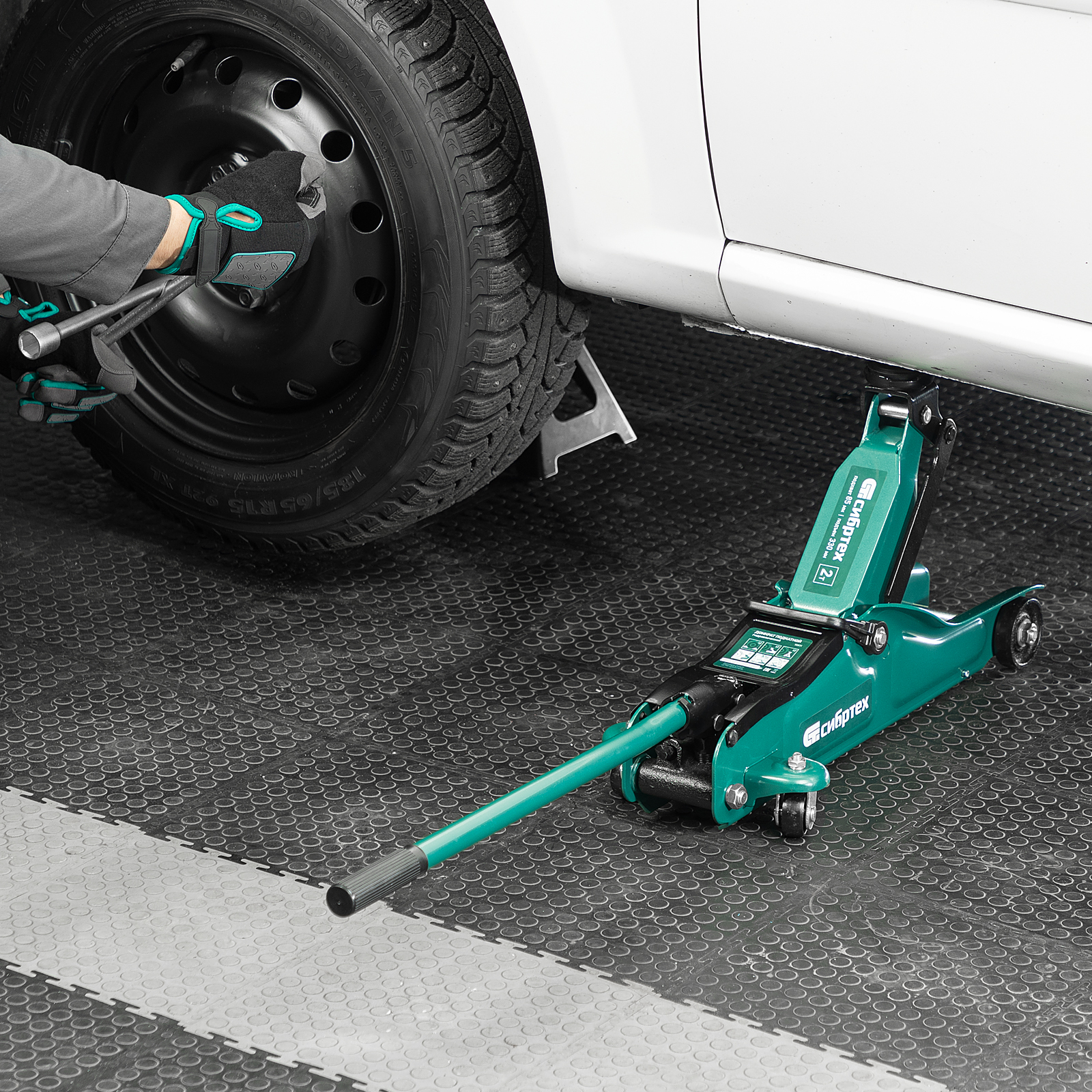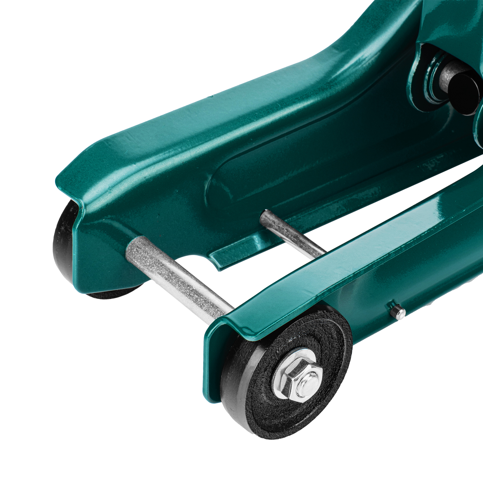 - Маневренность — благодаря поворотным колесам домкрат можно быстро подвести под груз.