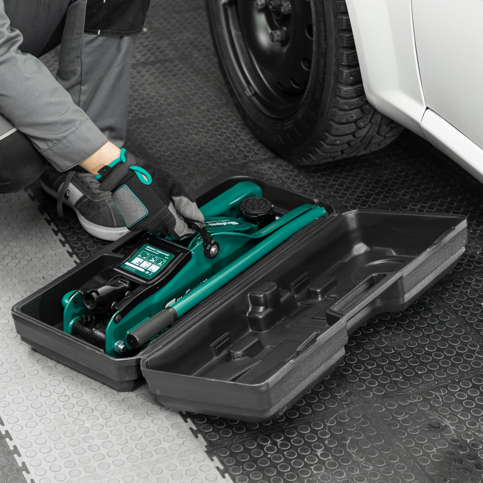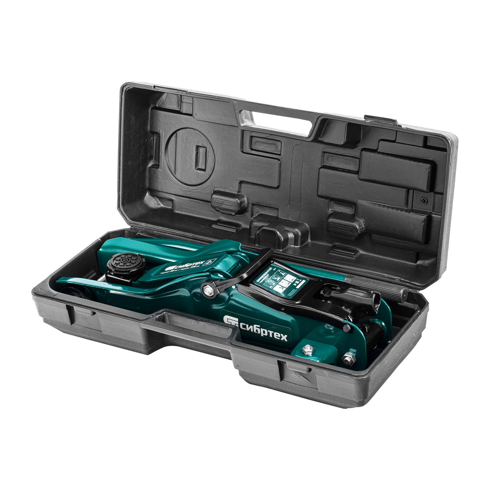 Гидравлический подкатной домкрат Сибртех 50831, поставляющийся в пластиковом кейсе, с высотой подхвата 85 мм, предназначен для подъема грузов массой до 2 т на высоту до 330 мм. Применяется для обслуживания автомобилей с низким клиренсом. Компактный домкрат подходит для самостоятельного использования автовладельцами.