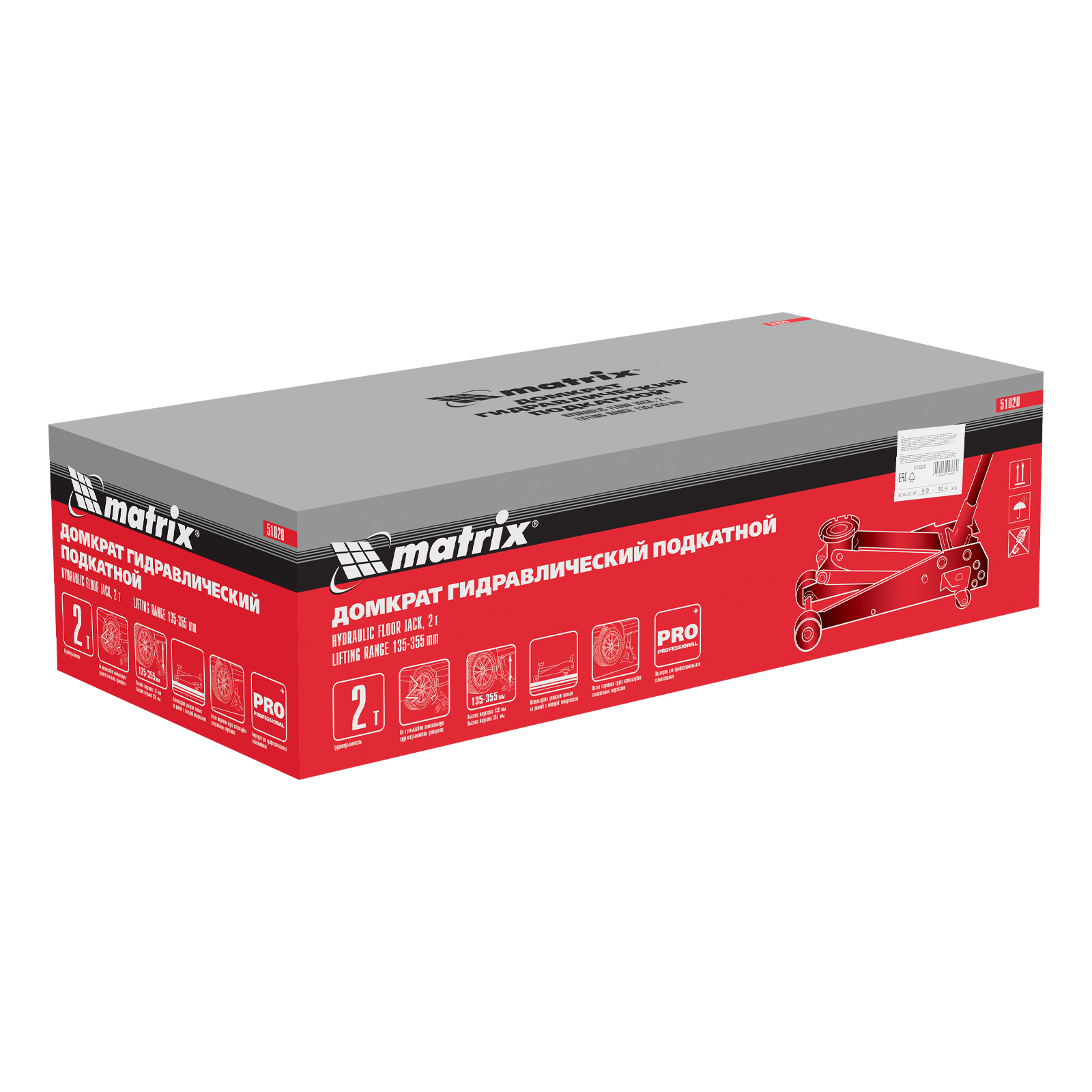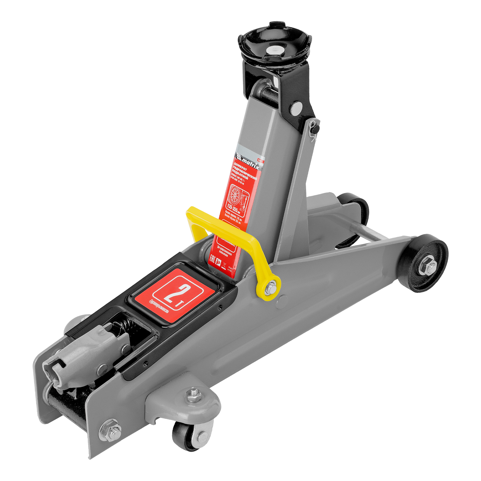 Подкатной гидравлический домкрат Matrix 51020 с высотой подхвата 135 мм, — полупрофессиональное гаражное оборудование, способное поднимать груз массой до 2 т на высоту до 355 мм. Высота подхвата 135 мм позволяет использовать домкрат для автомашин со стандартным клиренсом. Домкрат будет полезен как в автомастерской, так и в частном гараже.